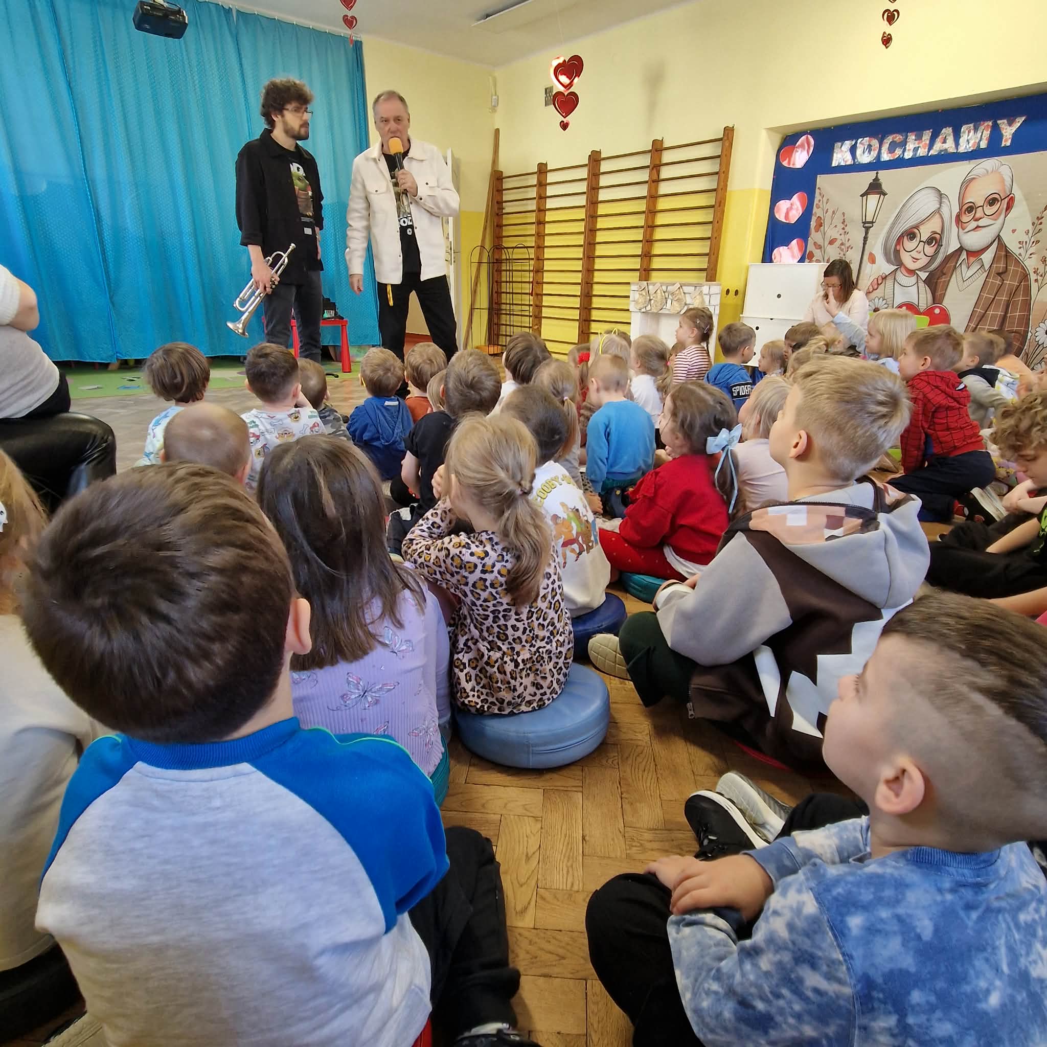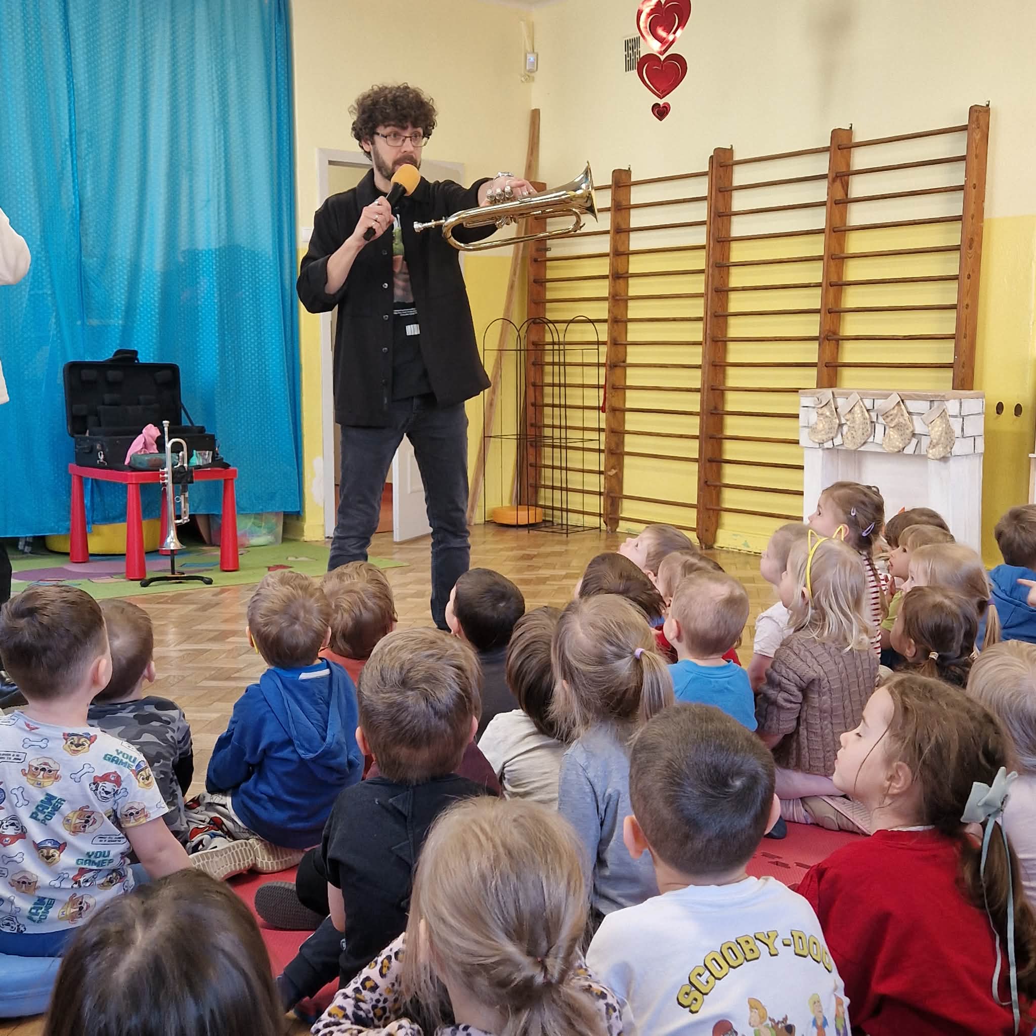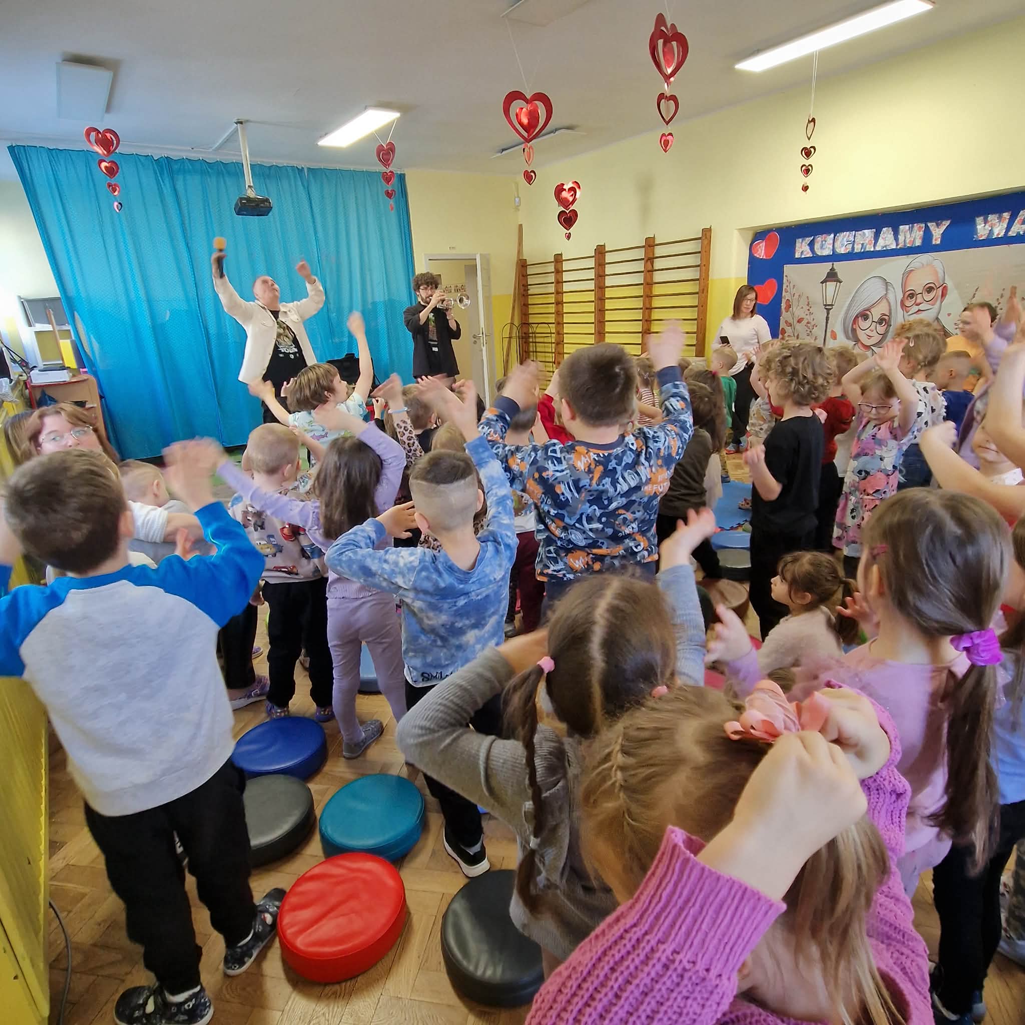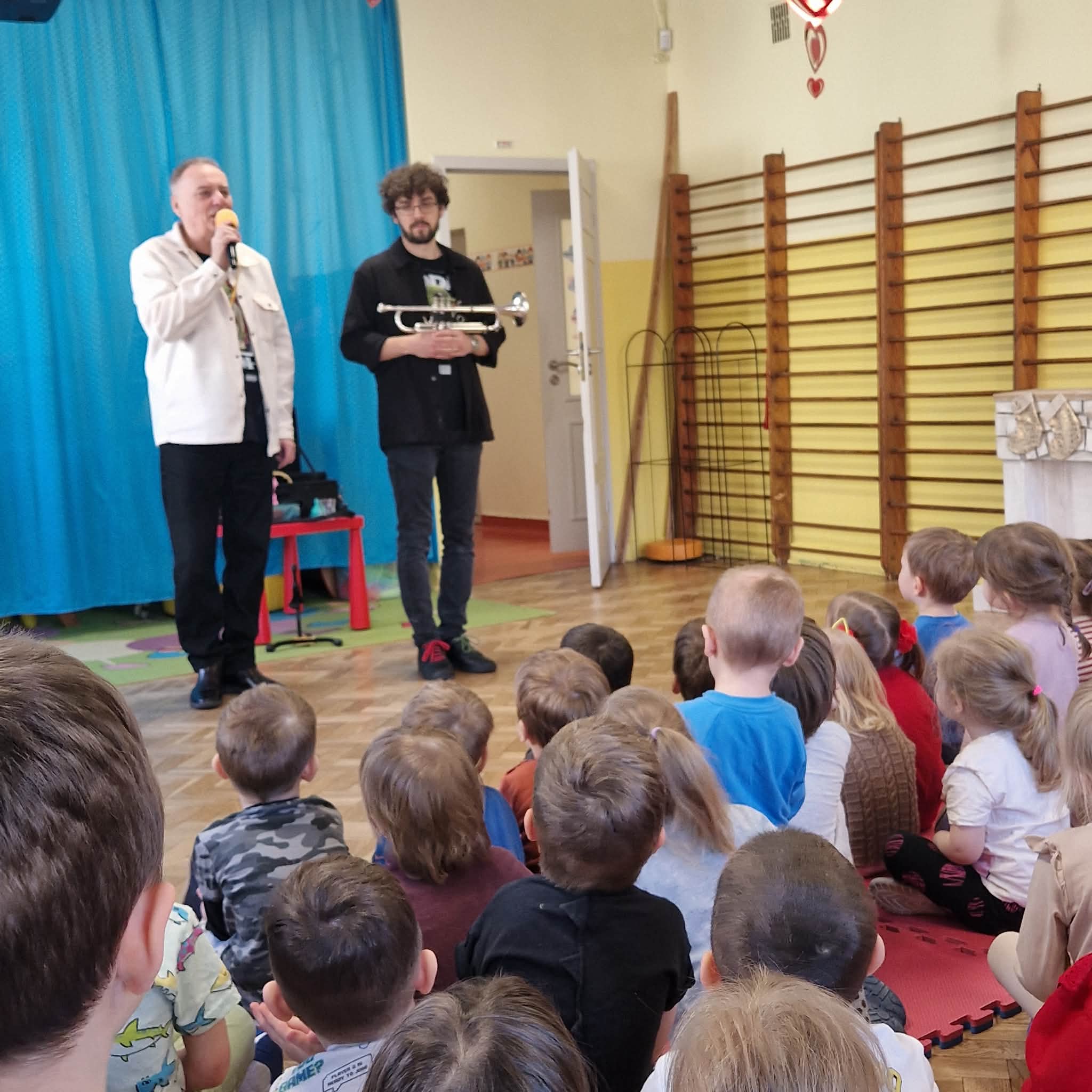 Dziś w naszym przedszkolu odbyła się styczniowa audycja muzyczna pt.” Karnawałowe szaleństwo”. Dzisiejsze spotkanie poprowadzili dobrze znani i lubiani Pan Witek w duecie z Panem Jackiem. Dzieci na dzisiejszym koncercie miały okazję poznać wygląd i brzmienie trąbki. Spotkanie dostarczyło przedszkolakom wielu radości, było pełne muzyki, zabawy i pozytywnych emocji.