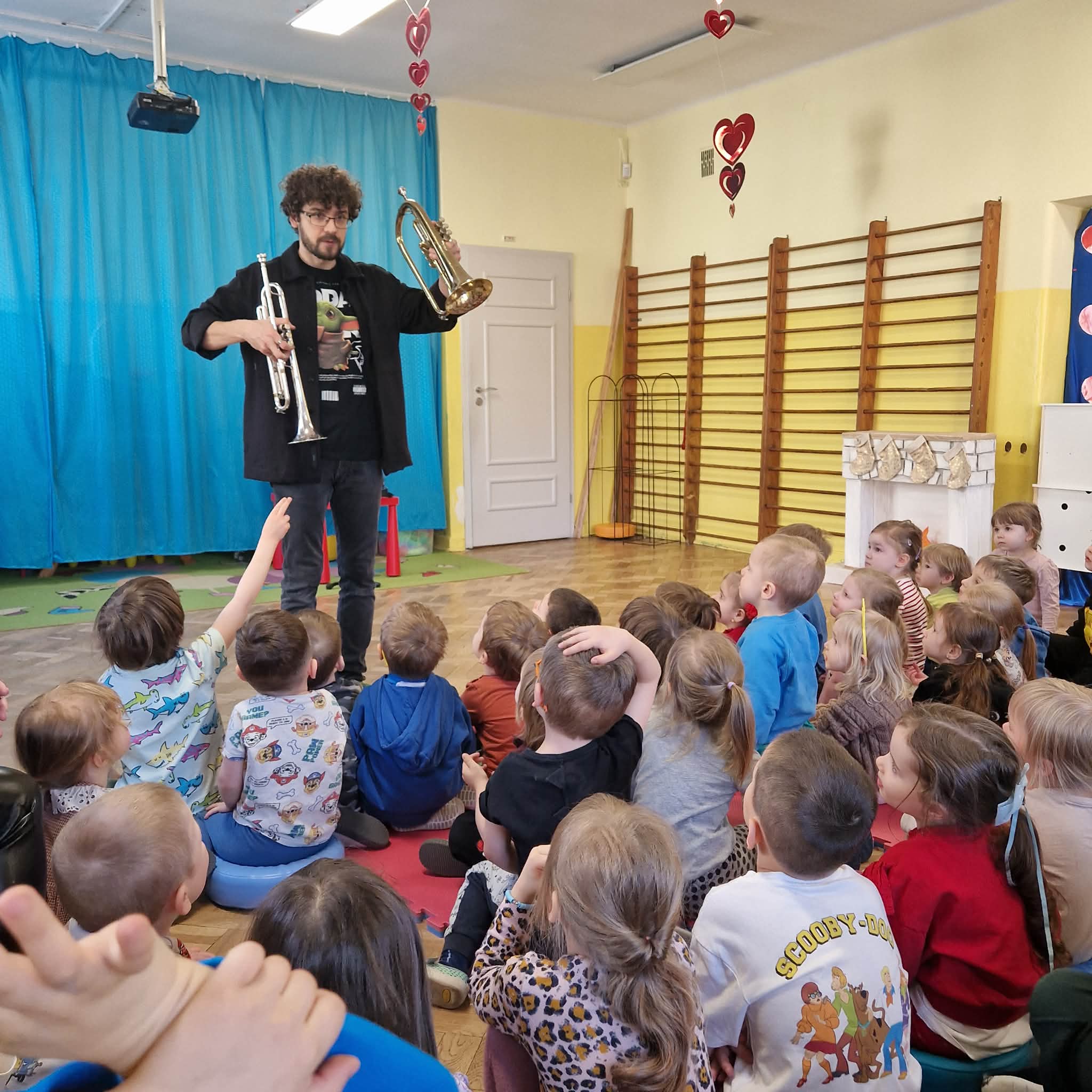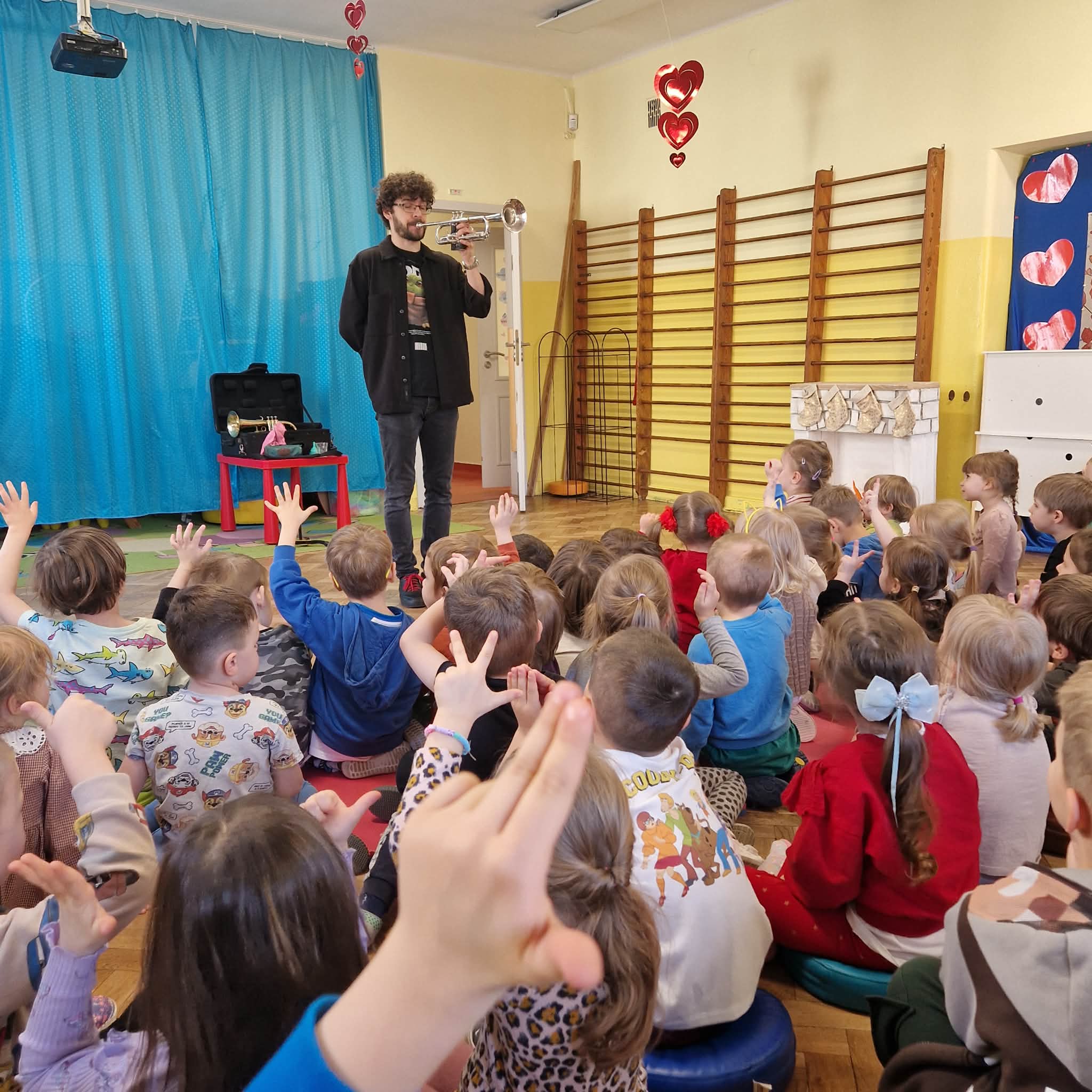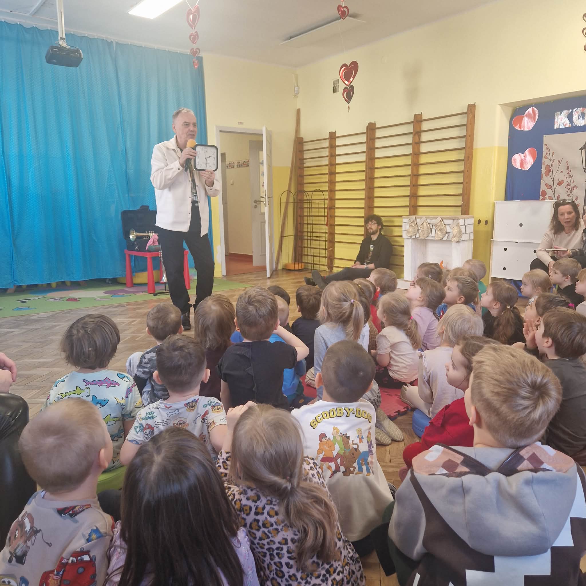 Dziś w naszym przedszkolu odbyła się styczniowa audycja muzyczna pt.” Karnawałowe szaleństwo”. Dzisiejsze spotkanie poprowadzili dobrze znani i lubiani Pan Witek w duecie z Panem Jackiem. Dzieci na dzisiejszym koncercie miały okazję poznać wygląd i brzmienie trąbki. Spotkanie dostarczyło przedszkolakom wielu radości, było pełne muzyki, zabawy i pozytywnych emocji.