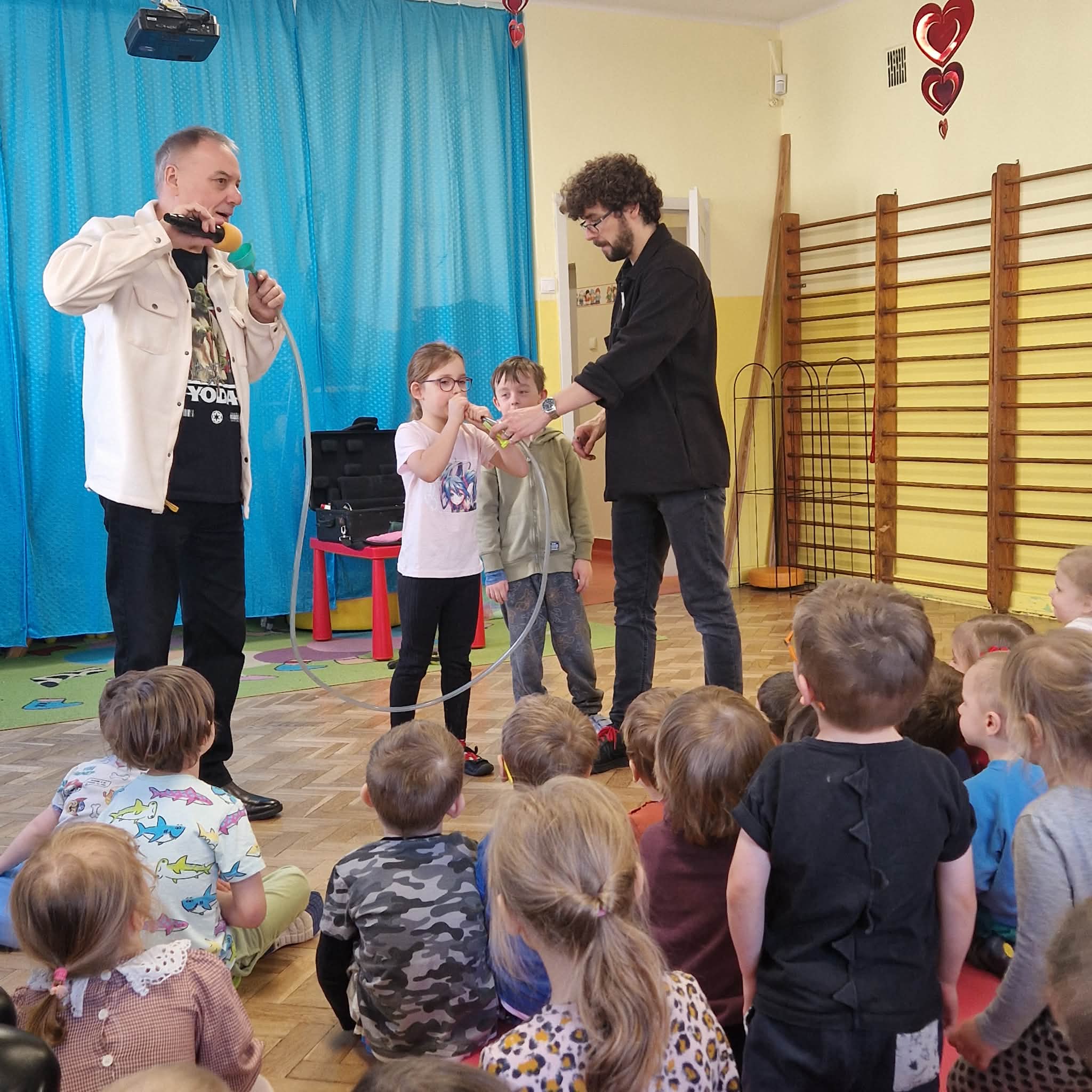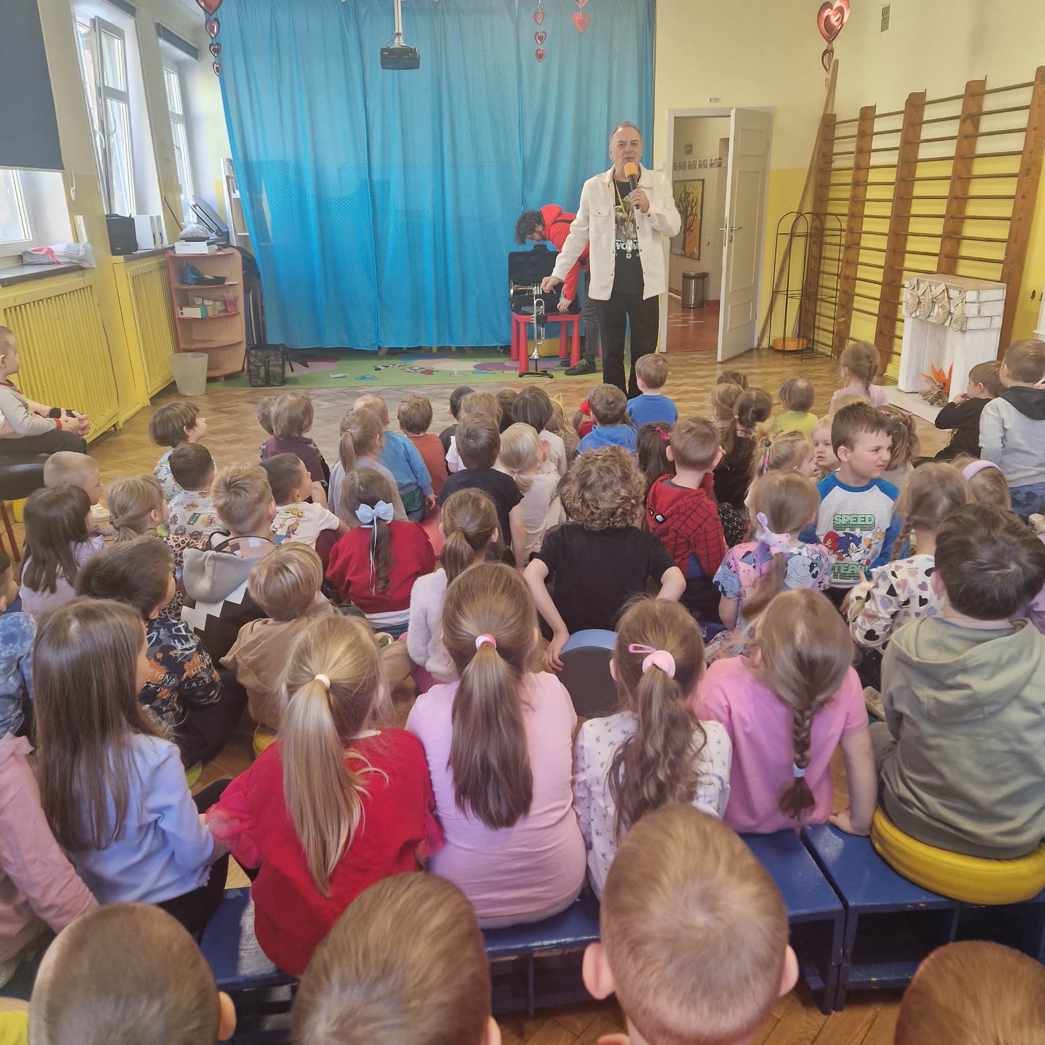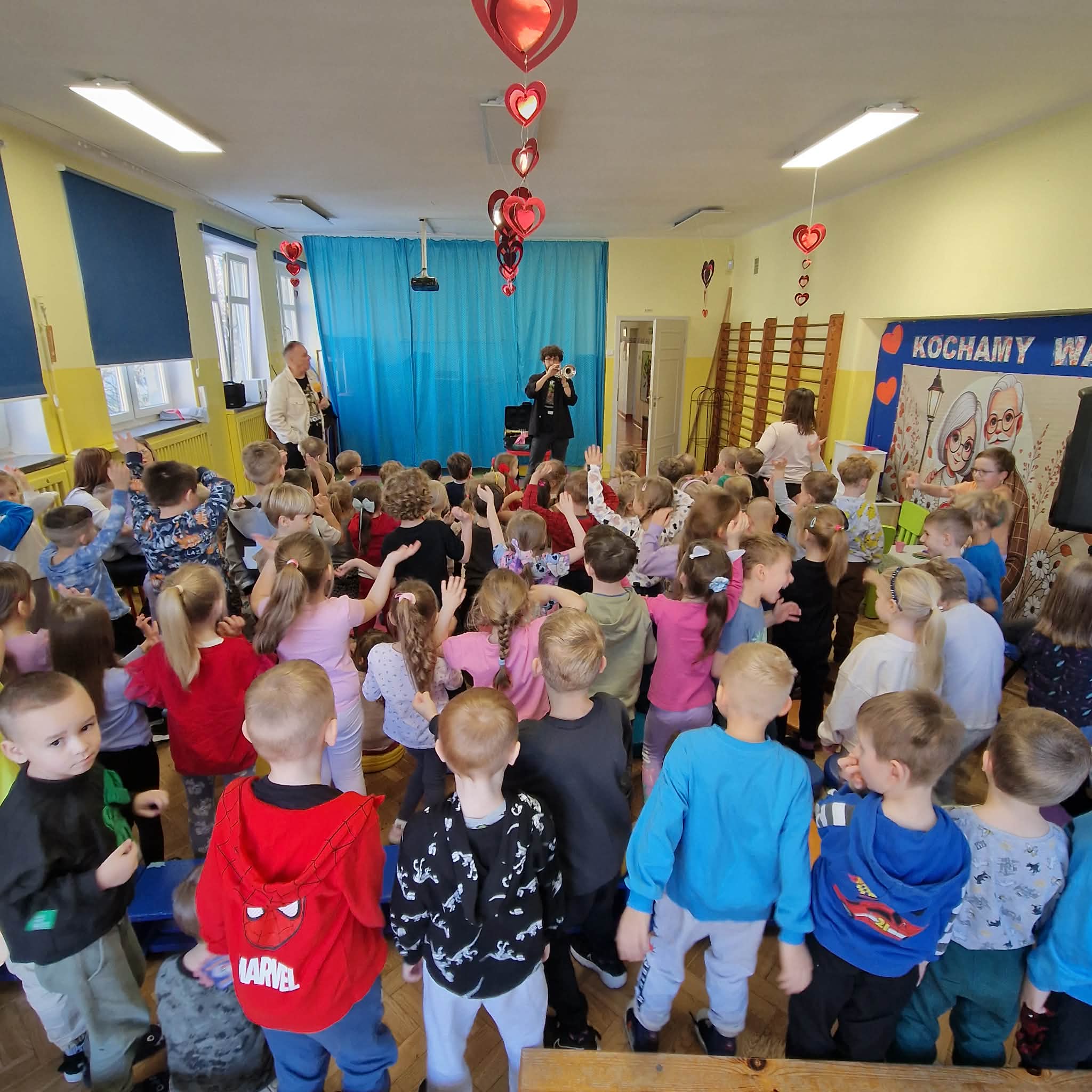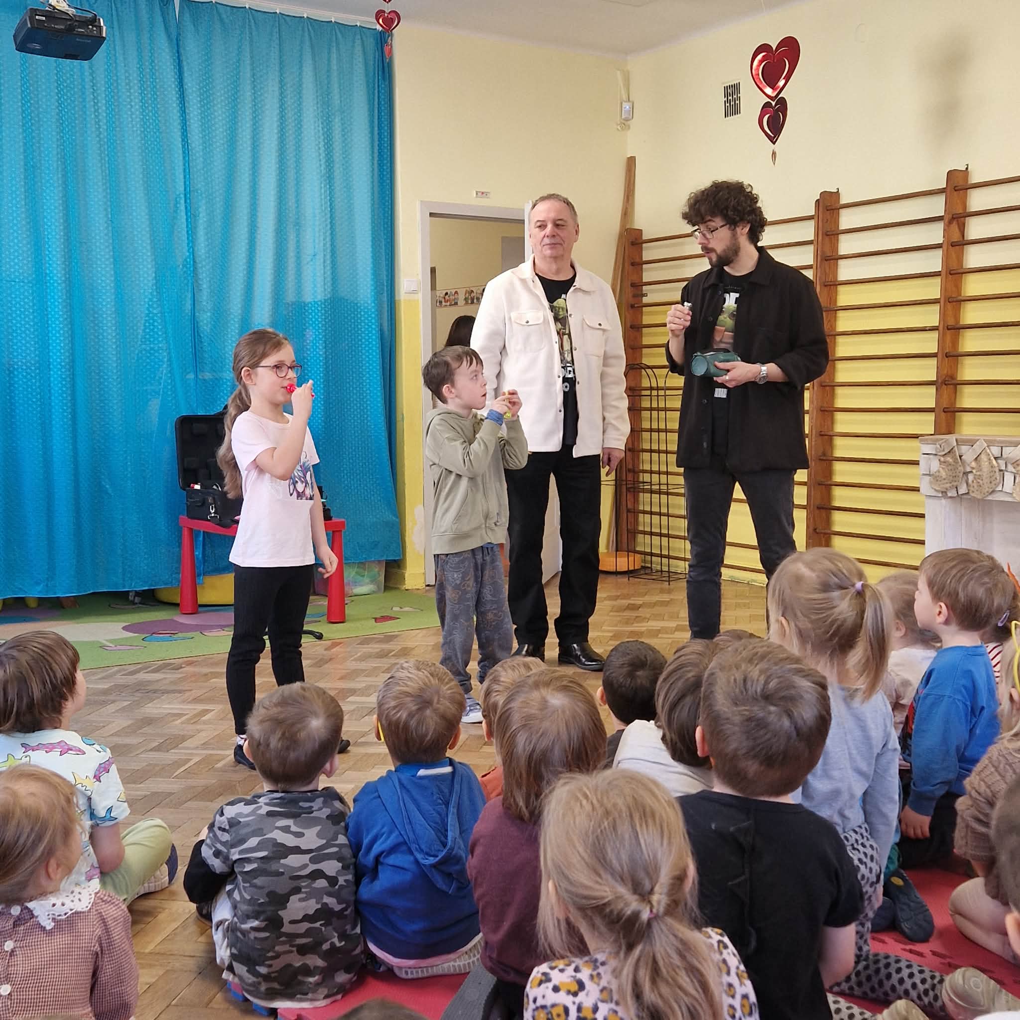 Dziś w naszym przedszkolu odbyła się styczniowa audycja muzyczna pt.” Karnawałowe szaleństwo”. Dzisiejsze spotkanie poprowadzili dobrze znani i lubiani Pan Witek w duecie z Panem Jackiem. Dzieci na dzisiejszym koncercie miały okazję poznać wygląd i brzmienie trąbki. Spotkanie dostarczyło przedszkolakom wielu radości, było pełne muzyki, zabawy i pozytywnych emocji.