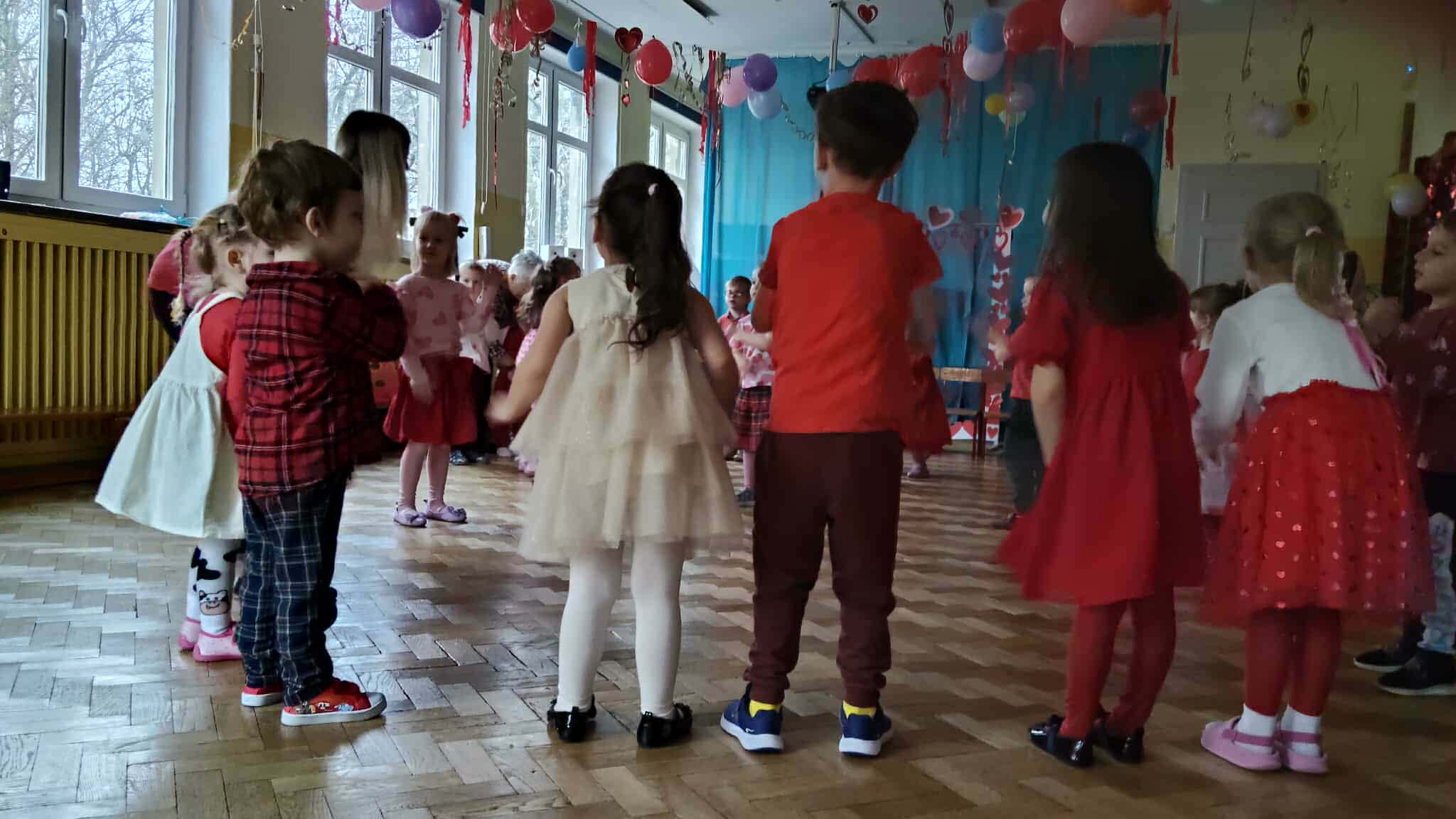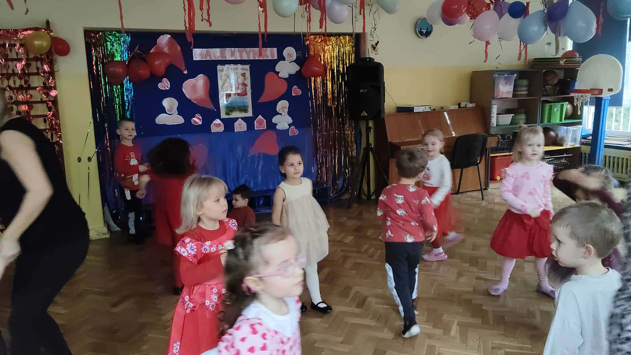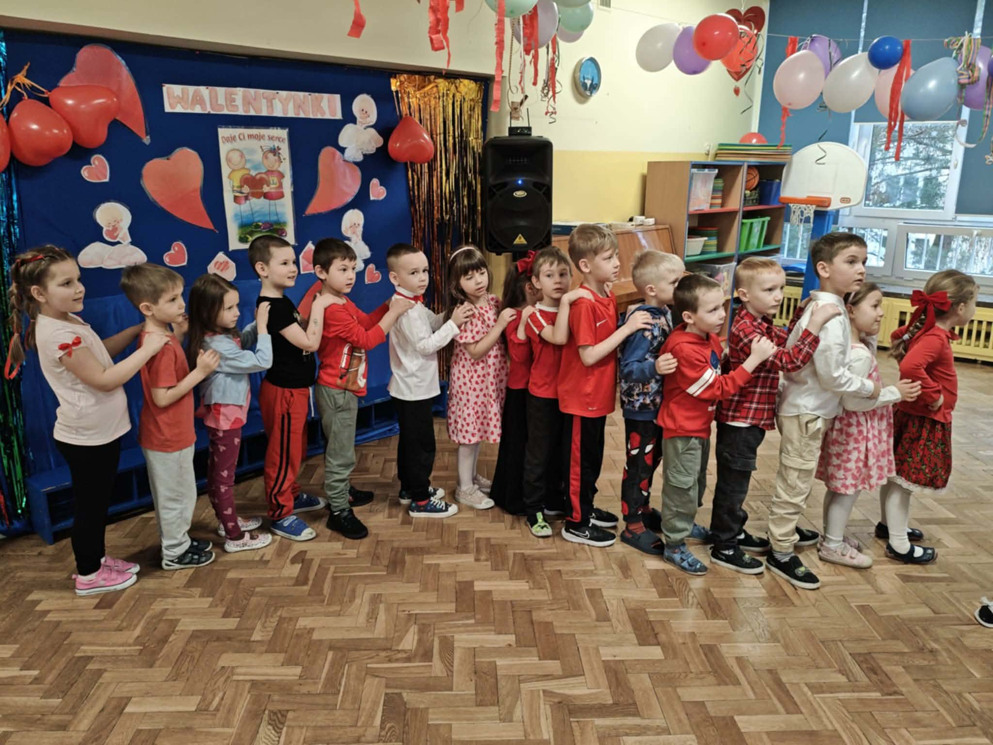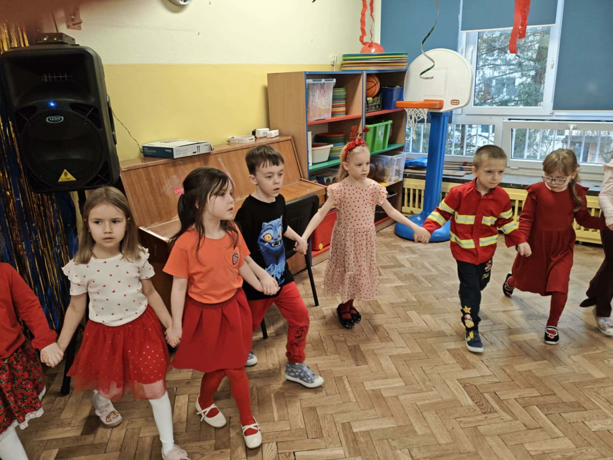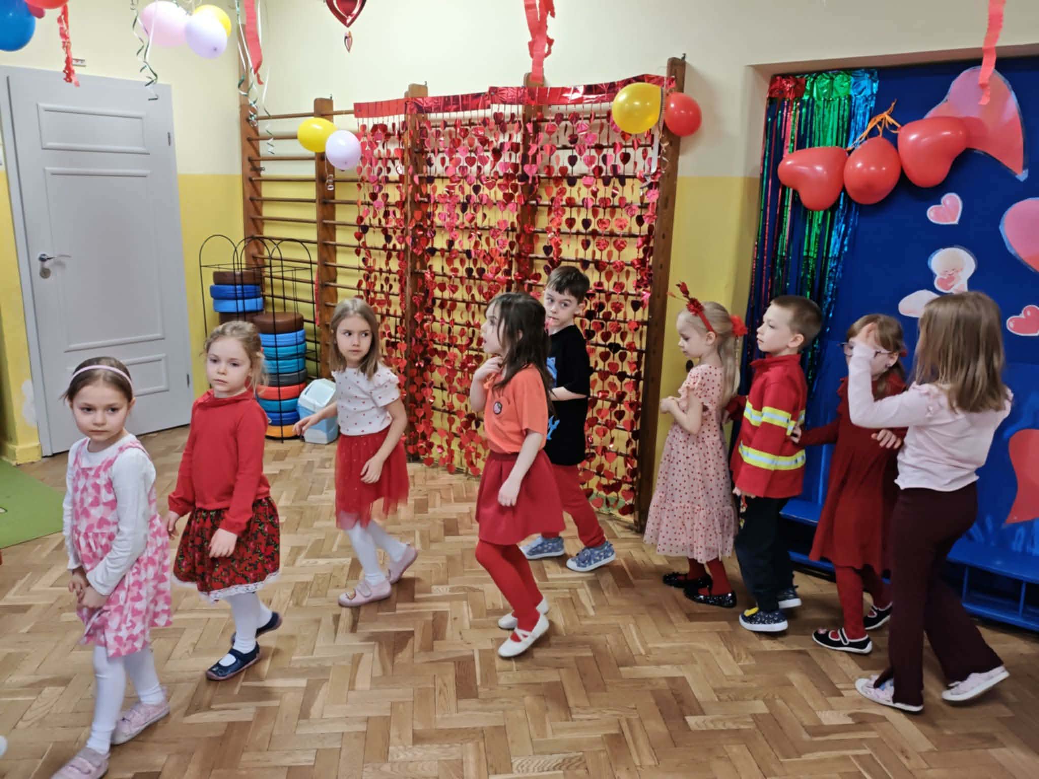 Dziś w naszym przedszkolu odbył się bal walentynkowy z okazji nadchodzącego święta- Świętego Walentego. Tego dnia było bardzo czerwono, a to za sprawą przedszkolaków ubranych w ten charakterystyczny dla Walentynek kolor, a także wystroju przedszkola, w którym dominowały czerwone serca. Podczas balu przedszkolaki tańczyły, brały udział w różnych zabawach integracyjnych takich jak: układanie serduszkowych puzzli, rysowanie palcem po piasku, układanie serc z kolorowych szarf, plastikowych nakrętek, dzieci grały na instrumentach muzycznych tańczyły walca. Dzisiejszy bal to nie tylko dobra zabawa, ale także okazja do nauki okazywania uczuć, współpracy i budowania pozytywnych relacji między dziećmi. To dzień pełen radości, śmiechu i serdecznej atmosfery, który na długo pozostaje w pamięci przedszkolaków.