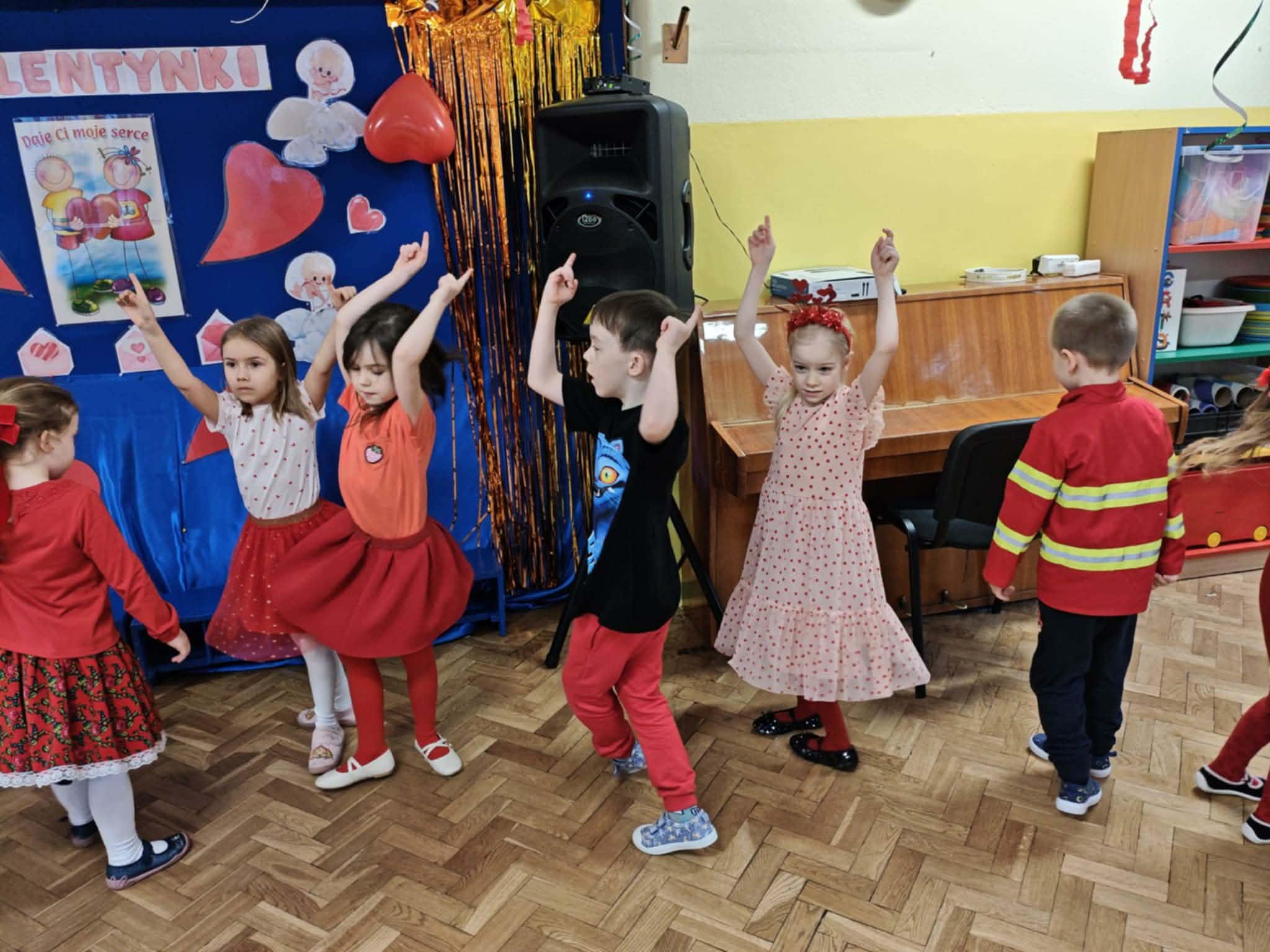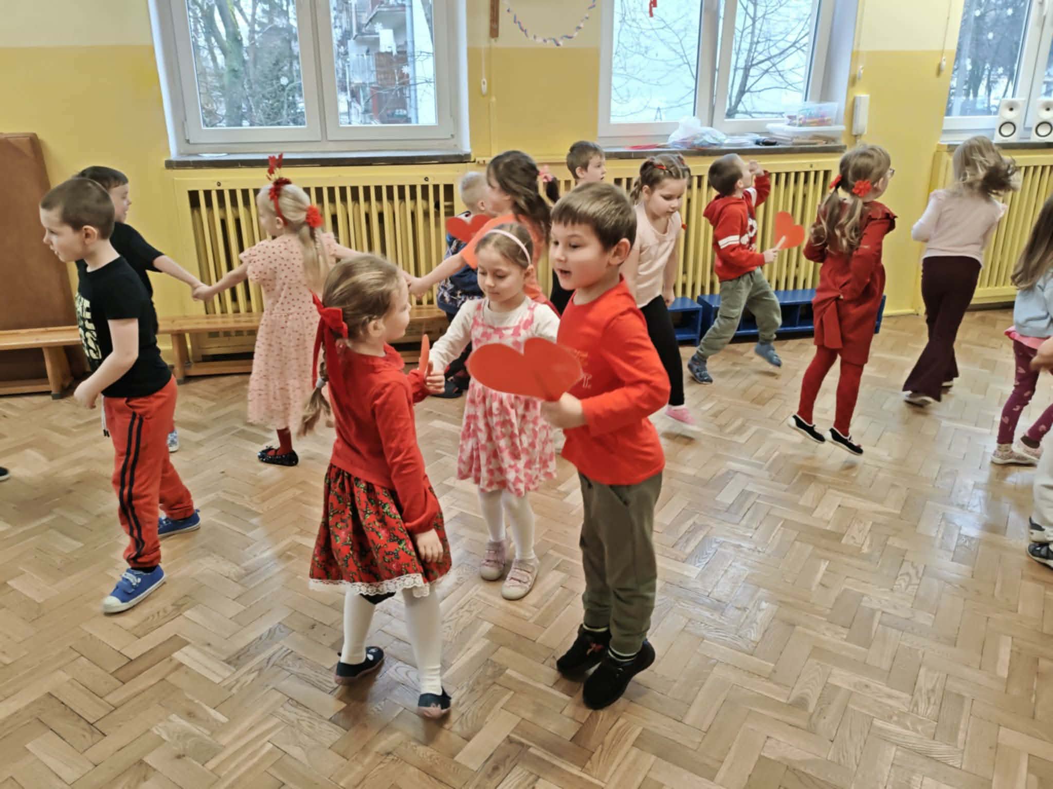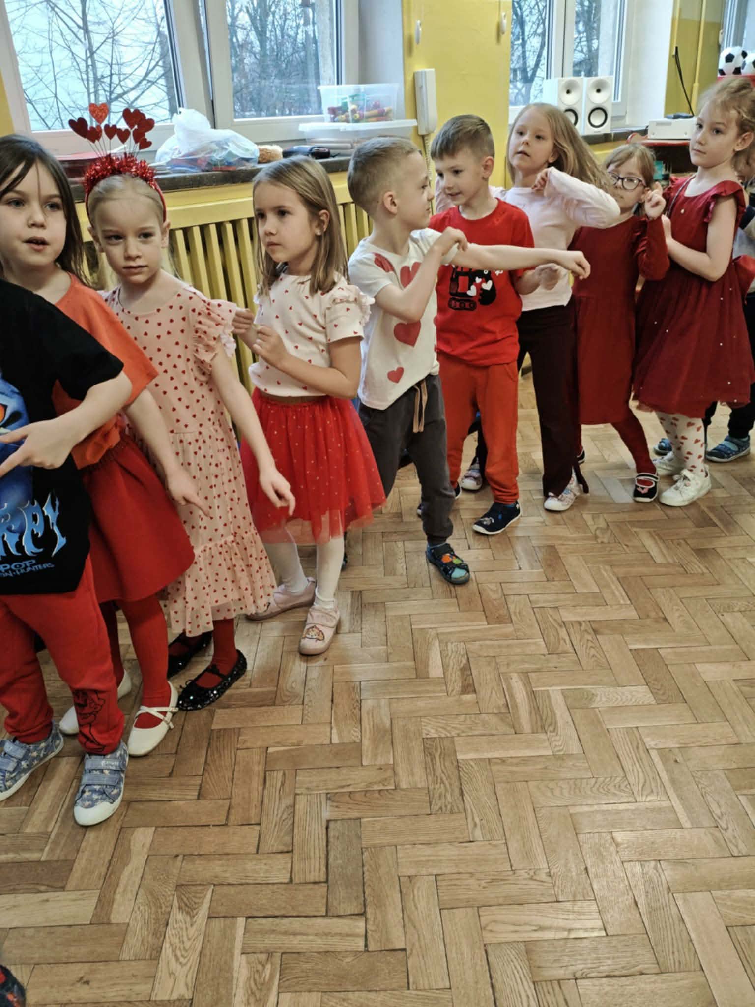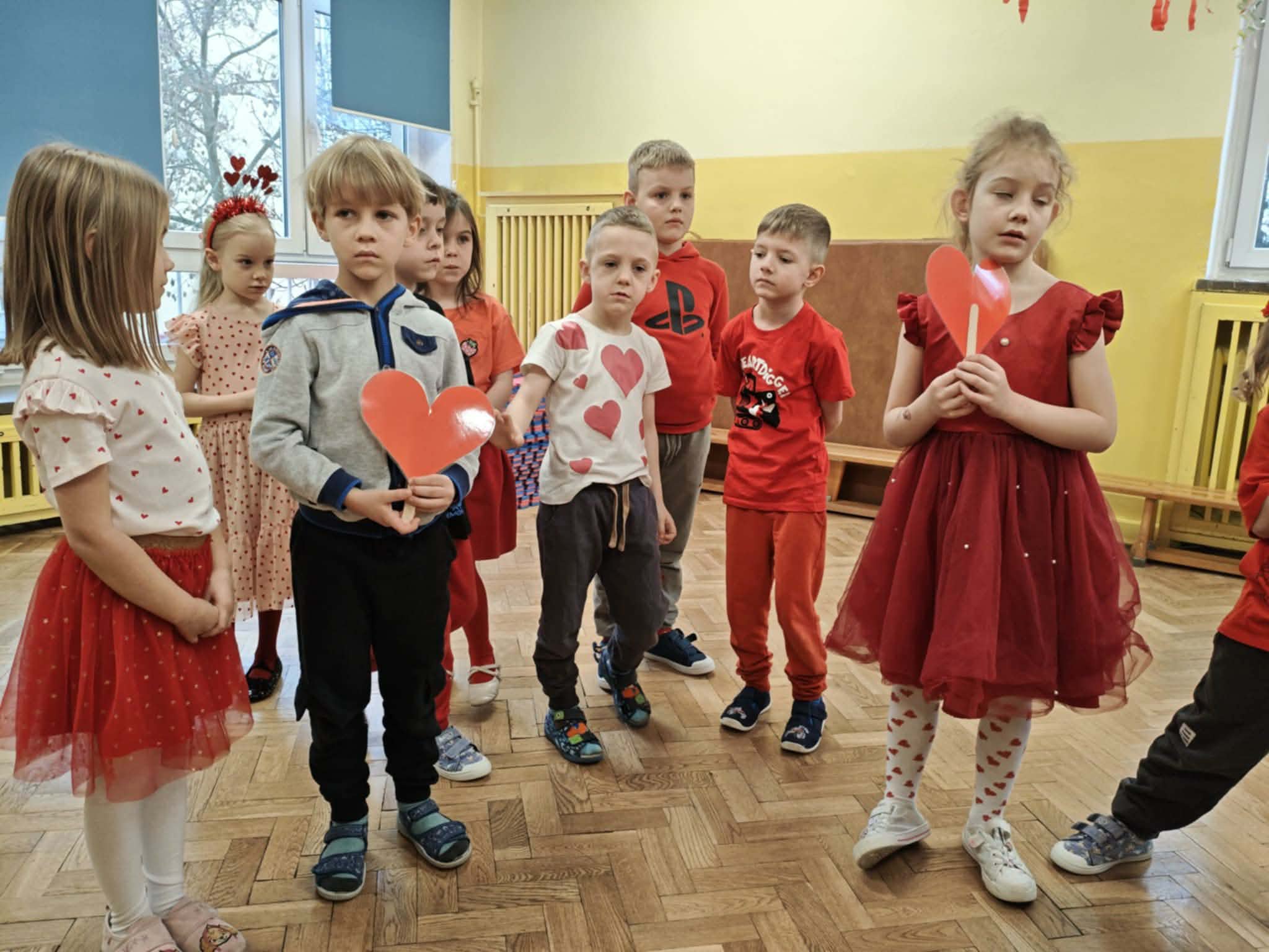 Dziś w naszym przedszkolu odbył się bal walentynkowy z okazji nadchodzącego święta- Świętego Walentego. Tego dnia było bardzo czerwono, a to za sprawą przedszkolaków ubranych w ten charakterystyczny dla Walentynek kolor, a także wystroju przedszkola, w którym dominowały czerwone serca. Podczas balu przedszkolaki tańczyły, brały udział w różnych zabawach integracyjnych takich jak: układanie serduszkowych puzzli, rysowanie palcem po piasku, układanie serc z kolorowych szarf, plastikowych nakrętek, dzieci grały na instrumentach muzycznych tańczyły walca. Dzisiejszy bal to nie tylko dobra zabawa, ale także okazja do nauki okazywania uczuć, współpracy i budowania pozytywnych relacji między dziećmi. To dzień pełen radości, śmiechu i serdecznej atmosfery, który na długo pozostaje w pamięci przedszkolaków.