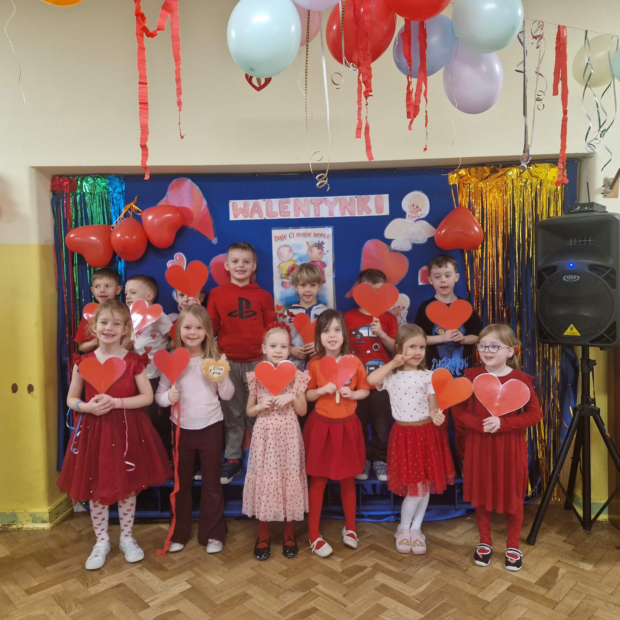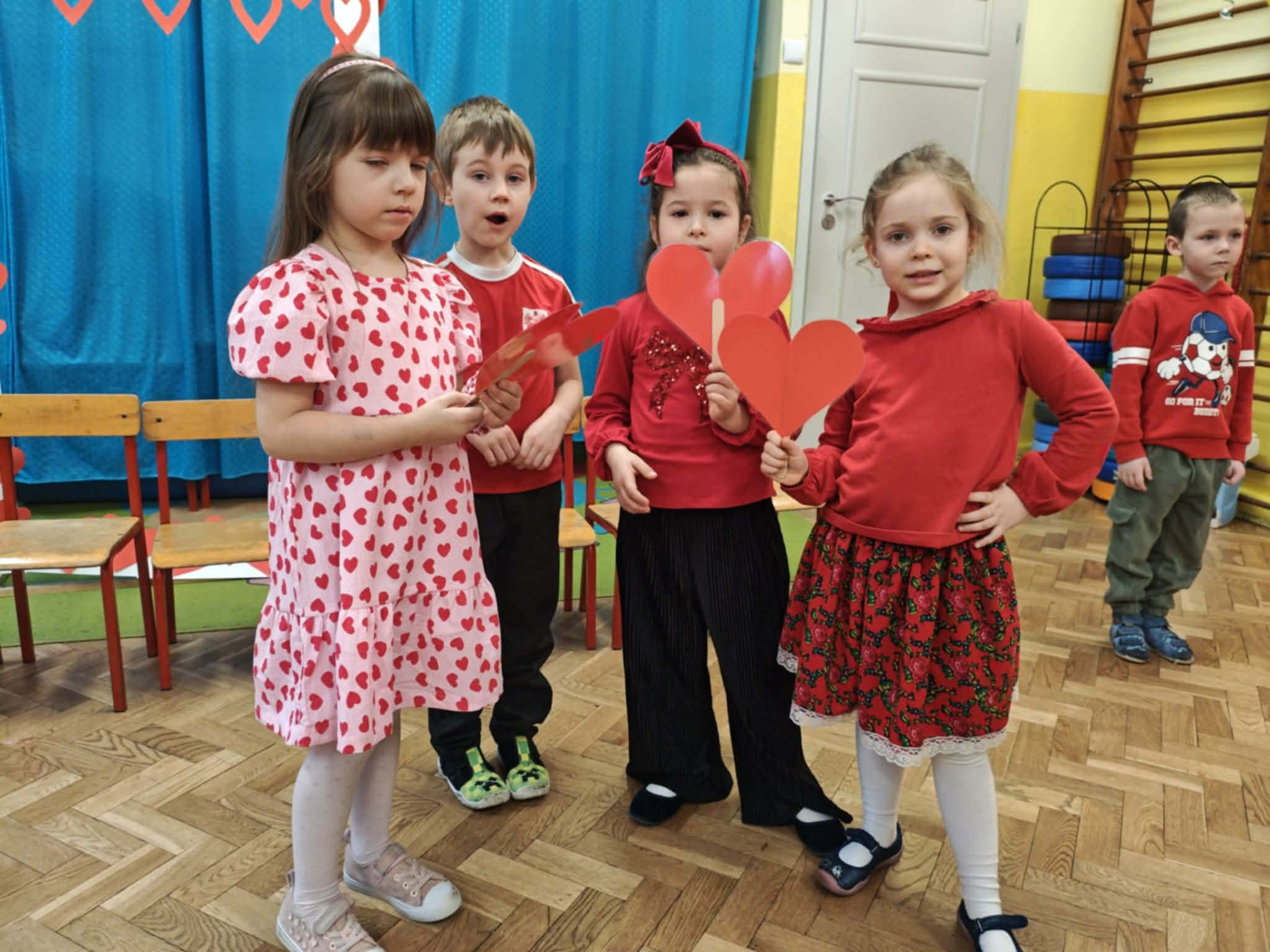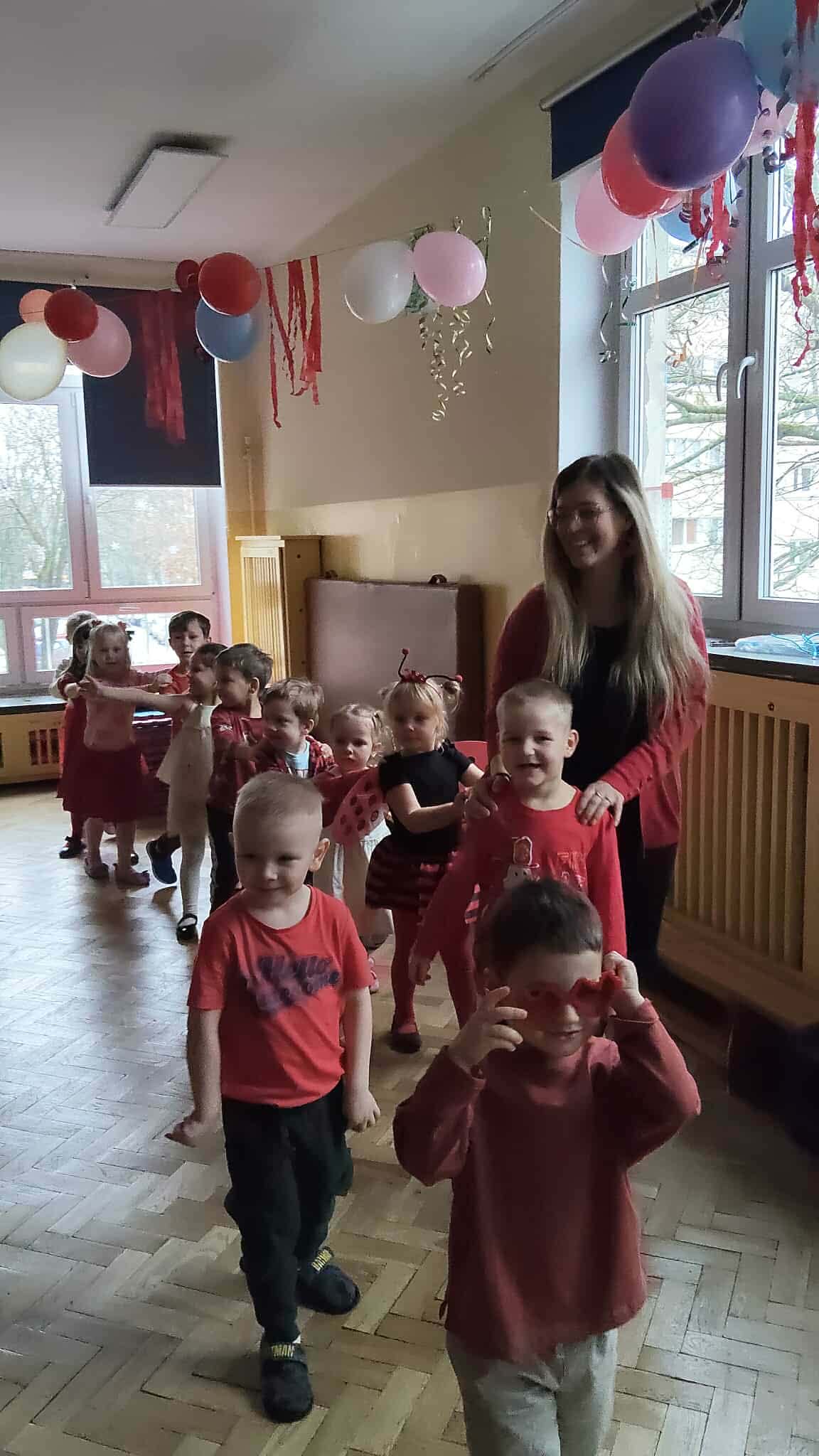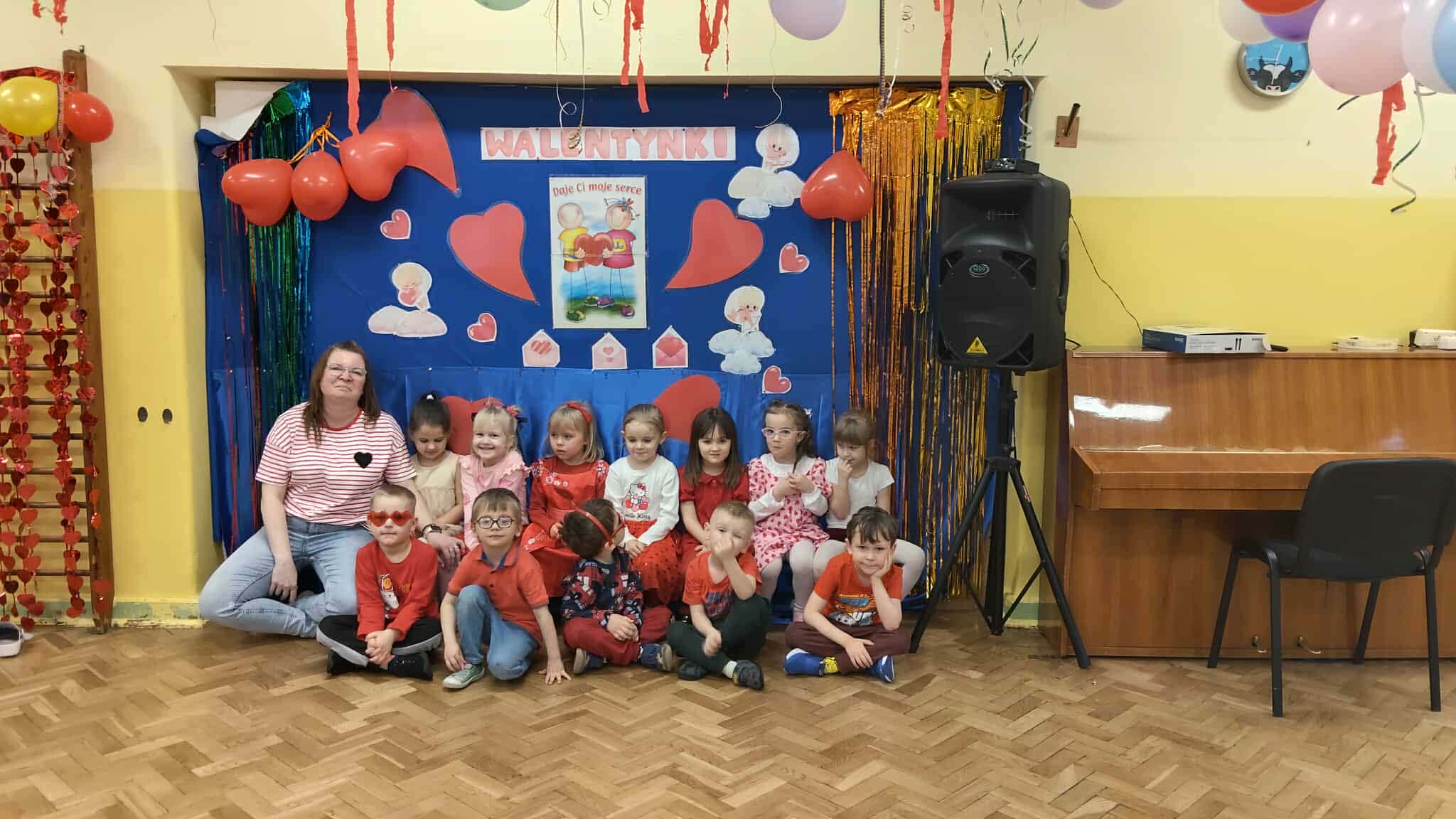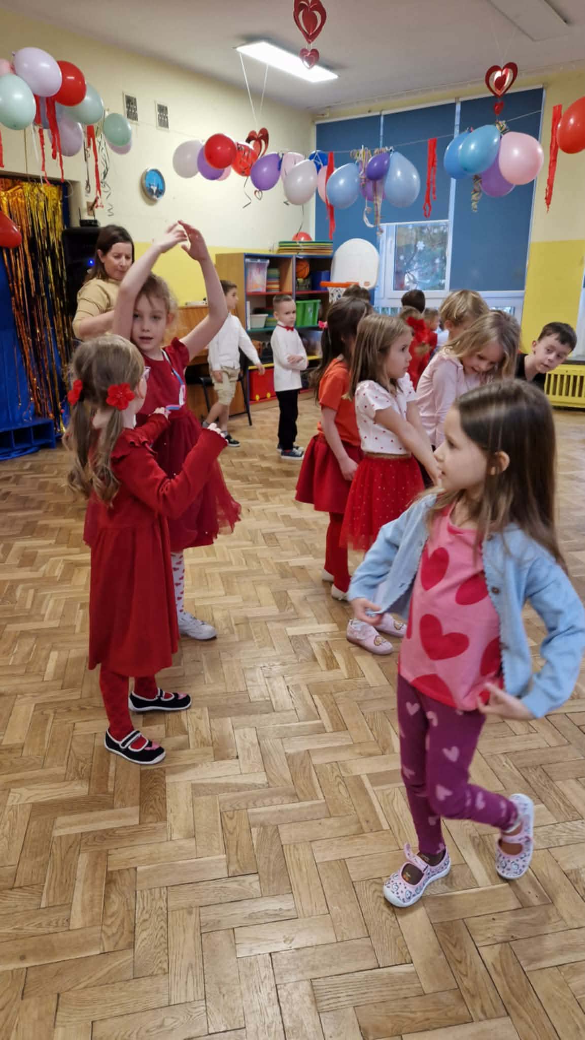 Dziś w naszym przedszkolu odbył się bal walentynkowy z okazji nadchodzącego święta- Świętego Walentego. Tego dnia było bardzo czerwono, a to za sprawą przedszkolaków ubranych w ten charakterystyczny dla Walentynek kolor, a także wystroju przedszkola, w którym dominowały czerwone serca. Podczas balu przedszkolaki tańczyły, brały udział w różnych zabawach integracyjnych takich jak: układanie serduszkowych puzzli, rysowanie palcem po piasku, układanie serc z kolorowych szarf, plastikowych nakrętek, dzieci grały na instrumentach muzycznych tańczyły walca. Dzisiejszy bal to nie tylko dobra zabawa, ale także okazja do nauki okazywania uczuć, współpracy i budowania pozytywnych relacji między dziećmi. To dzień pełen radości, śmiechu i serdecznej atmosfery, który na długo pozostaje w pamięci przedszkolaków.