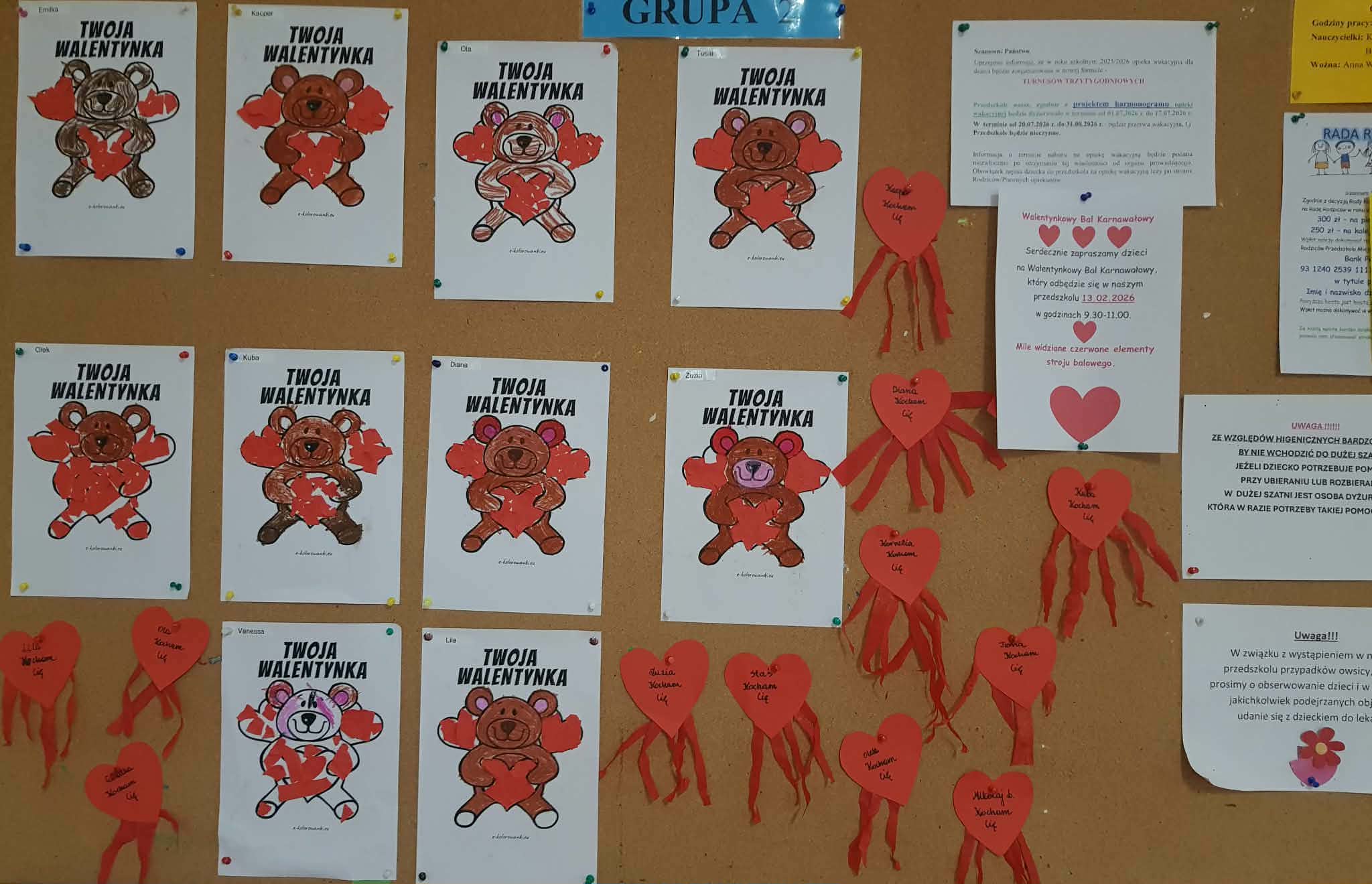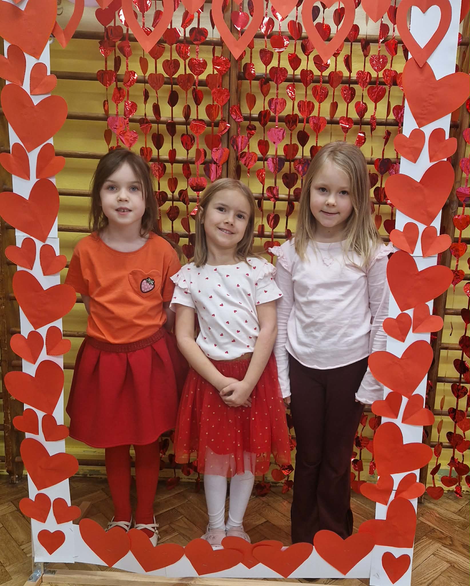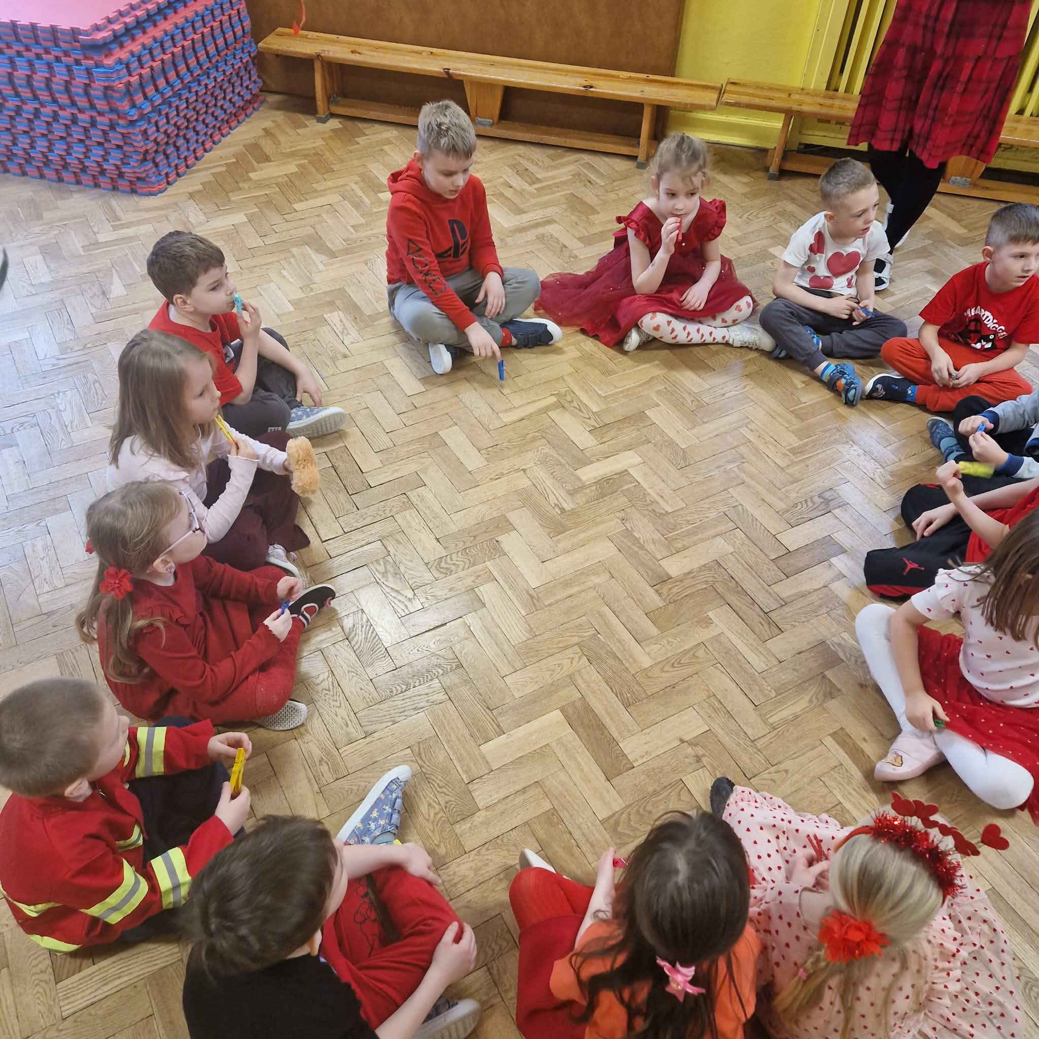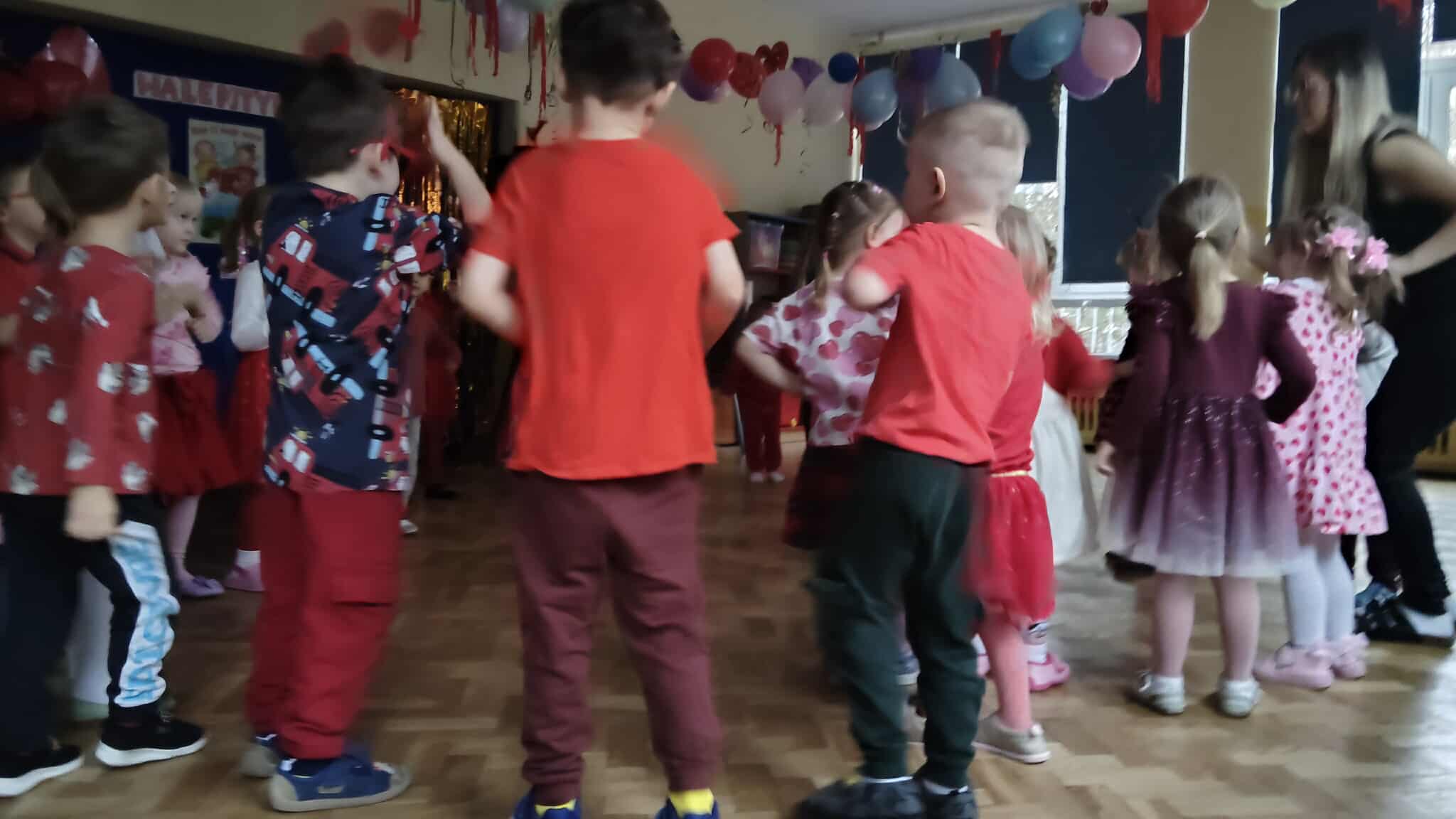 Dziś w naszym przedszkolu odbył się bal walentynkowy z okazji nadchodzącego święta- Świętego Walentego. Tego dnia było bardzo czerwono, a to za sprawą przedszkolaków ubranych w ten charakterystyczny dla Walentynek kolor, a także wystroju przedszkola, w którym dominowały czerwone serca. Podczas balu przedszkolaki tańczyły, brały udział w różnych zabawach integracyjnych takich jak: układanie serduszkowych puzzli, rysowanie palcem po piasku, układanie serc z kolorowych szarf, plastikowych nakrętek, dzieci grały na instrumentach muzycznych tańczyły walca. Dzisiejszy bal to nie tylko dobra zabawa, ale także okazja do nauki okazywania uczuć, współpracy i budowania pozytywnych relacji między dziećmi. To dzień pełen radości, śmiechu i serdecznej atmosfery, który na długo pozostaje w pamięci przedszkolaków.