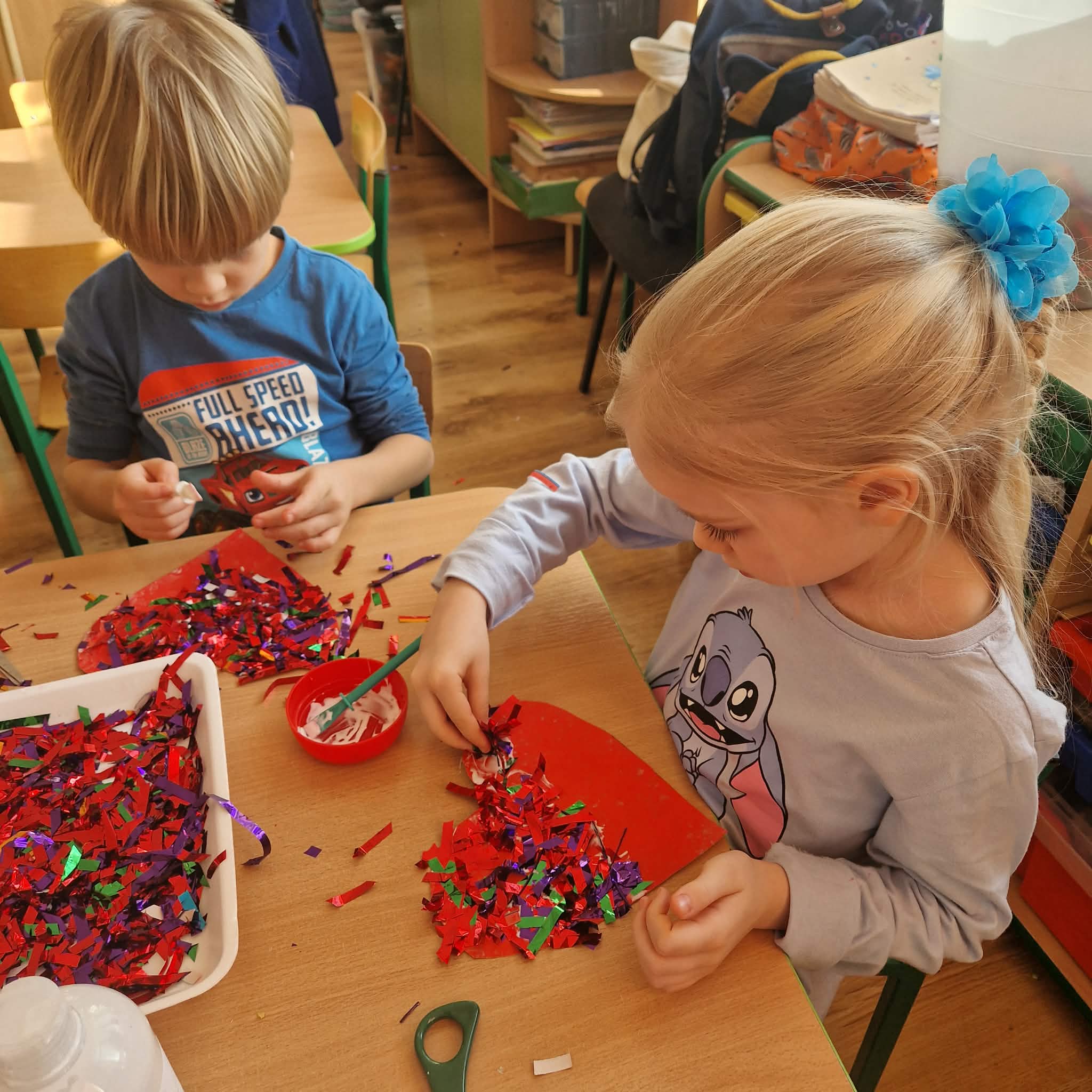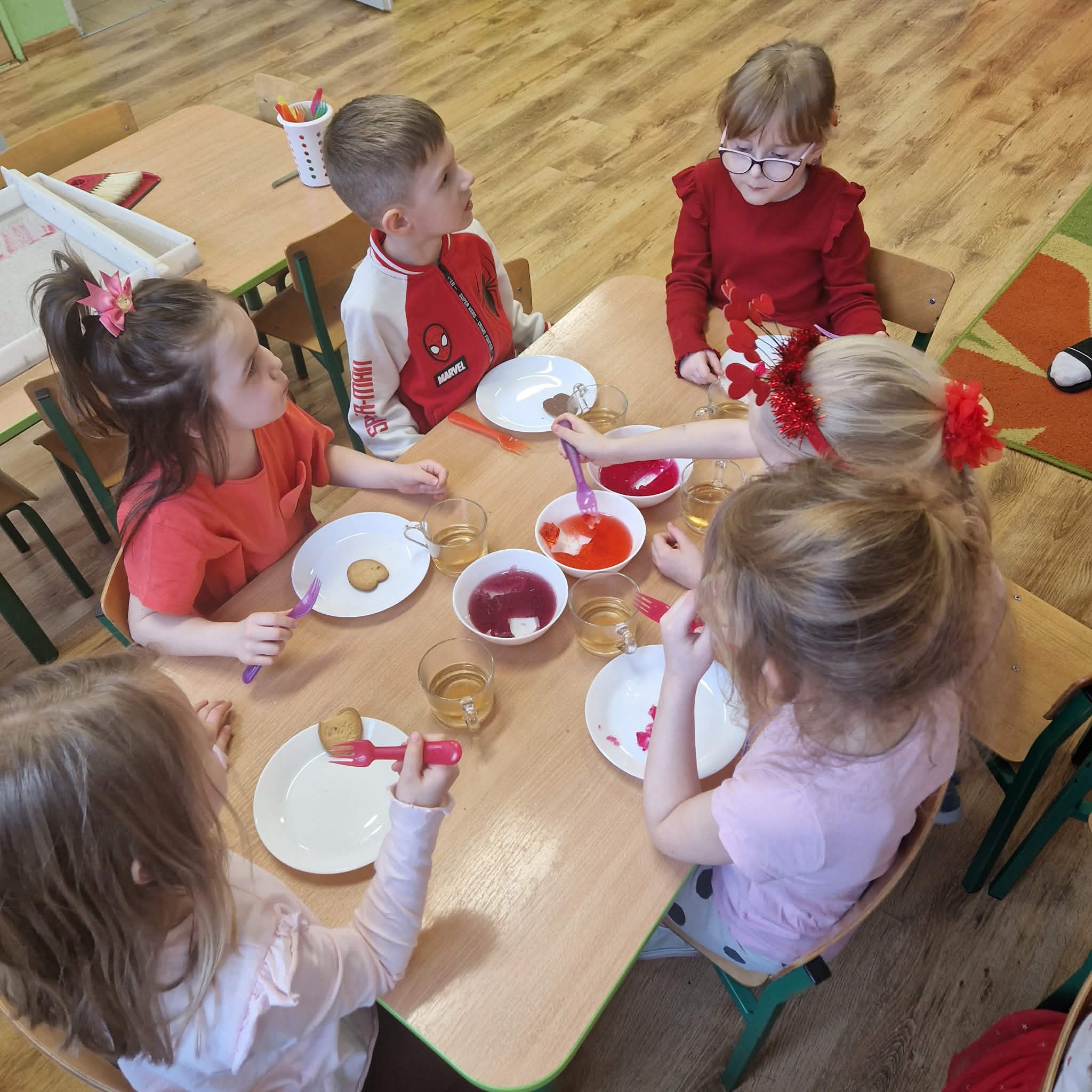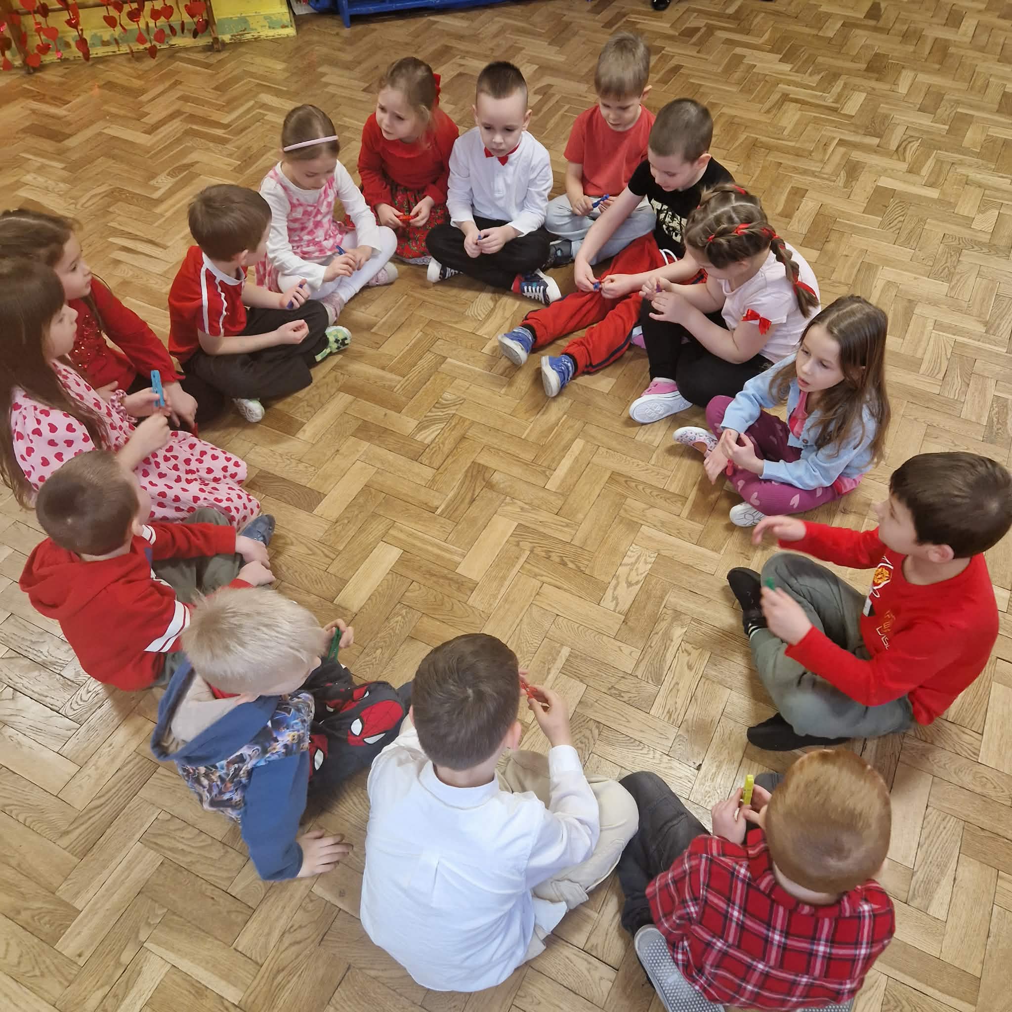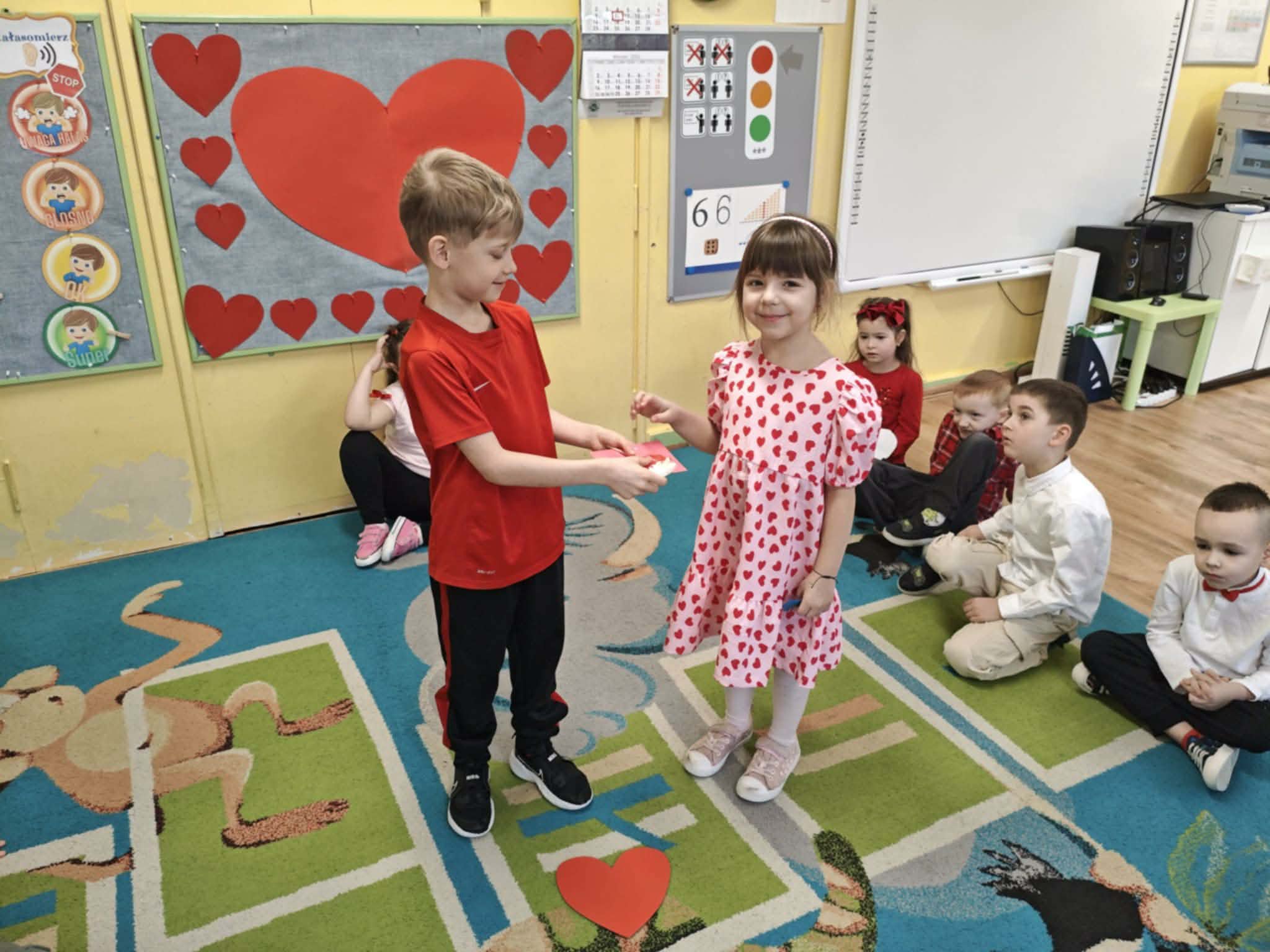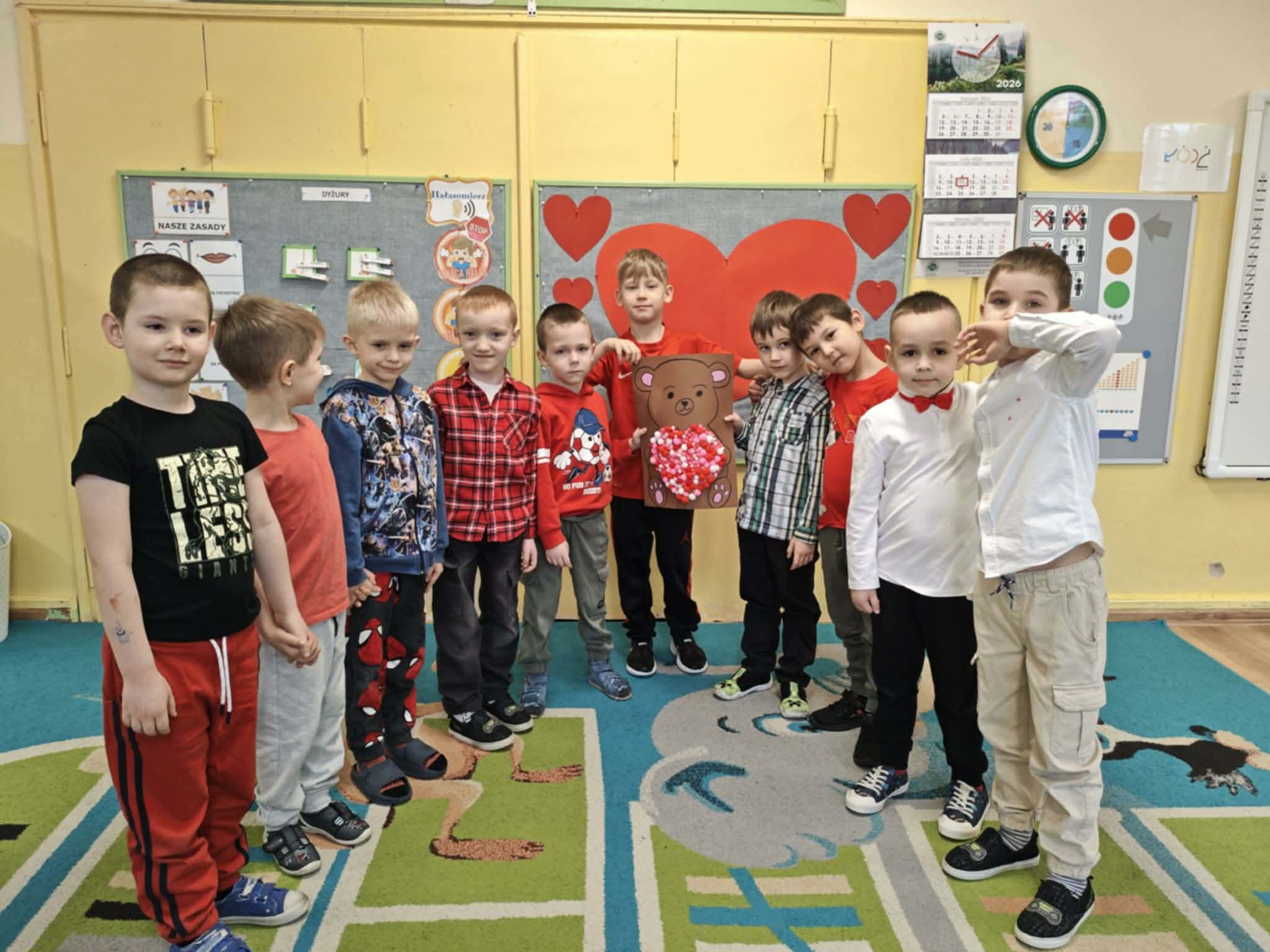 Dziś w naszym przedszkolu odbył się bal walentynkowy z okazji nadchodzącego święta- Świętego Walentego. Tego dnia było bardzo czerwono, a to za sprawą przedszkolaków ubranych w ten charakterystyczny dla Walentynek kolor, a także wystroju przedszkola, w którym dominowały czerwone serca. Podczas balu przedszkolaki tańczyły, brały udział w różnych zabawach integracyjnych takich jak: układanie serduszkowych puzzli, rysowanie palcem po piasku, układanie serc z kolorowych szarf, plastikowych nakrętek, dzieci grały na instrumentach muzycznych tańczyły walca. Dzisiejszy bal to nie tylko dobra zabawa, ale także okazja do nauki okazywania uczuć, współpracy i budowania pozytywnych relacji między dziećmi. To dzień pełen radości, śmiechu i serdecznej atmosfery, który na długo pozostaje w pamięci przedszkolaków.