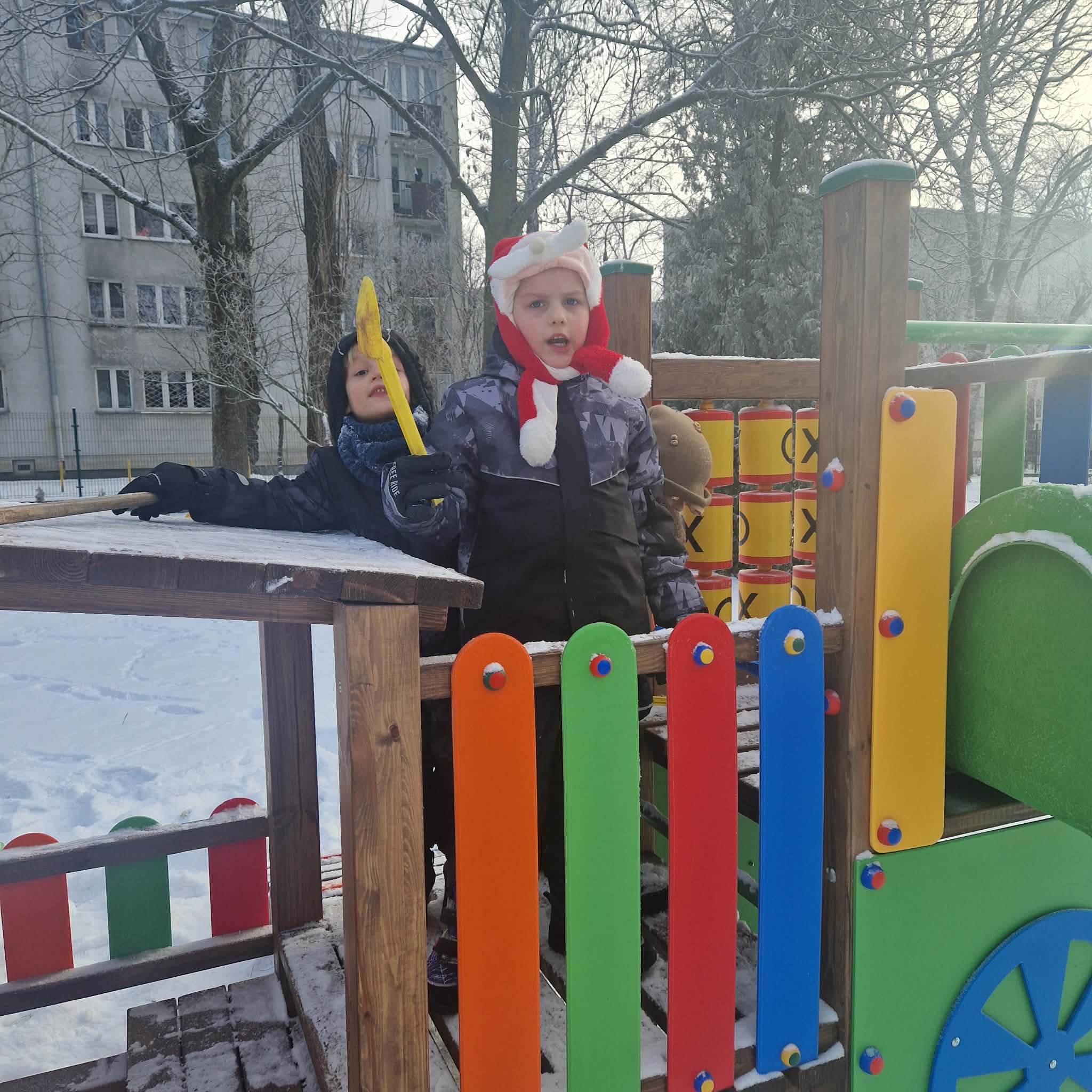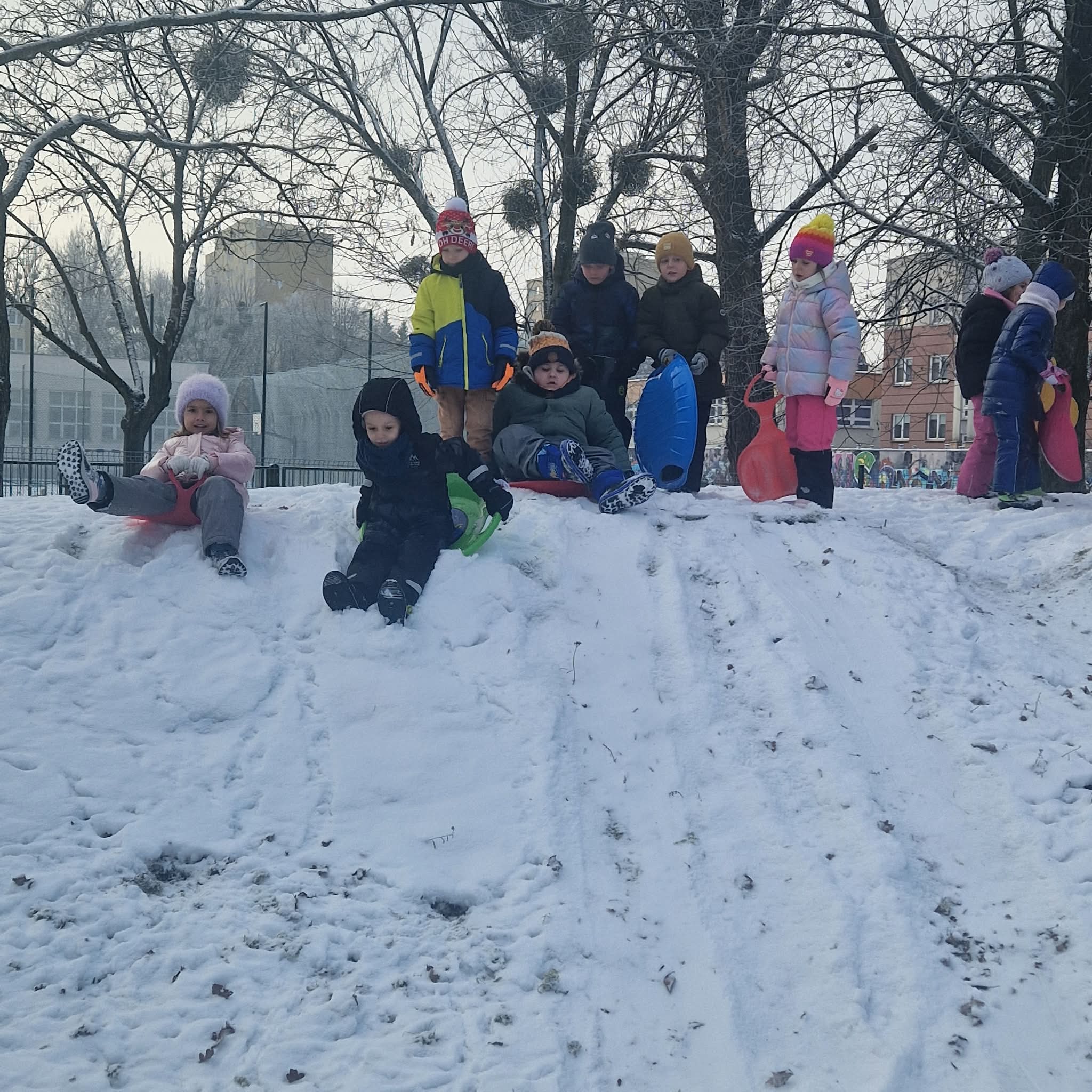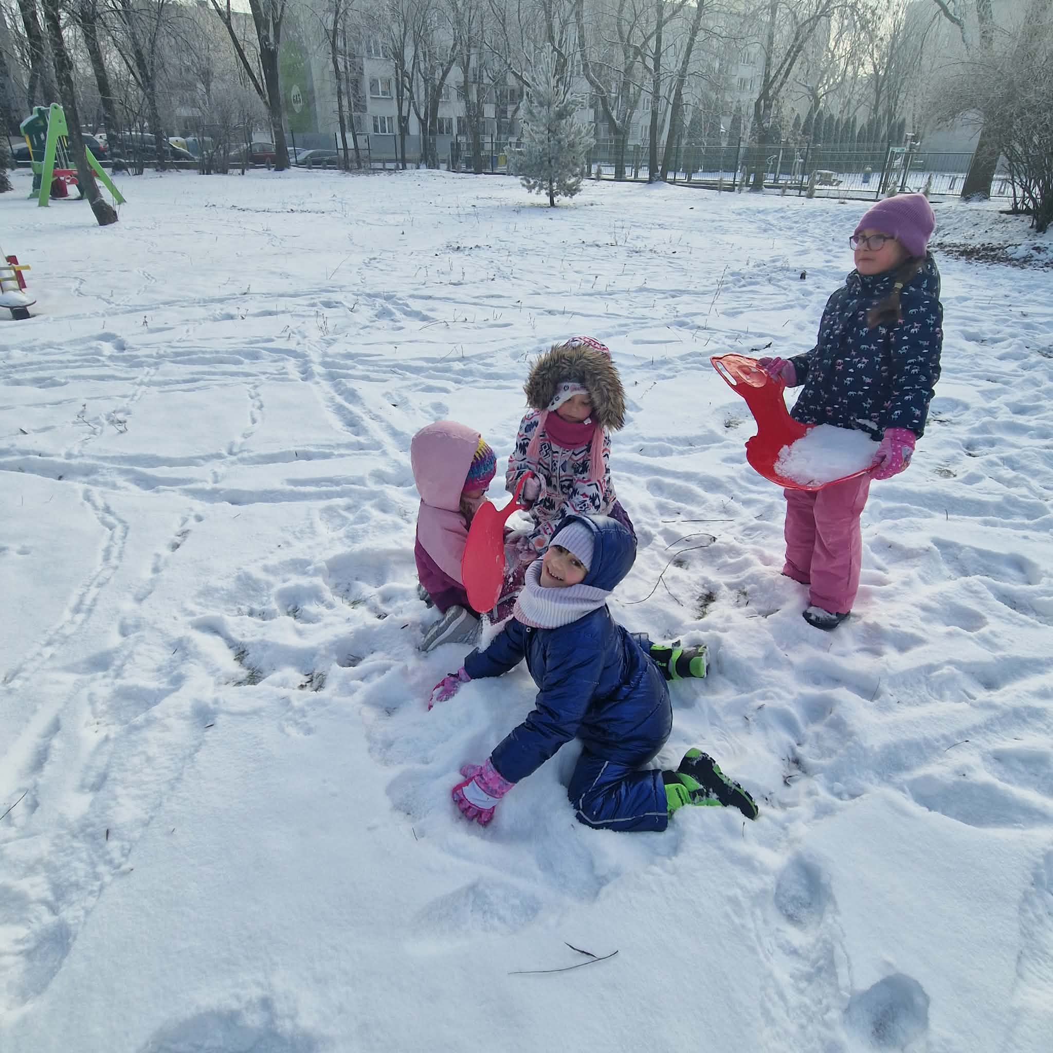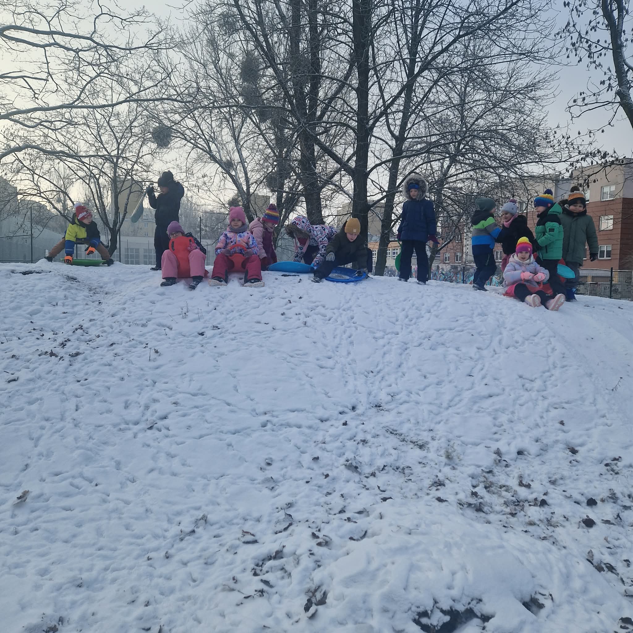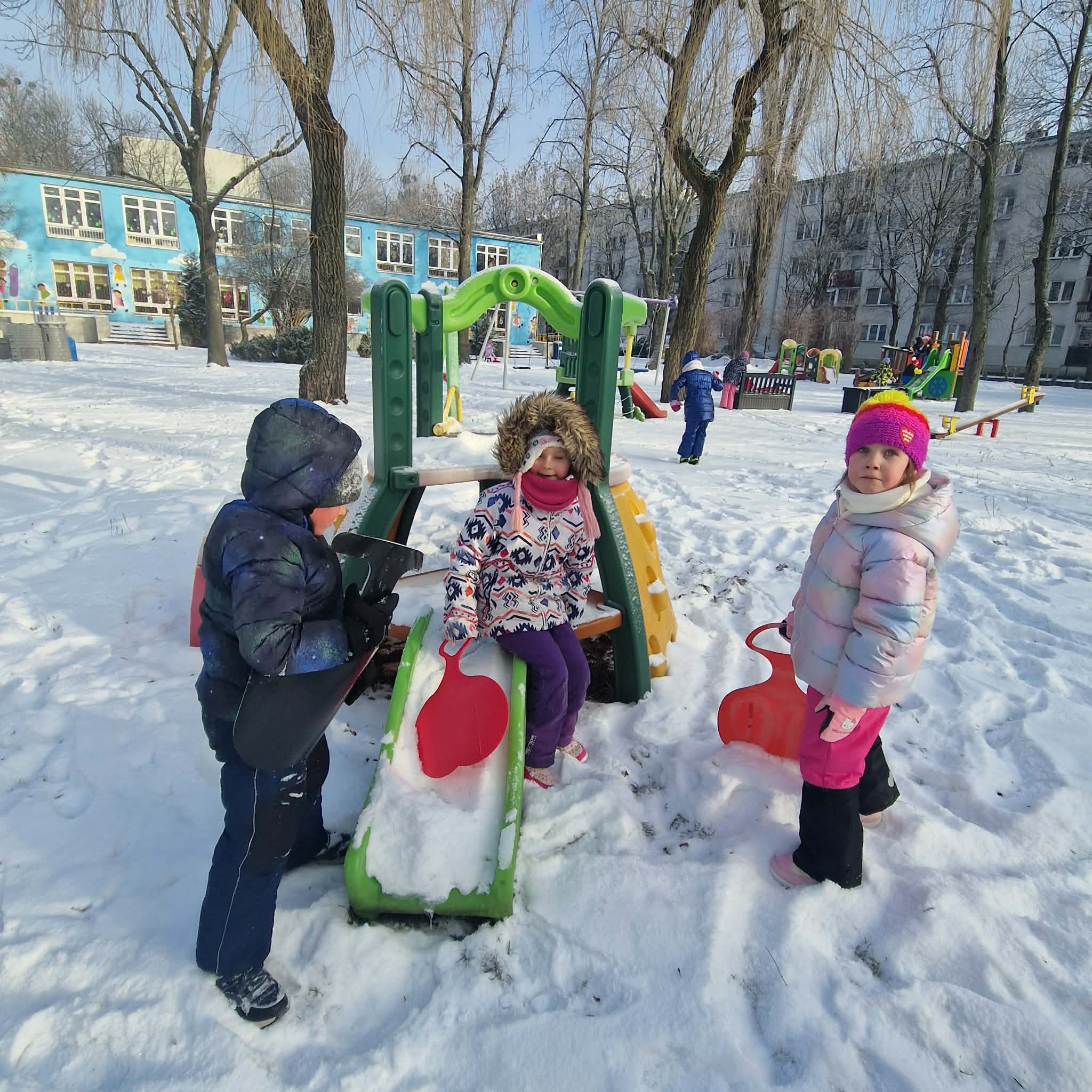 Dziś starszaki korzystając z uroków zimy bawiły się na śniegu w naszym przedszkolnym ogrodzie. Dzieci oddały się zimowemu szaleństwu, lepiąc śnieżne budowle, rzucając się śnieżkami, robiąc aniołki oraz zjeżdżając na plastikowych jabłuszkach z górki. Dzieci uwielbiają zabawy na świeżym powietrzu, była to dla nich to świetna rozrywka. Było wesoło i radośnie. Z uśmiechami na twarzach wróciliśmy do przedszkola na ciepły obiad.