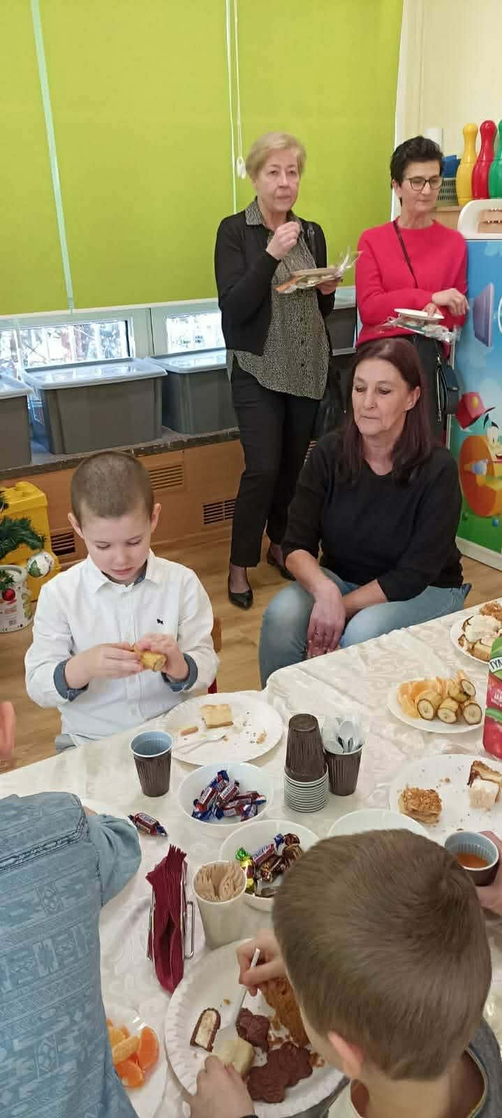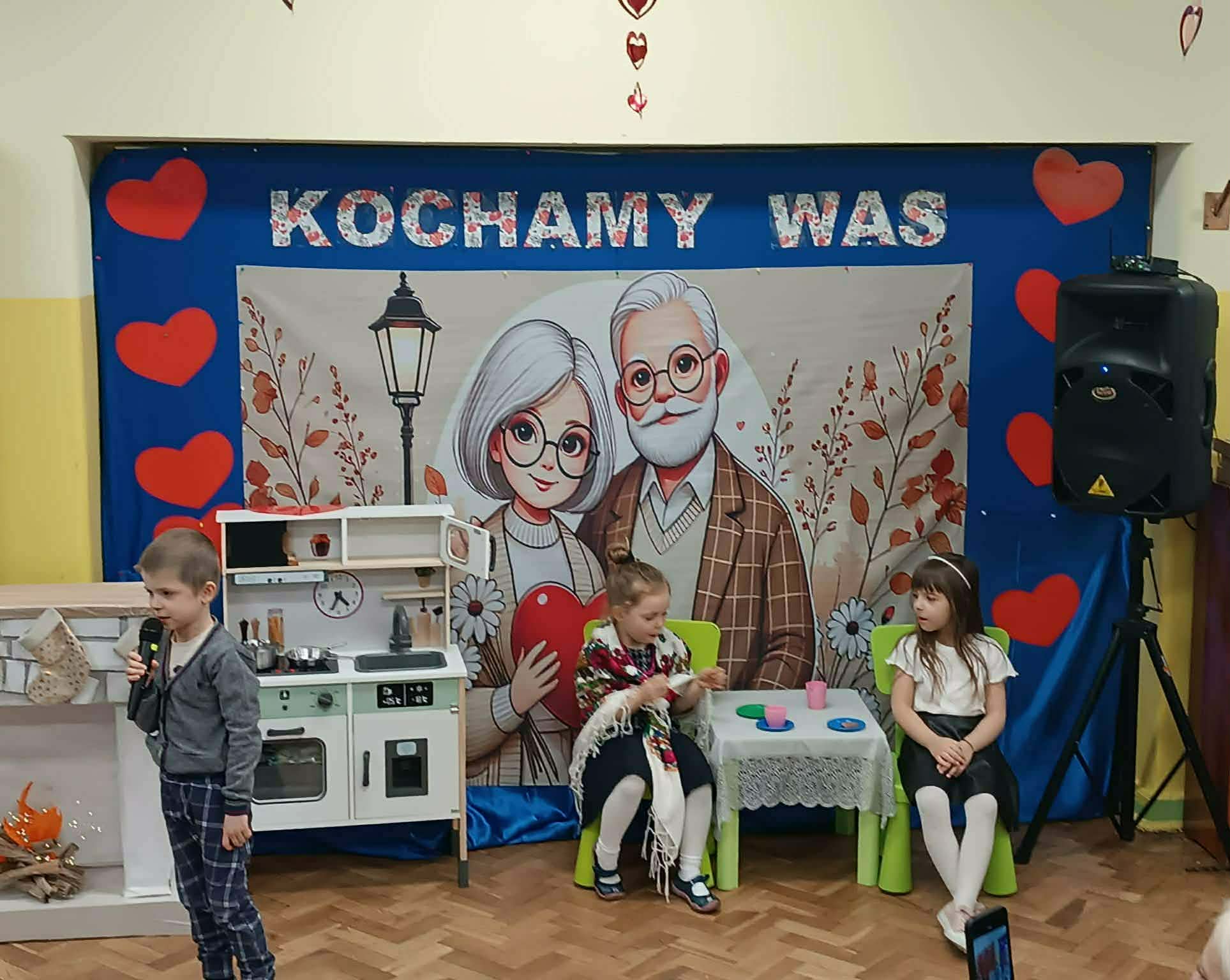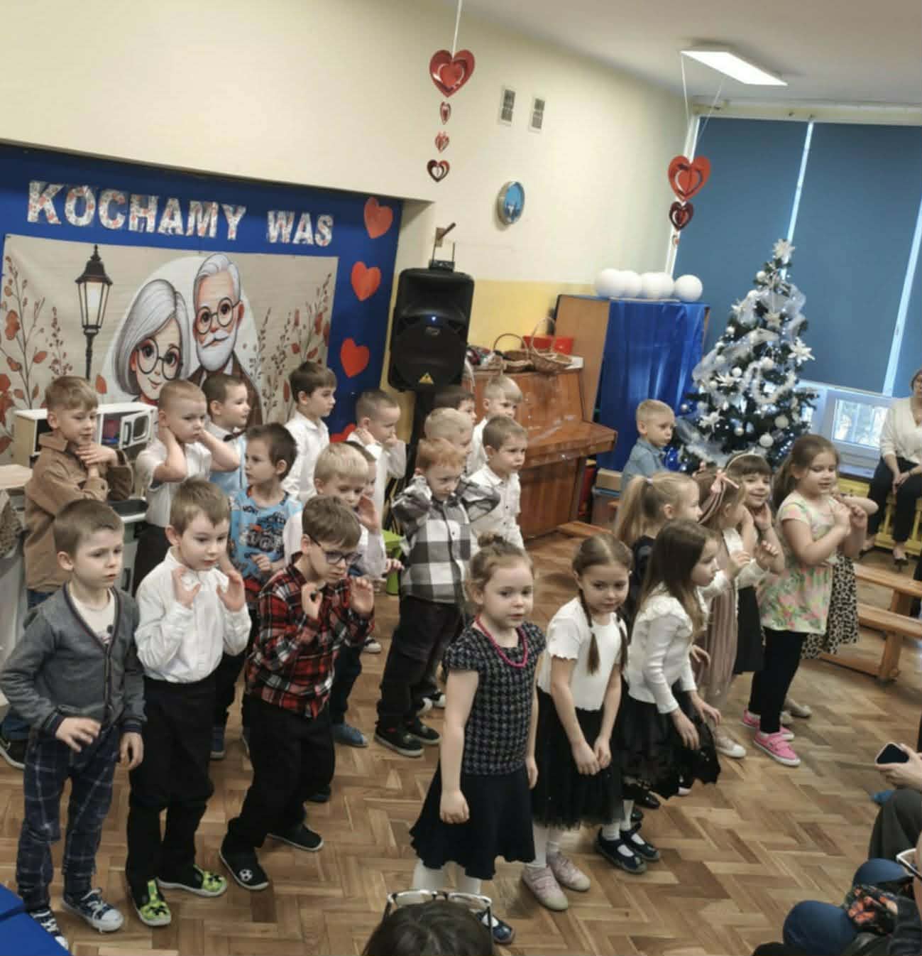 Dzień Babci i Dziadka był wyjątkowym i pełnym wzruszeń wydarzeniem. Dzieci z radością powitały swoich ukochanych gości, prezentując przygotowane występy artystyczne – wierszyki, piosenki oraz tańce. Mali artyści włożyli w swoje występy całe serce, a na twarzach Babć i Dziadków nie brakowało uśmiechów i łez wzruszenia. Po części artystycznej dzieci wręczyły własnoręcznie wykonane upominki, składając serdeczne życzenia. Spotkanie zakończyło się wspólnym poczęstunkiem