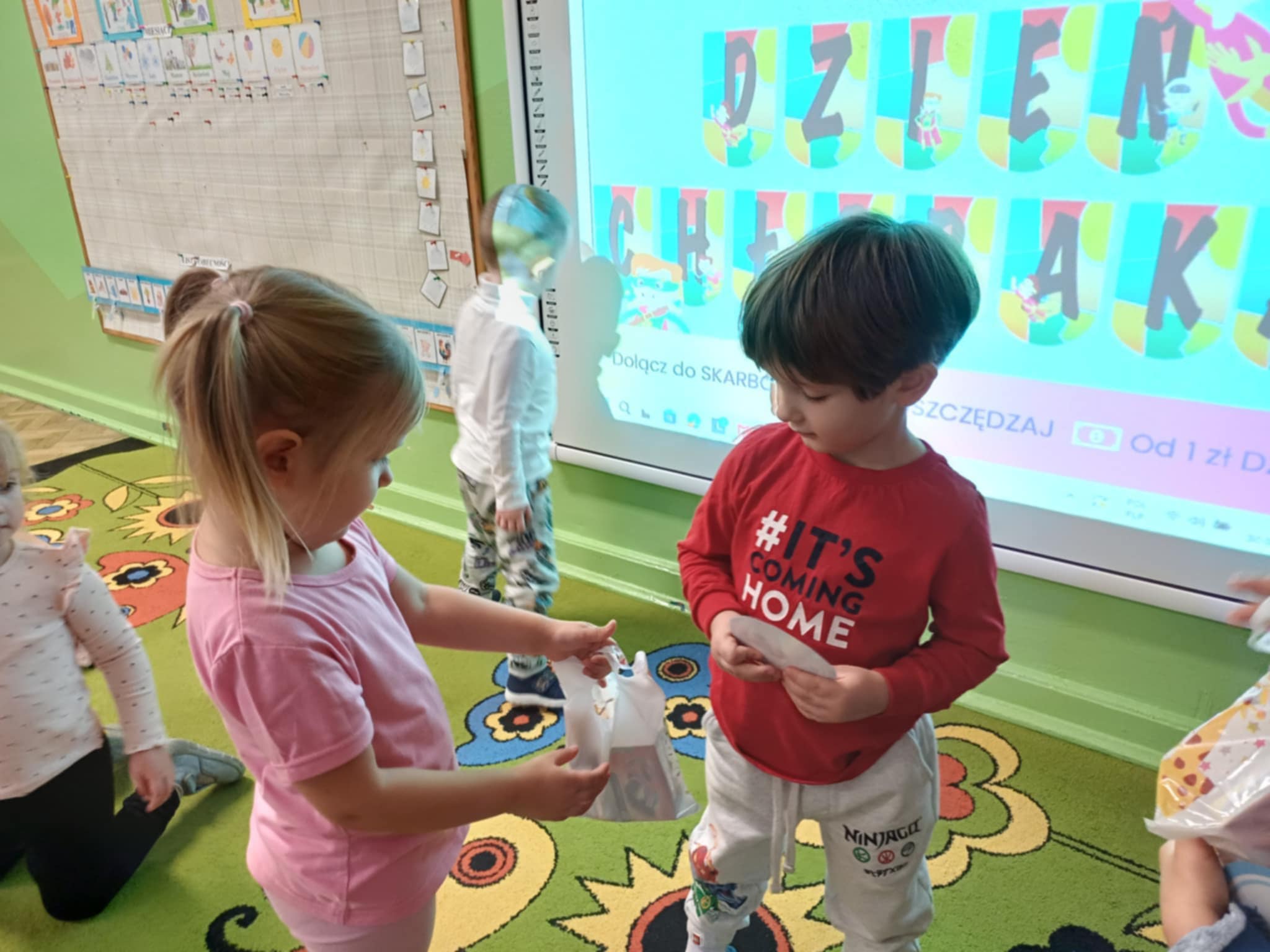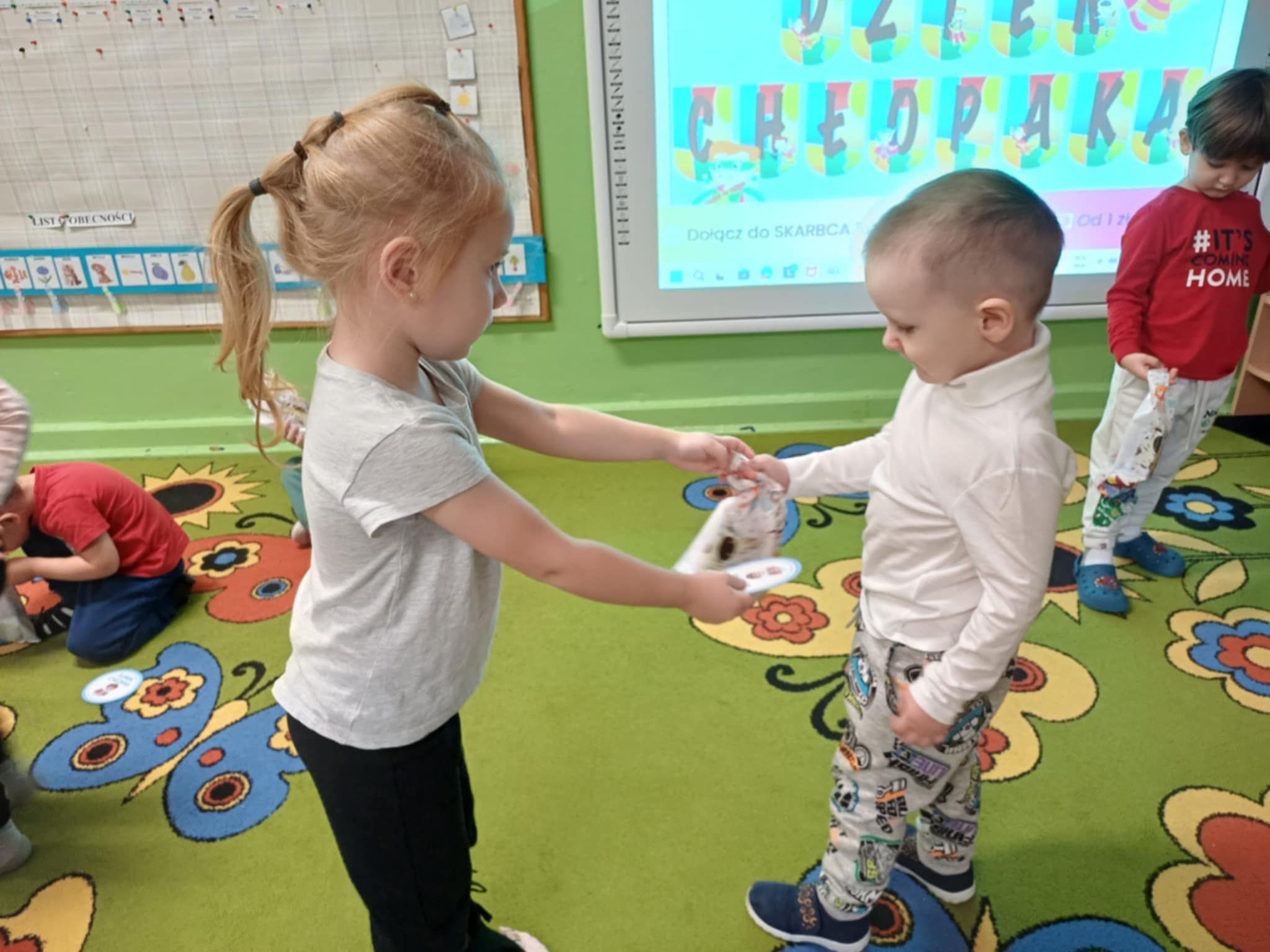 To był wyjątkowy dzień pełen radości i uśmiechów! Nasi mali chłopcy zostali obdarowani drobnymi upominkami i mocą serdecznych życzeń od swoich koleżanek oraz pań nauczycielek. Dzieci uczestniczyły w wesołych zabawach integracyjnych i tańcach.