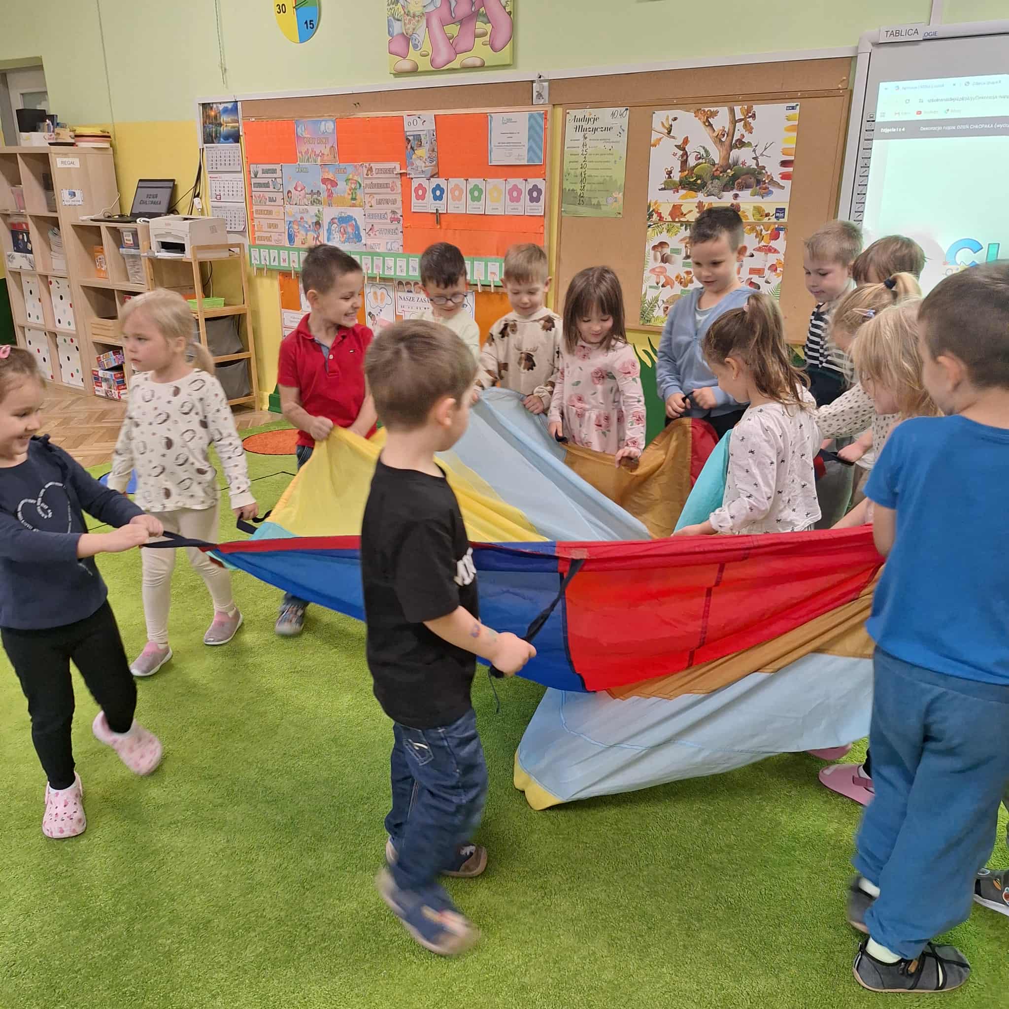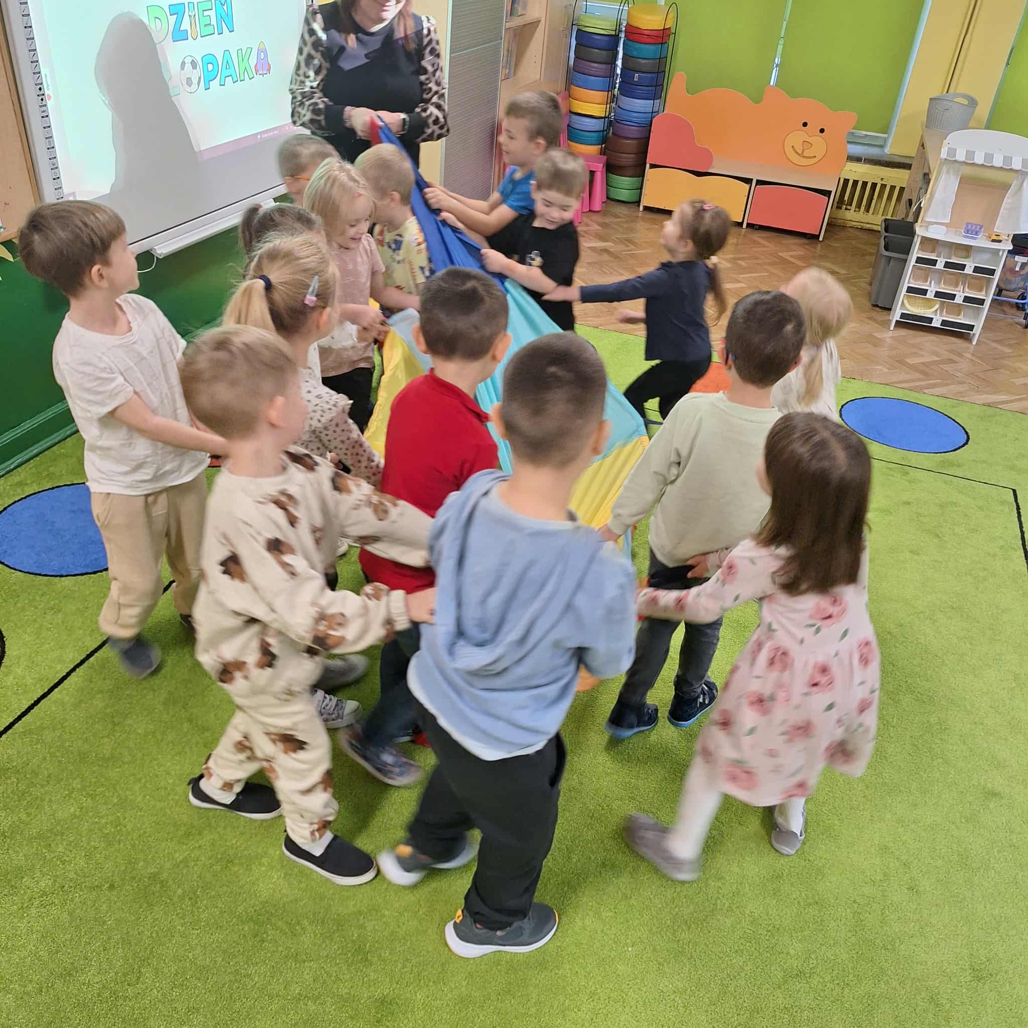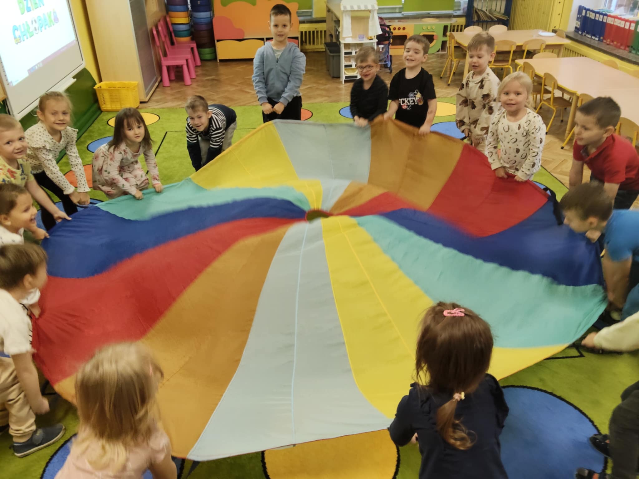 Dzień chłopaka w naszej grupie to dzień pełen wrażeń i uśmiechów. Bawiliśmy się chustą animacyjną, balonami. Dziewczynki i Panie złożyły chłopcom życzenia i rozdały upominki.