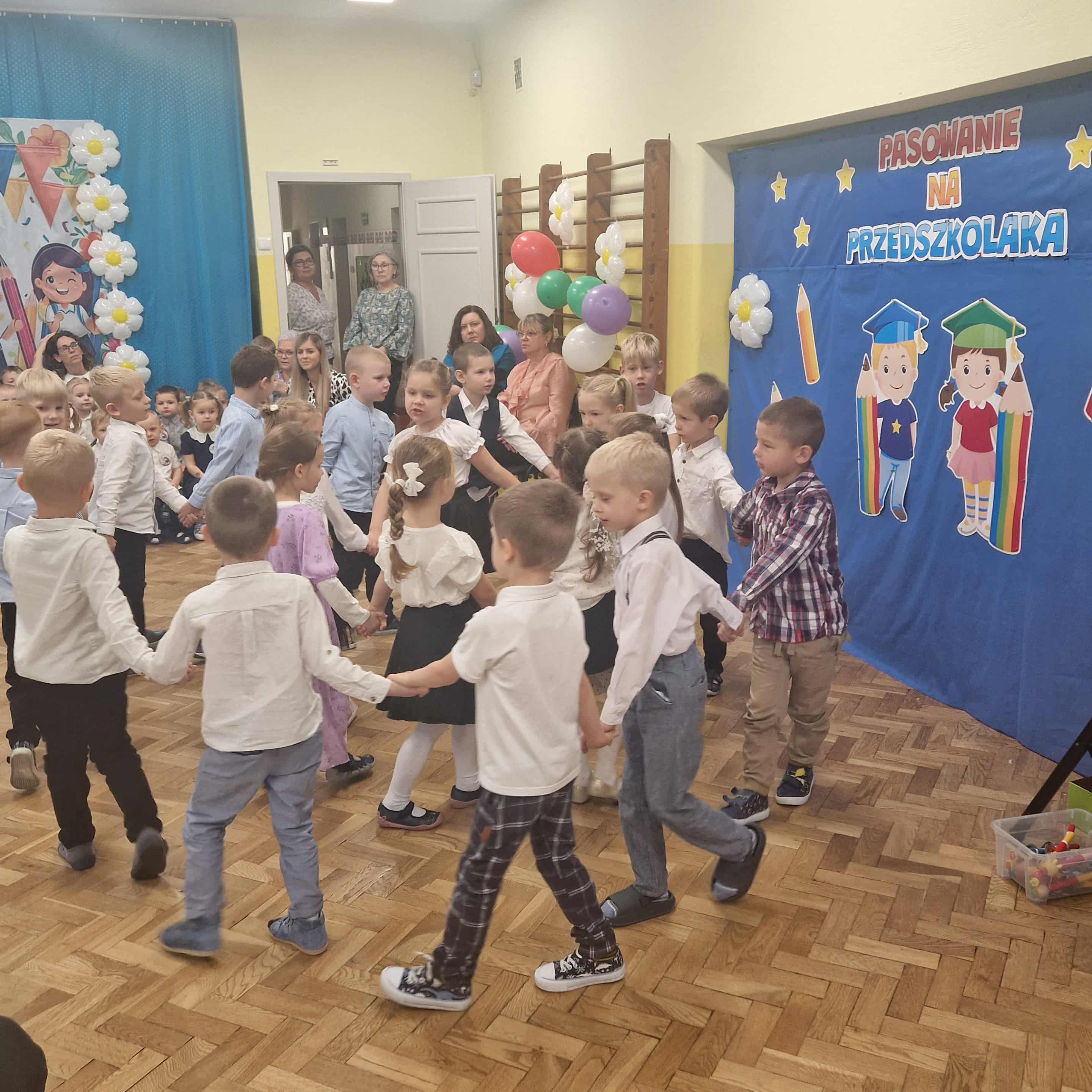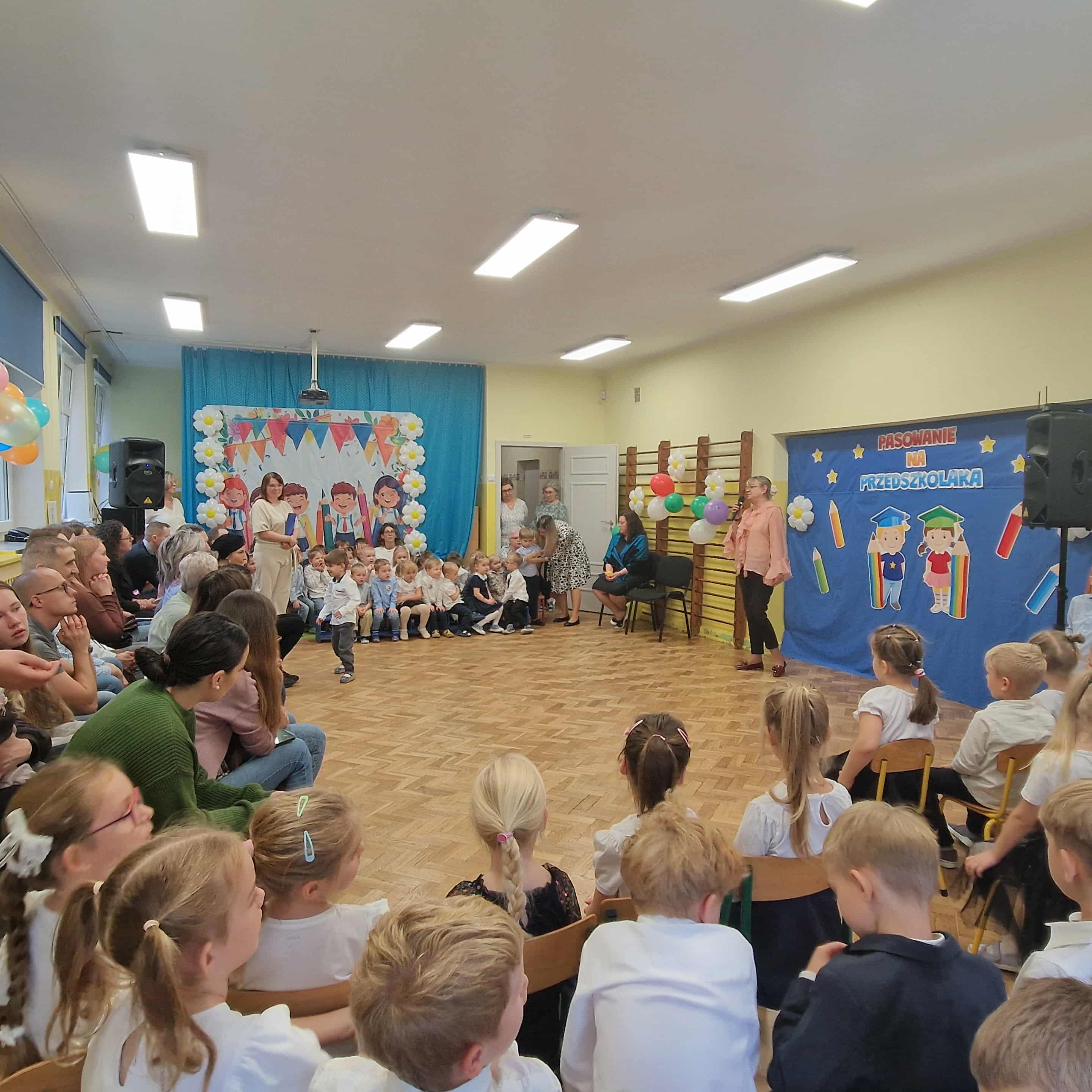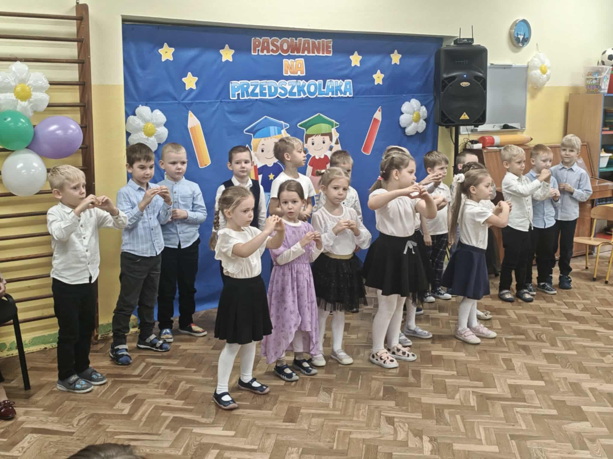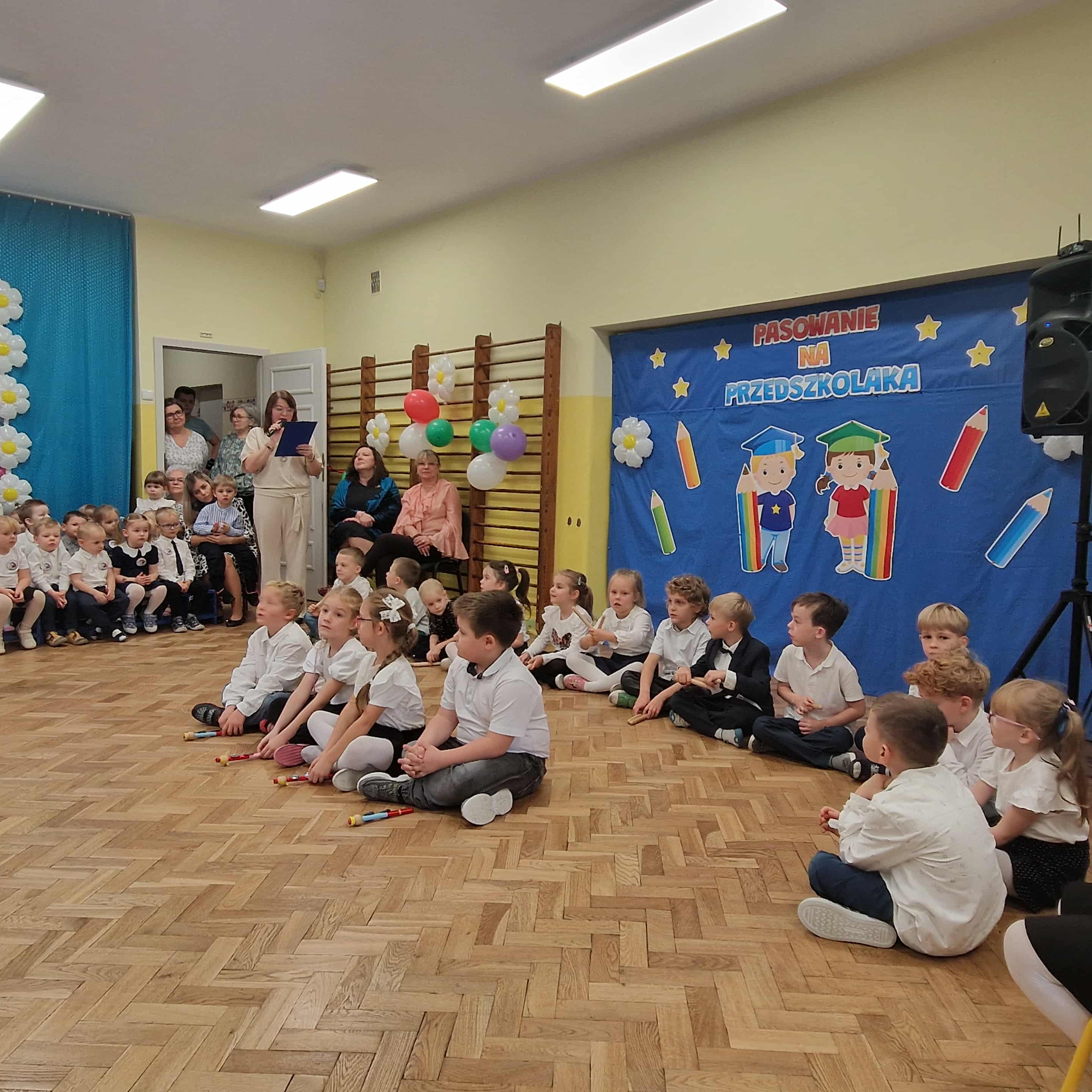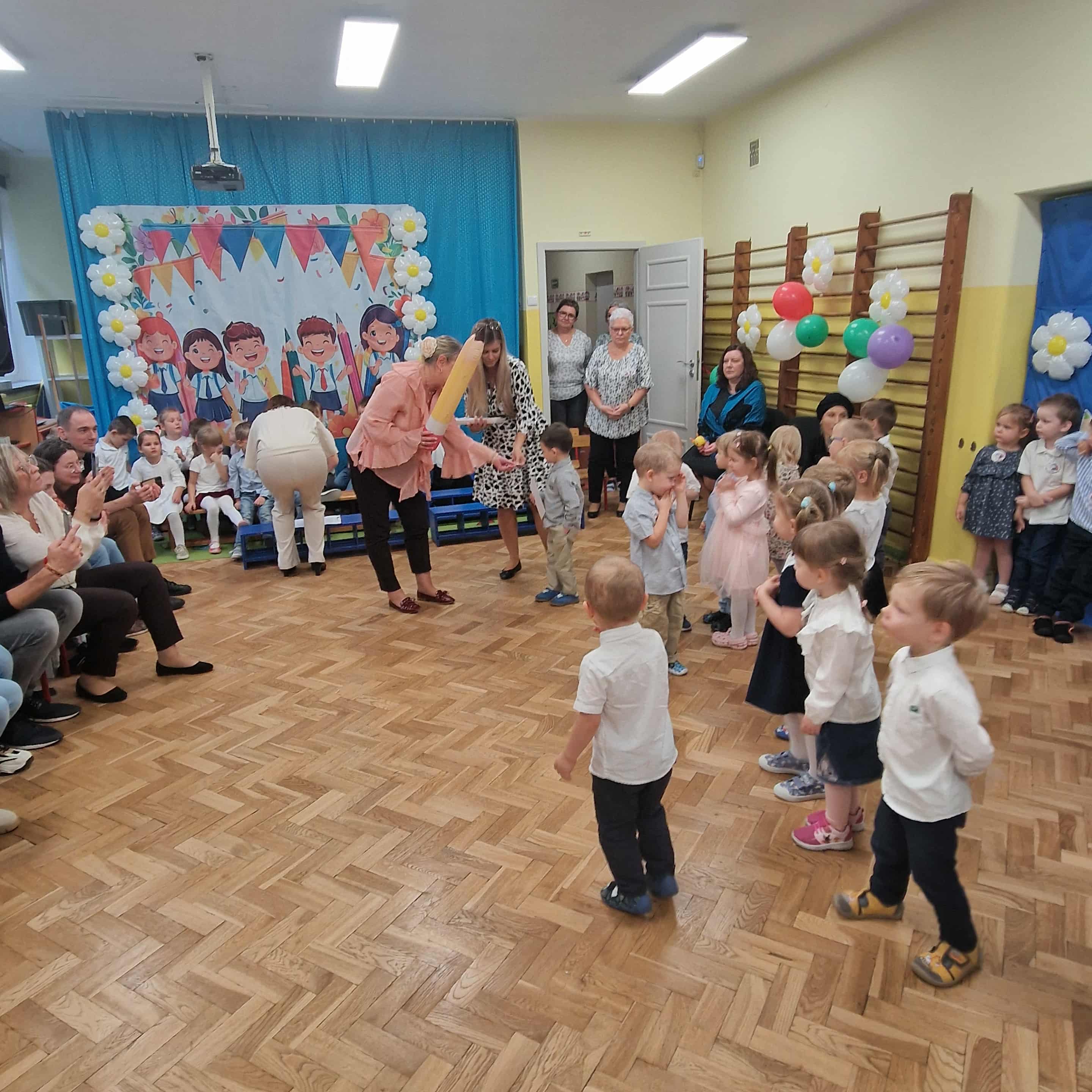 14.10.2025r w naszym przedszkolu odbyła się uroczystość z okazji Dnia Edukacji Narodowej połączona z Pasowaniem na Przedszkolaka. To wyjątkowe święto dotyczy wszystkich pracowników oświaty, o którym nie zapomniały nasze kochane przedszkolaki. Podziękowały swoim Paniom i wszystkim pracownikom przedszkola za codzienną troskę, serce włożone w ich nauczanie , wychowanie i opiekę. W prezencie śpiewały, tańczyły, grały na instrumentach oraz recytowały wiersze, a także wręczały drobne upominki. Po części artystycznej Pani Dyrektor przystąpiła do uroczystego pasowania na przedszkolaka nowo przyjętych w tym roku dzieci ,za pomocą magicznego ołówka. Dzieci otrzymały dyplomy, przypinki z logo naszego przedszkola oraz słodki poczęstunek.