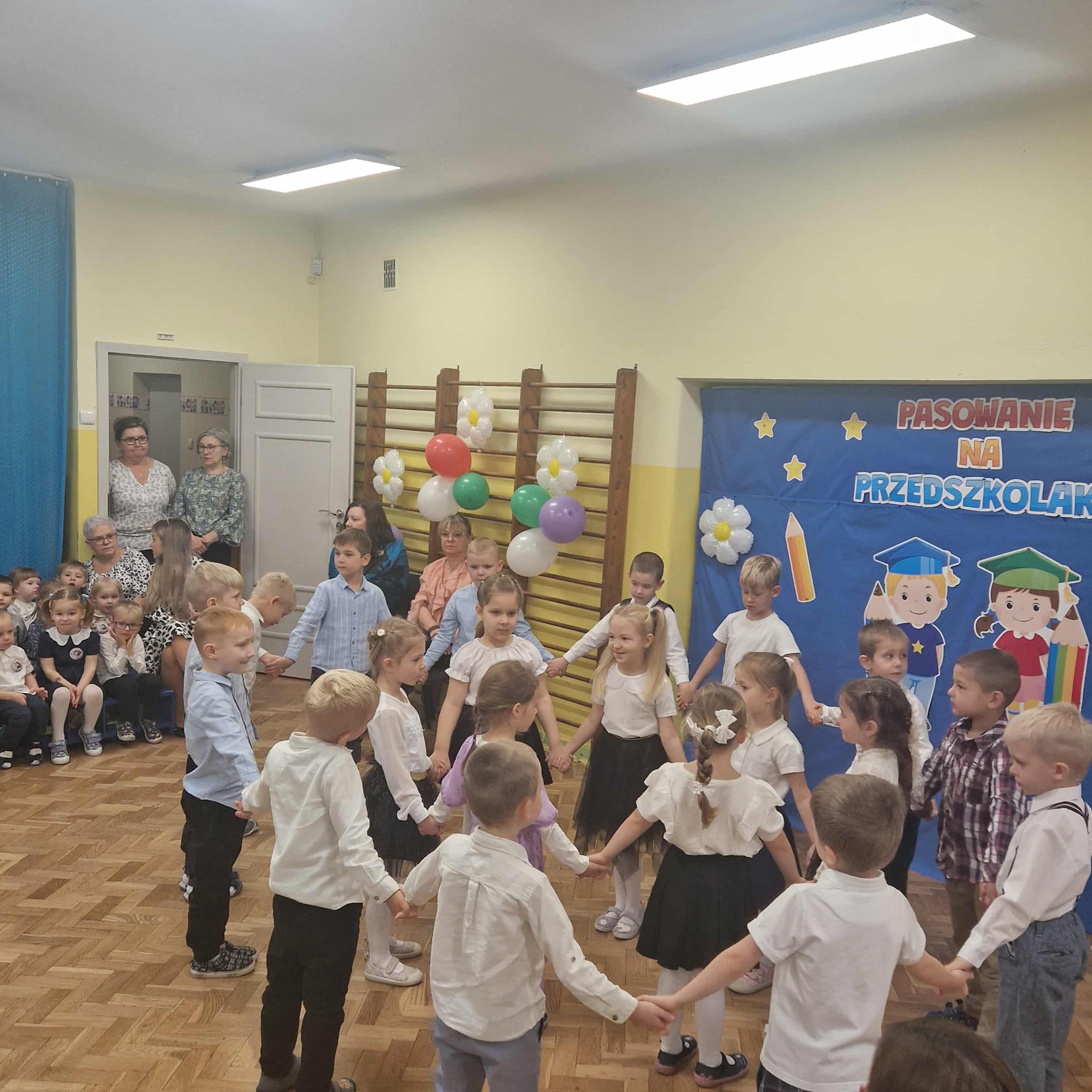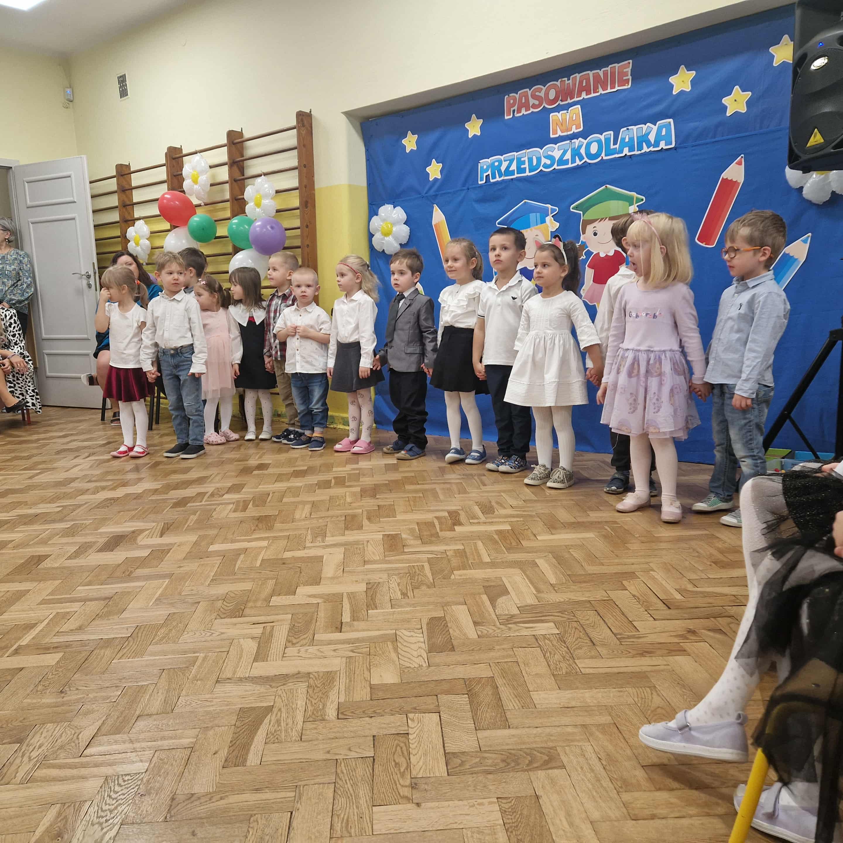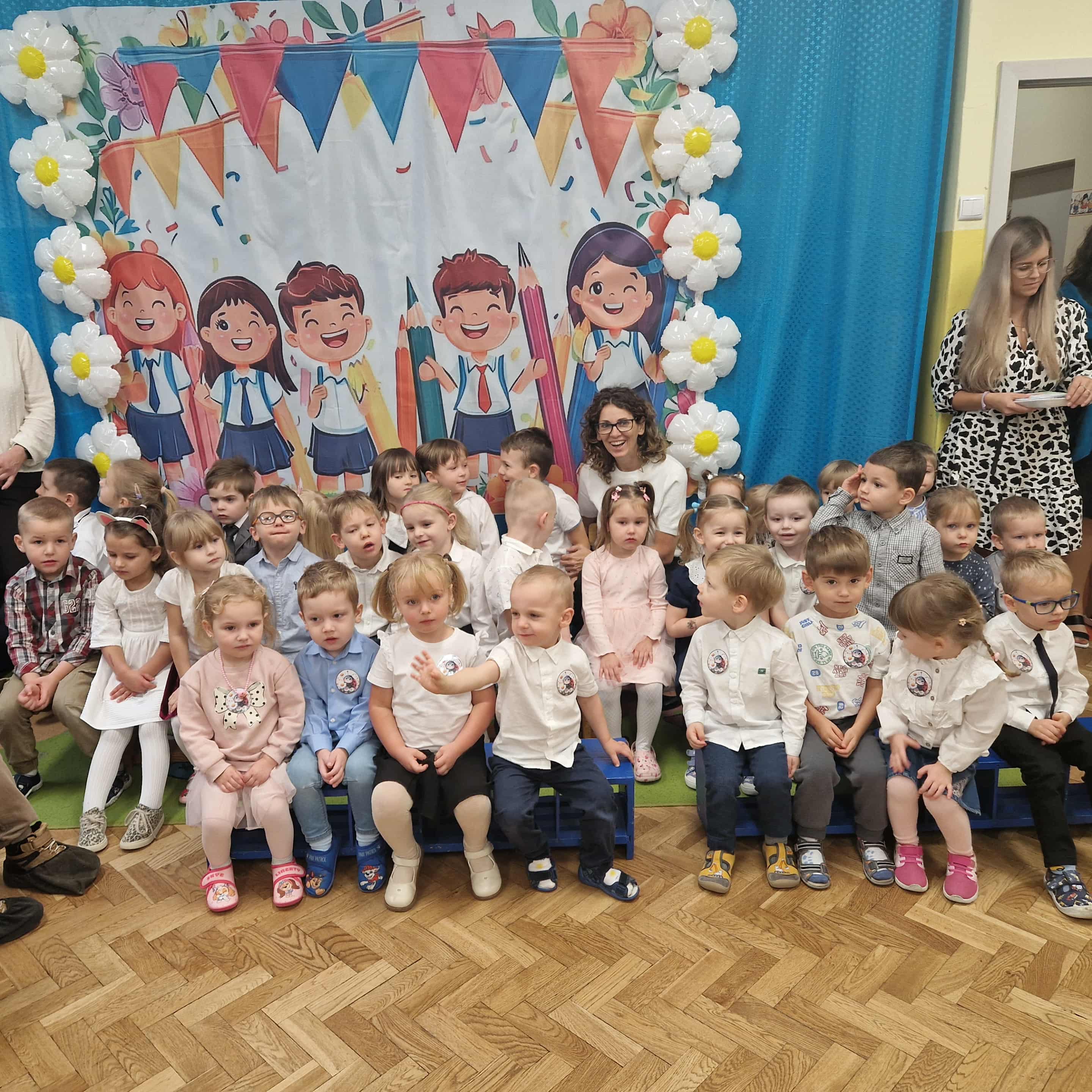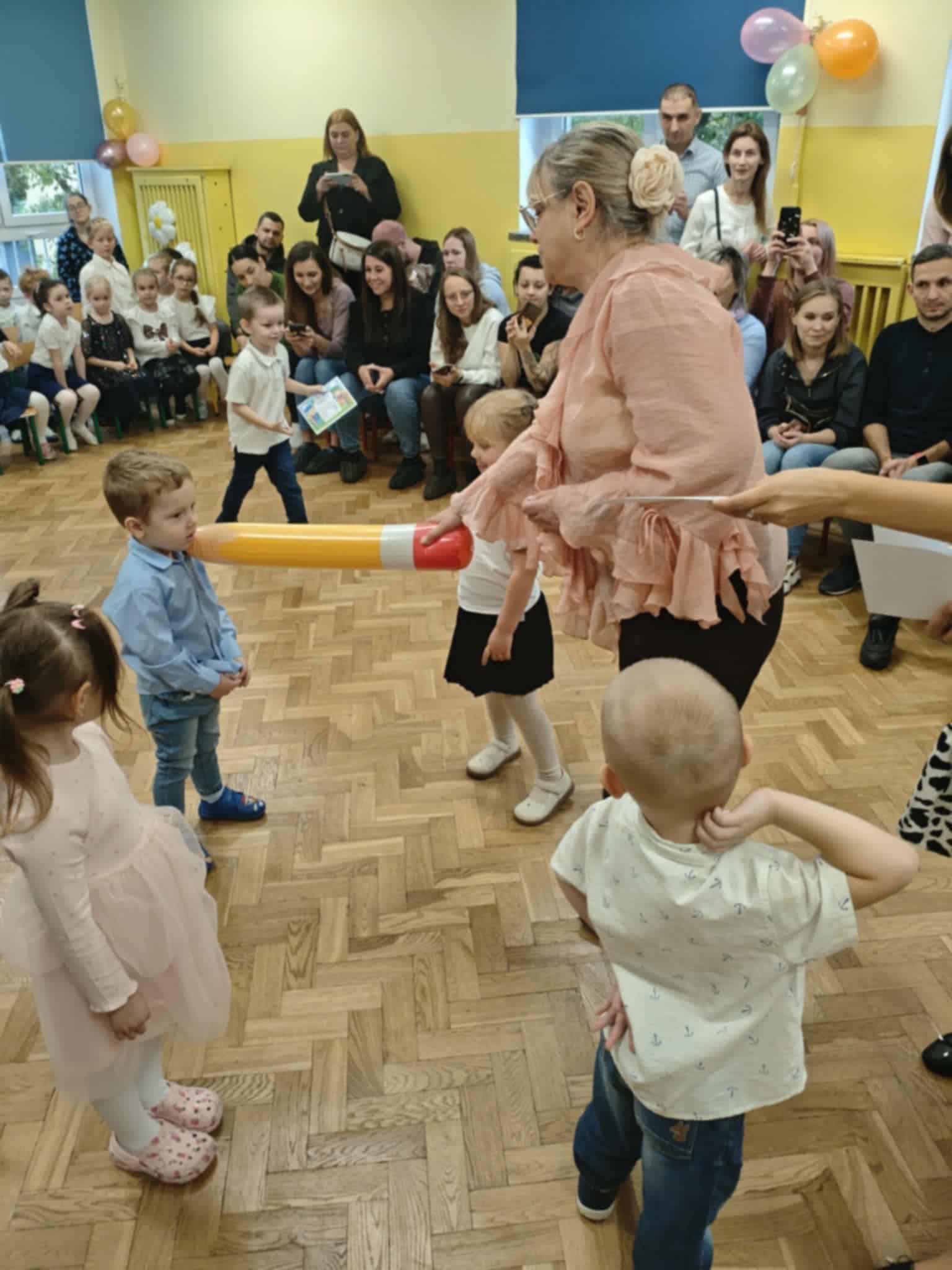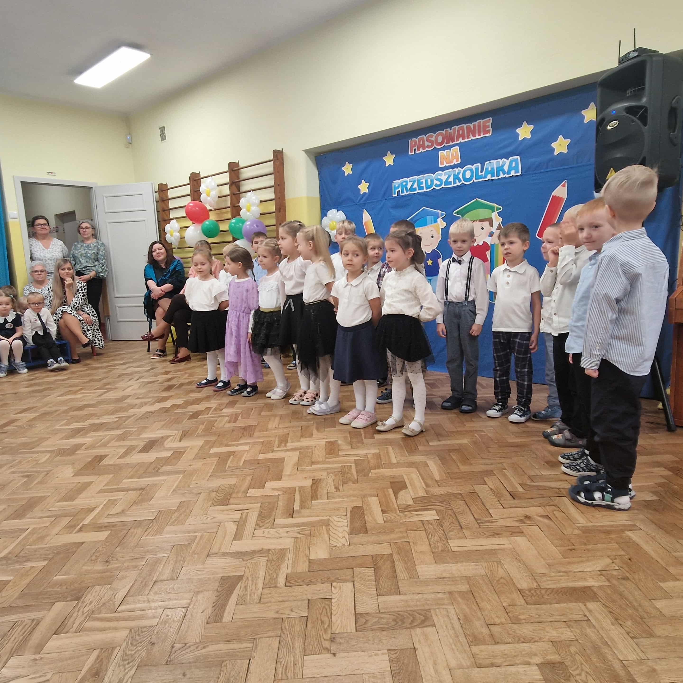 14.10.2025r w naszym przedszkolu odbyła się uroczystość z okazji Dnia Edukacji Narodowej połączona z Pasowaniem na Przedszkolaka. To wyjątkowe święto dotyczy wszystkich pracowników oświaty, o którym nie zapomniały nasze kochane przedszkolaki. Podziękowały swoim Paniom i wszystkim pracownikom przedszkola za codzienną troskę, serce włożone w ich nauczanie , wychowanie i opiekę. W prezencie śpiewały, tańczyły, grały na instrumentach oraz recytowały wiersze, a także wręczały drobne upominki. Po części artystycznej Pani Dyrektor przystąpiła do uroczystego pasowania na przedszkolaka nowo przyjętych w tym roku dzieci ,za pomocą magicznego ołówka. Dzieci otrzymały dyplomy, przypinki z logo naszego przedszkola oraz słodki poczęstunek.