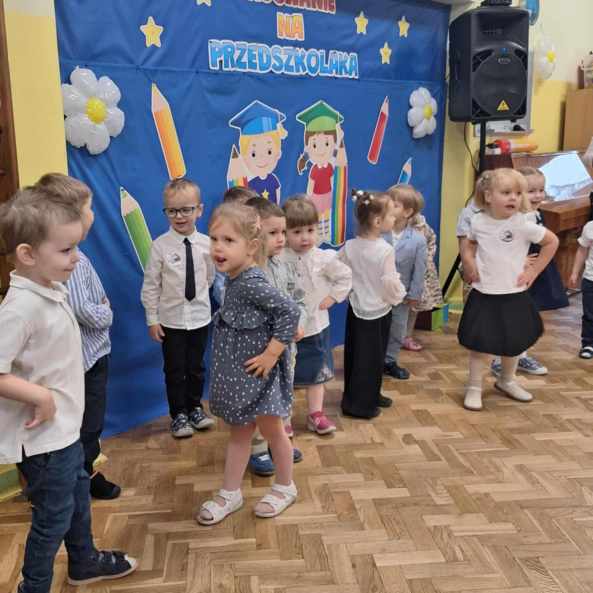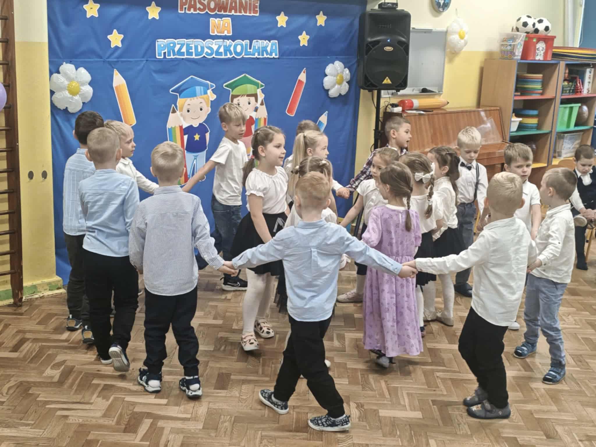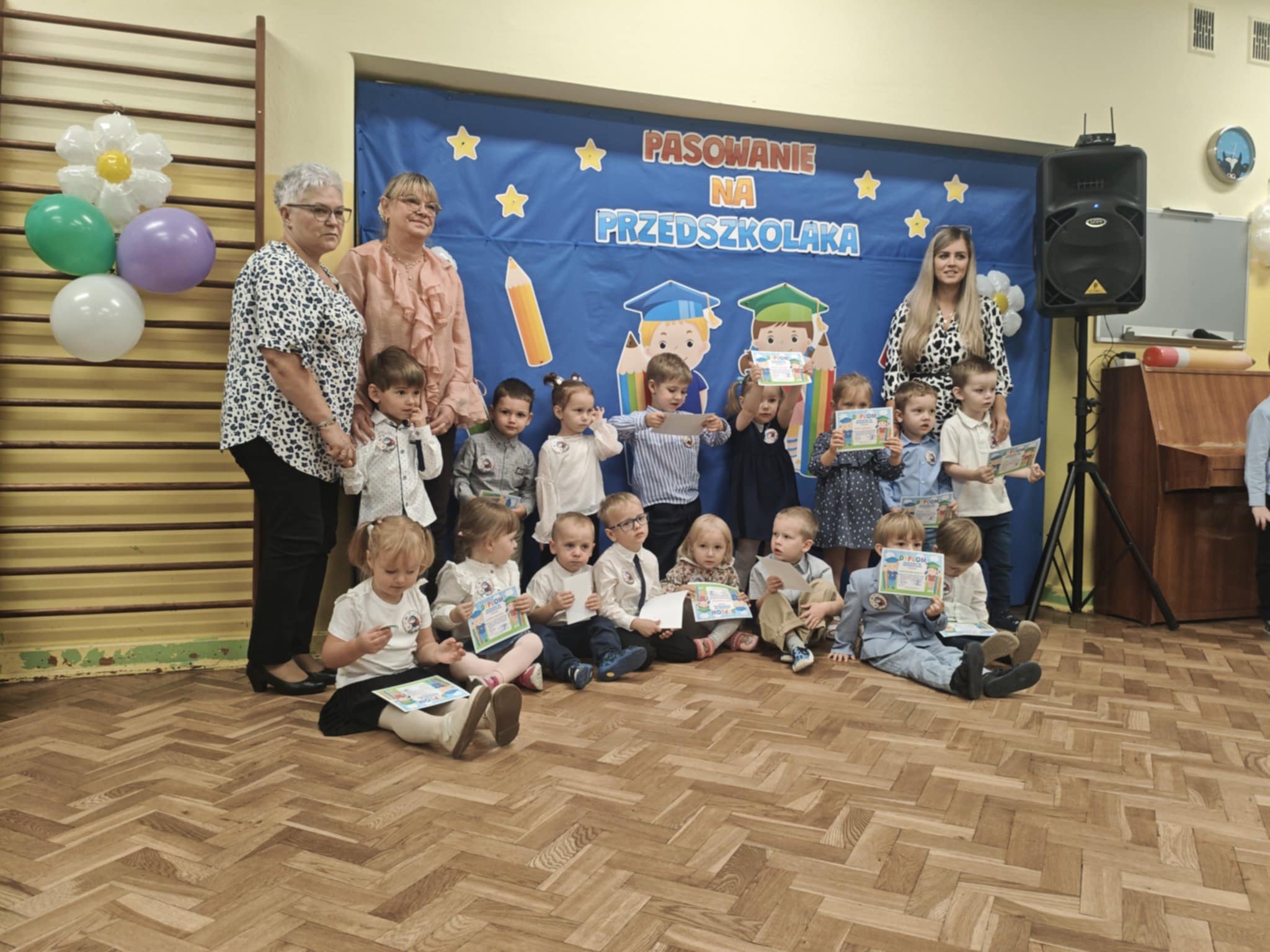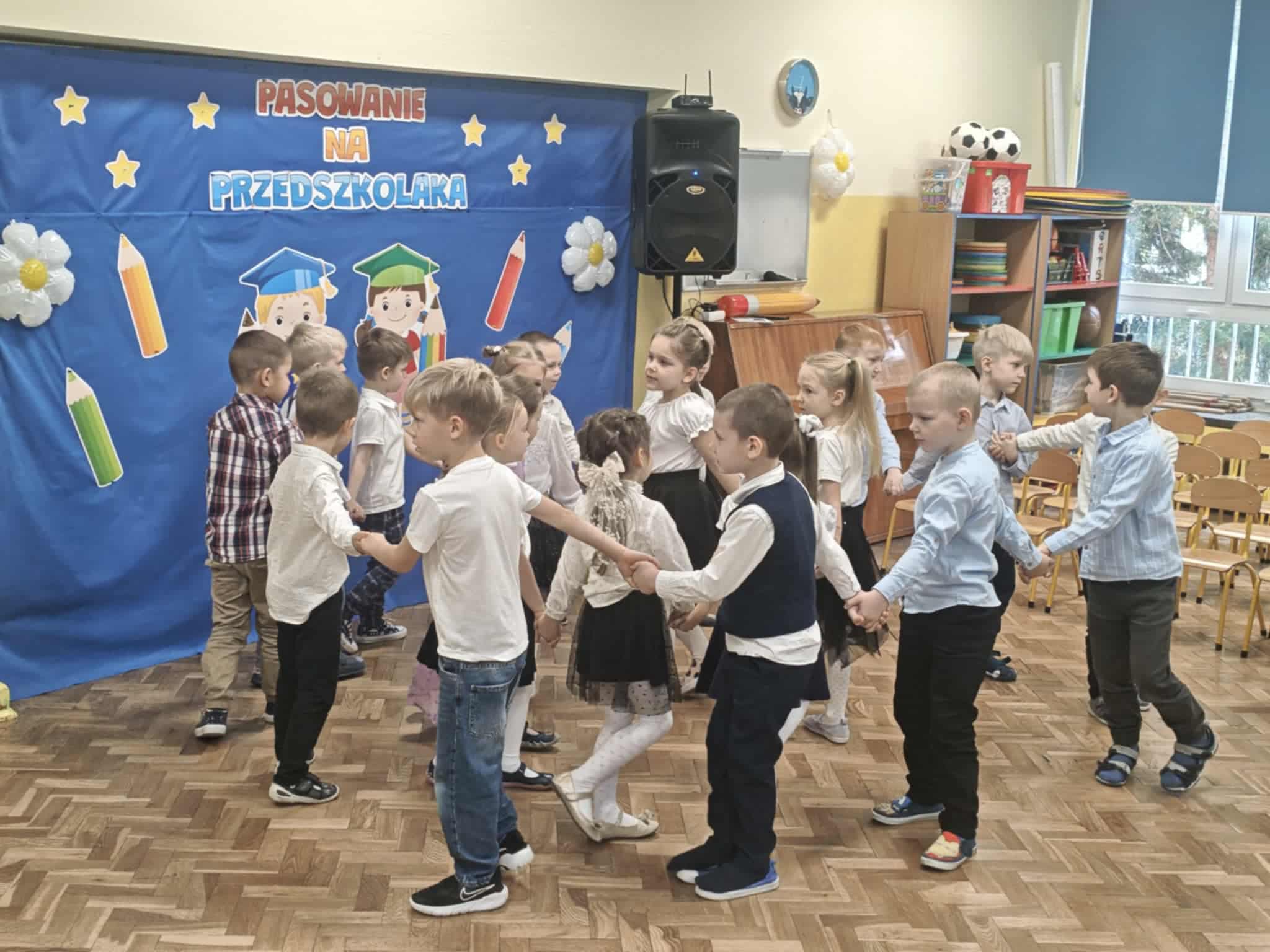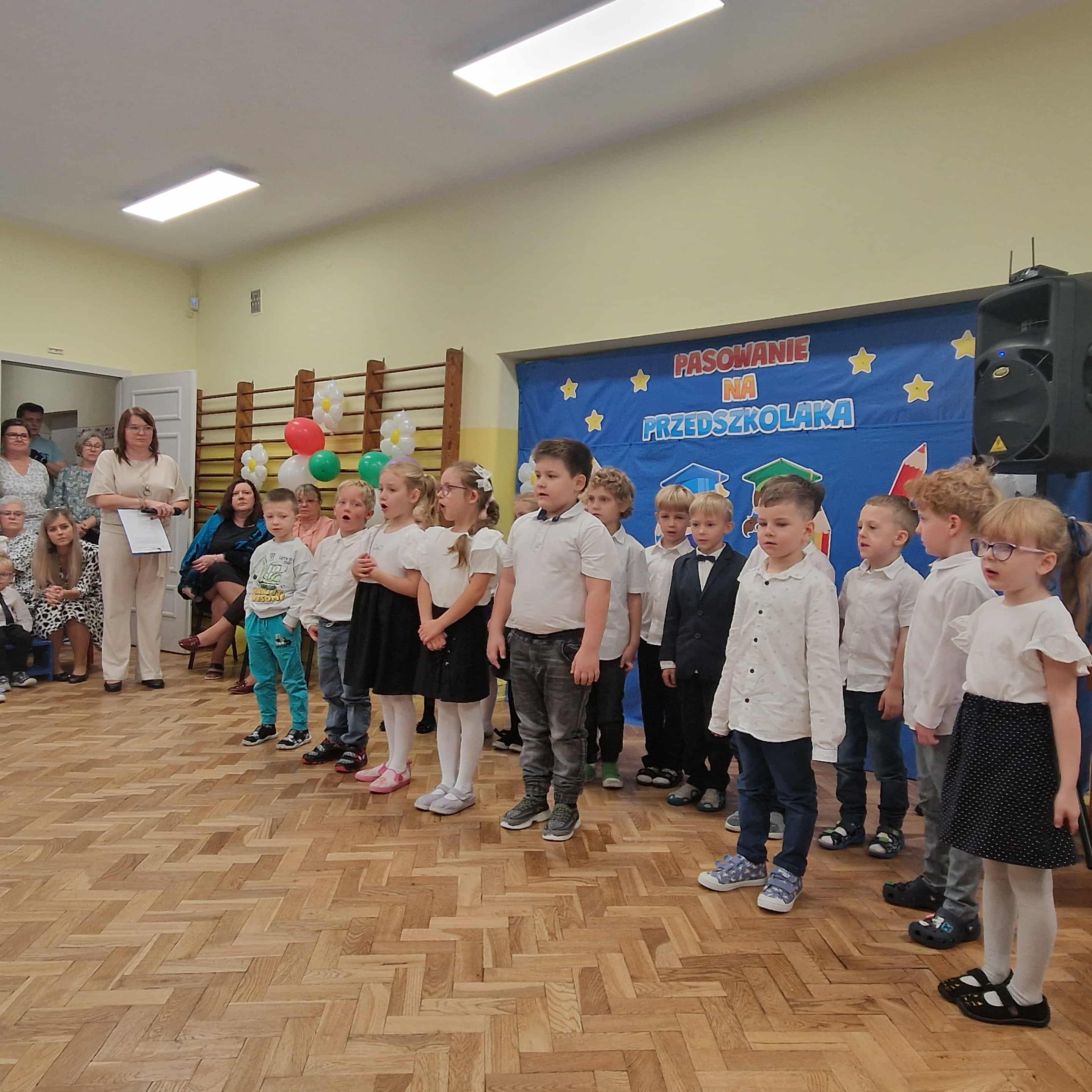 14.10.2025r w naszym przedszkolu odbyła się uroczystość z okazji Dnia Edukacji Narodowej połączona z Pasowaniem na Przedszkolaka. To wyjątkowe święto dotyczy wszystkich pracowników oświaty, o którym nie zapomniały nasze kochane przedszkolaki. Podziękowały swoim Paniom i wszystkim pracownikom przedszkola za codzienną troskę, serce włożone w ich nauczanie , wychowanie i opiekę. W prezencie śpiewały, tańczyły, grały na instrumentach oraz recytowały wiersze, a także wręczały drobne upominki. Po części artystycznej Pani Dyrektor przystąpiła do uroczystego pasowania na przedszkolaka nowo przyjętych w tym roku dzieci ,za pomocą magicznego ołówka. Dzieci otrzymały dyplomy, przypinki z logo naszego przedszkola oraz słodki poczęstunek.