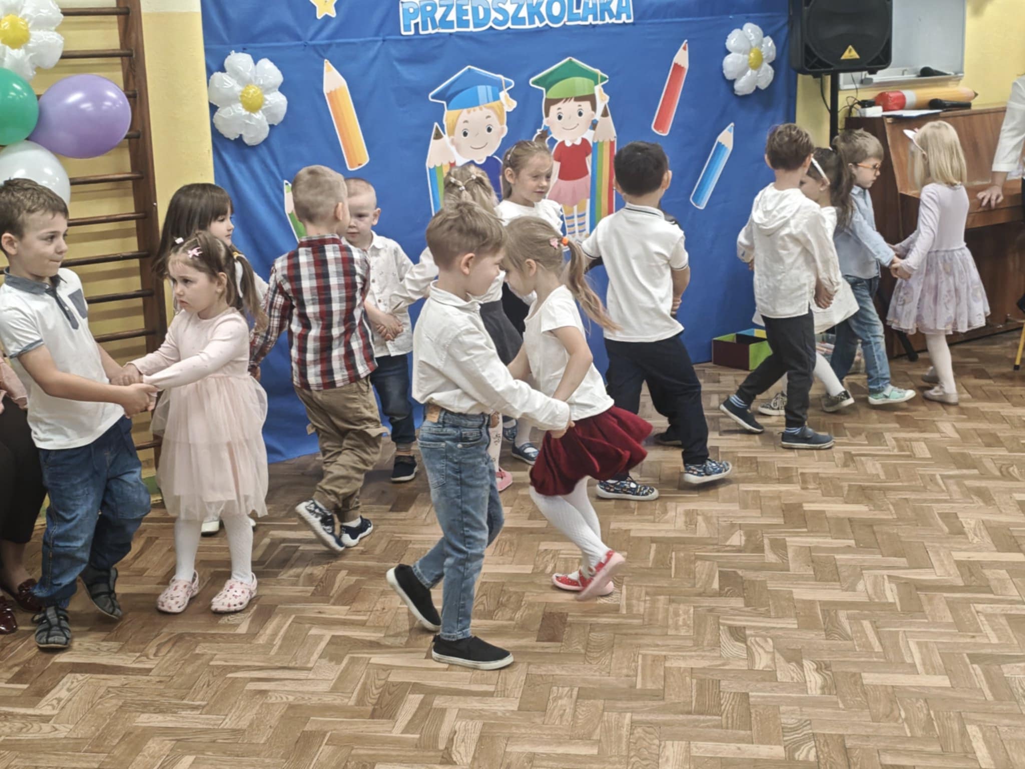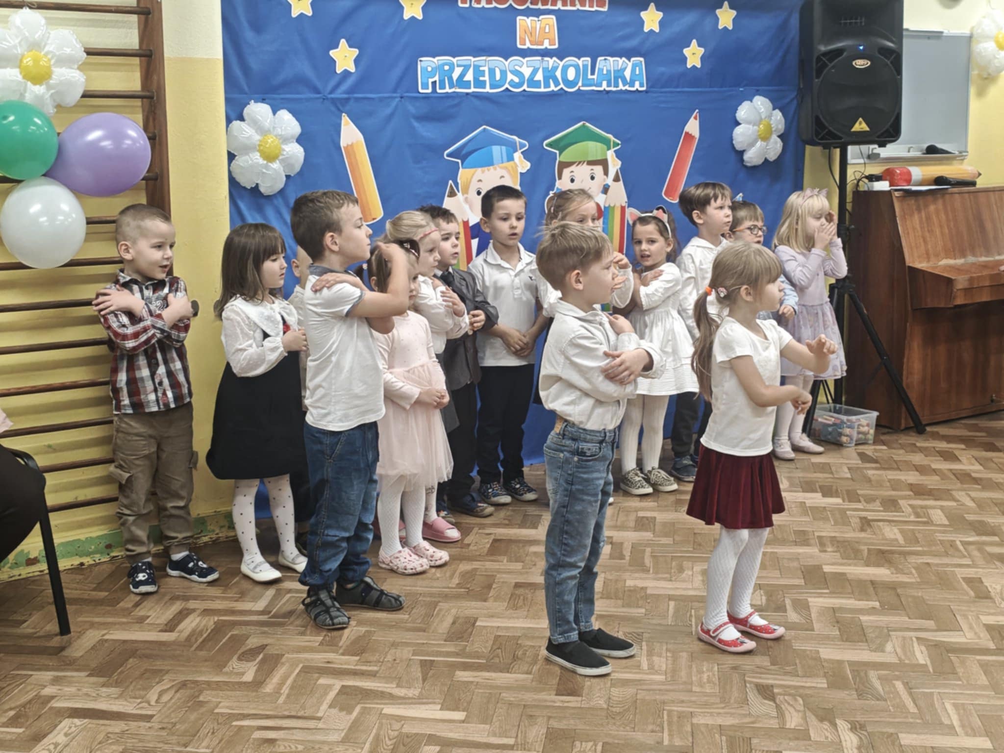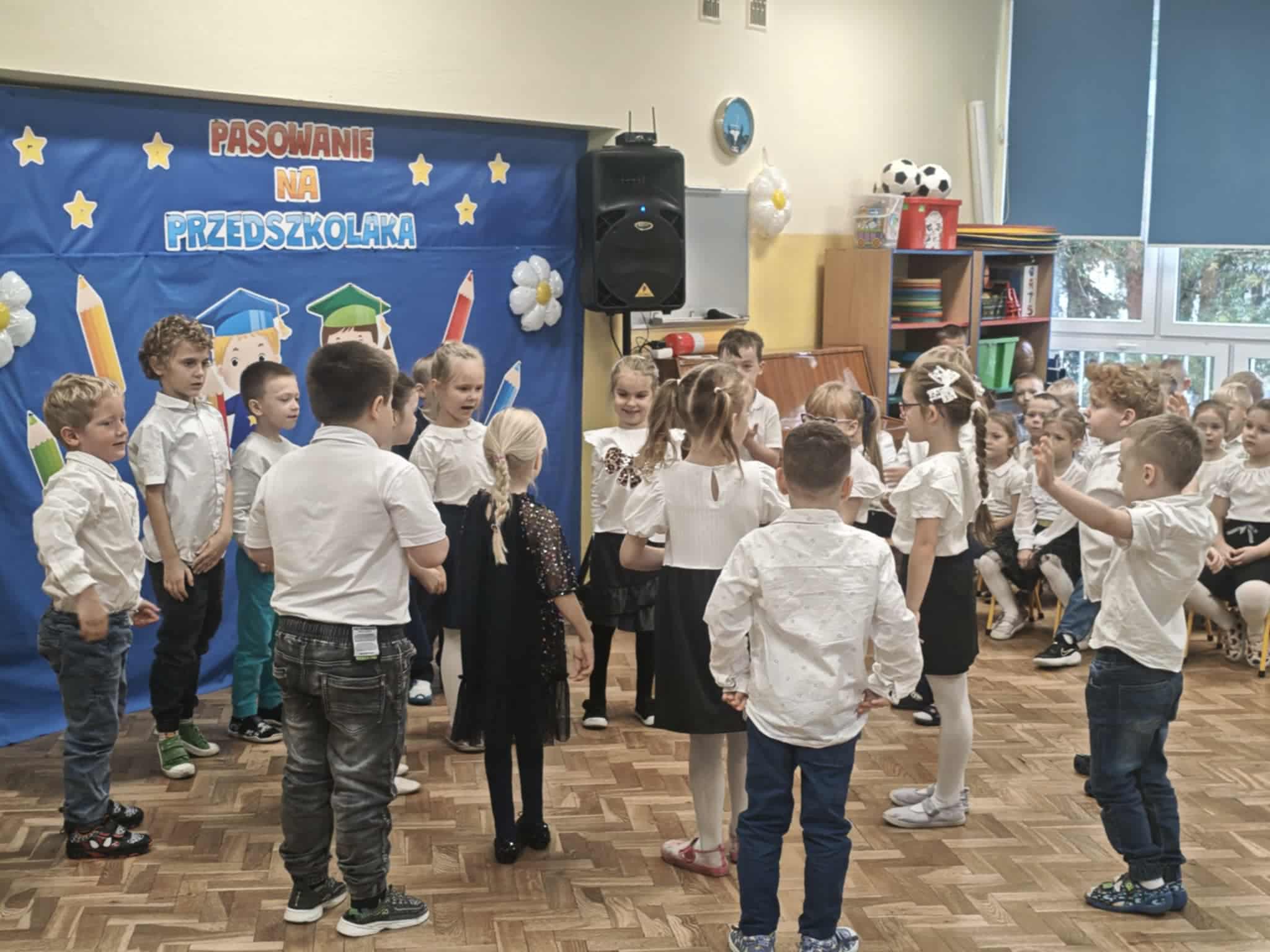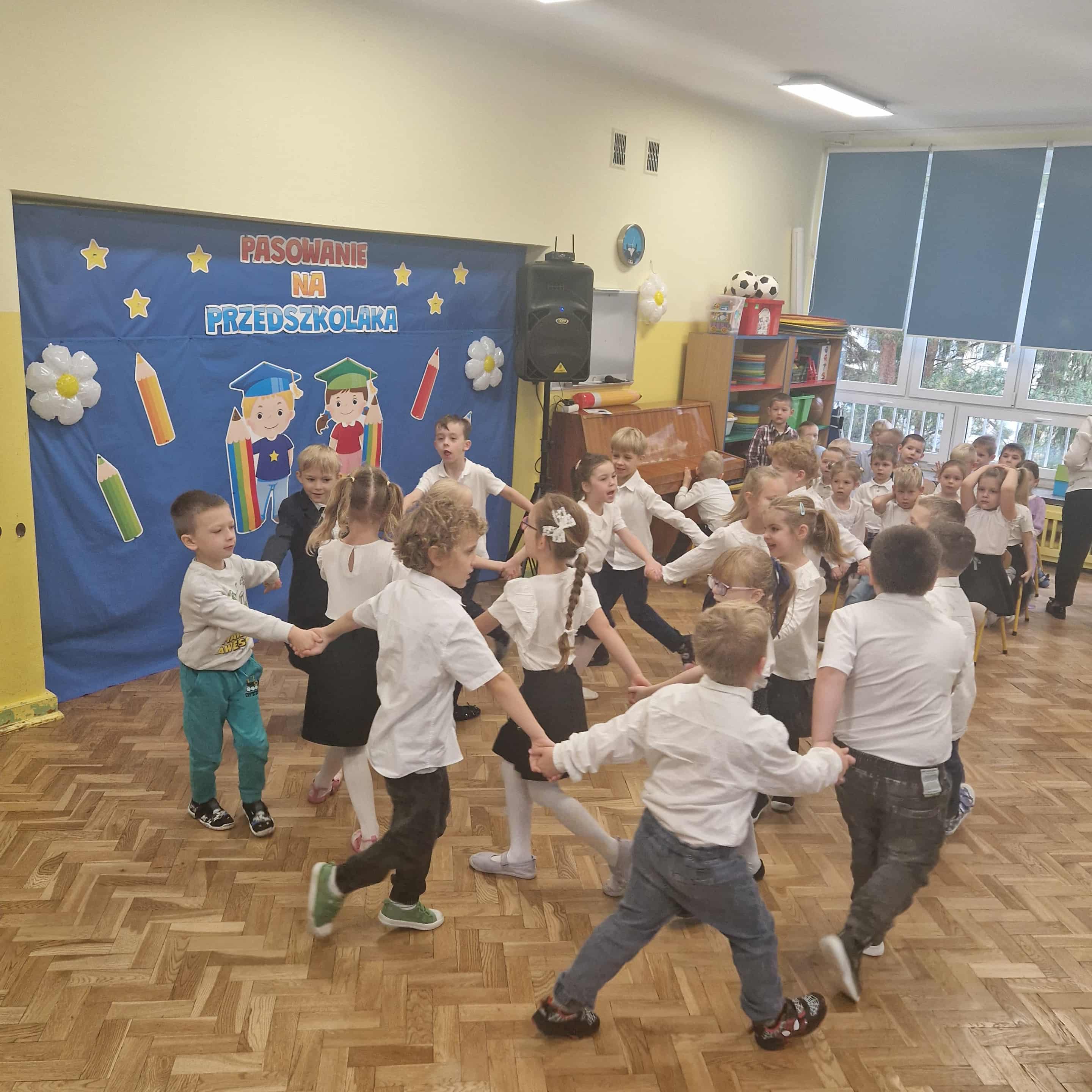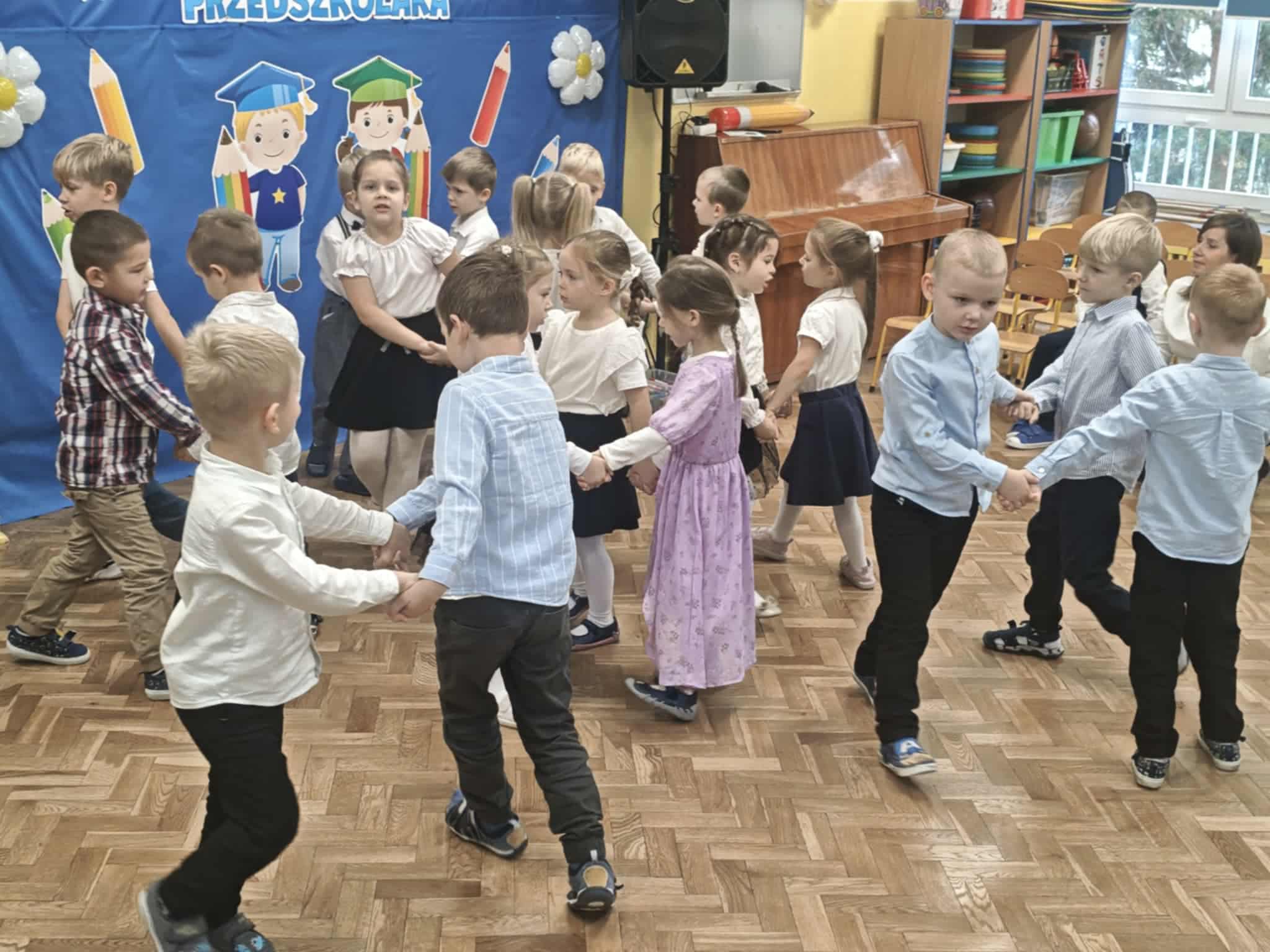 14.10.2025r w naszym przedszkolu odbyła się uroczystość z okazji Dnia Edukacji Narodowej połączona z Pasowaniem na Przedszkolaka. To wyjątkowe święto dotyczy wszystkich pracowników oświaty, o którym nie zapomniały nasze kochane przedszkolaki. Podziękowały swoim Paniom i wszystkim pracownikom przedszkola za codzienną troskę, serce włożone w ich nauczanie , wychowanie i opiekę. W prezencie śpiewały, tańczyły, grały na instrumentach oraz recytowały wiersze, a także wręczały drobne upominki. Po części artystycznej Pani Dyrektor przystąpiła do uroczystego pasowania na przedszkolaka nowo przyjętych w tym roku dzieci ,za pomocą magicznego ołówka. Dzieci otrzymały dyplomy, przypinki z logo naszego przedszkola oraz słodki poczęstunek.