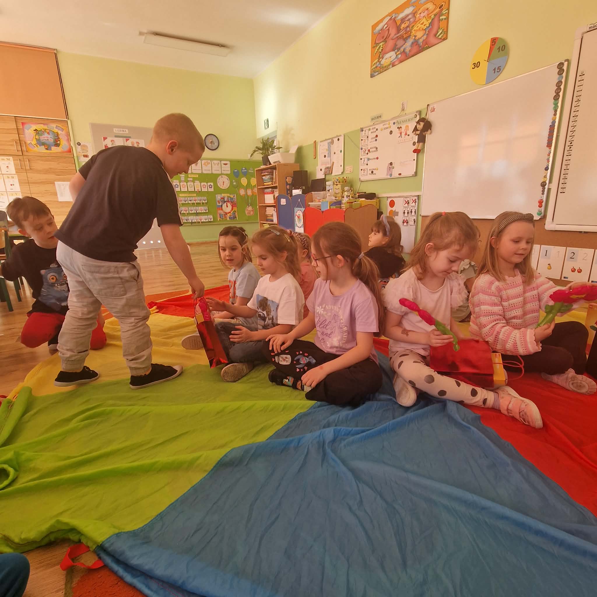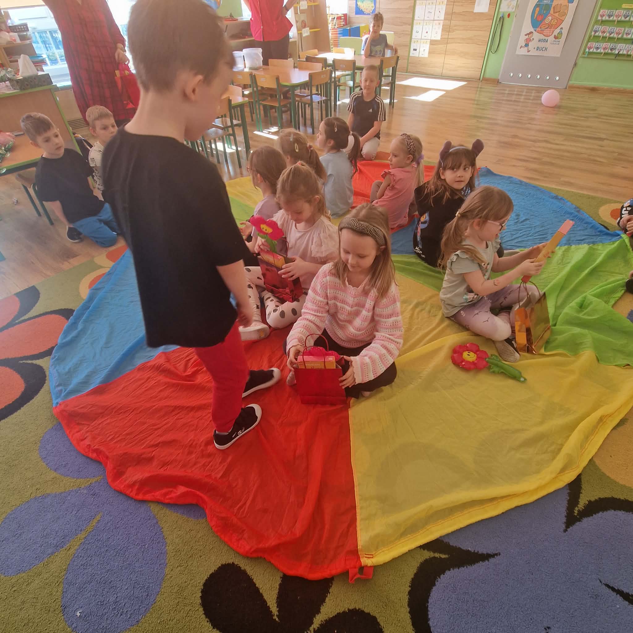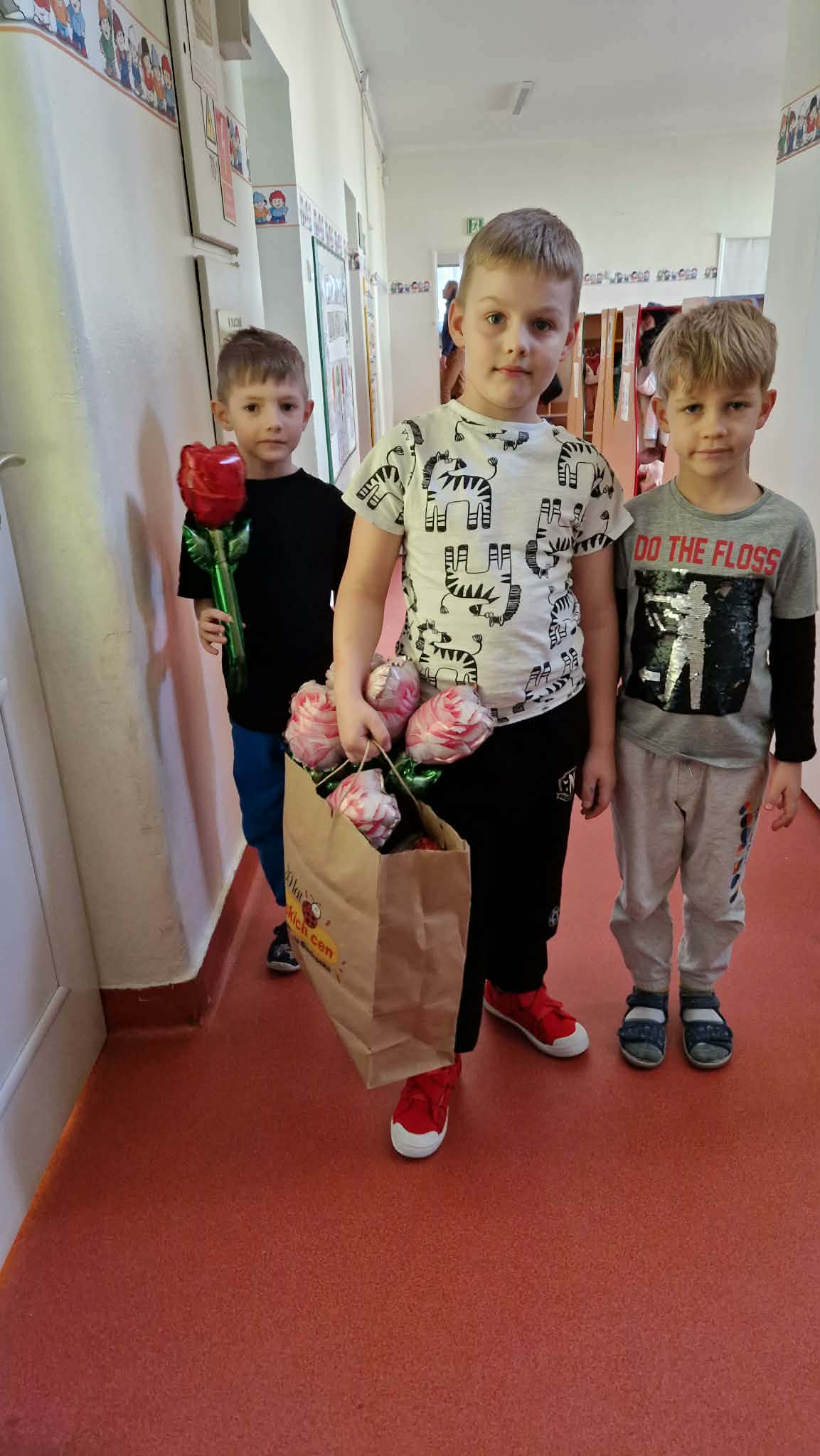 Z okazji zbliżającego się święta Dnia Kobiet chłopcy składali swoim koleżankom oraz Paniom życzenia, zaśpiewali także 100 lat, oraz wręczyli drobne upominki. Był to wyjątkowy czas, który służył nie tylko radosnej zabawie, ale także budowaniu u dzieci postaw szacunku, życzliwości i empatii. Bardzo dziękujemy rodzicom dzieci z gr 4 za zorganizowanie tego wydarzenia.