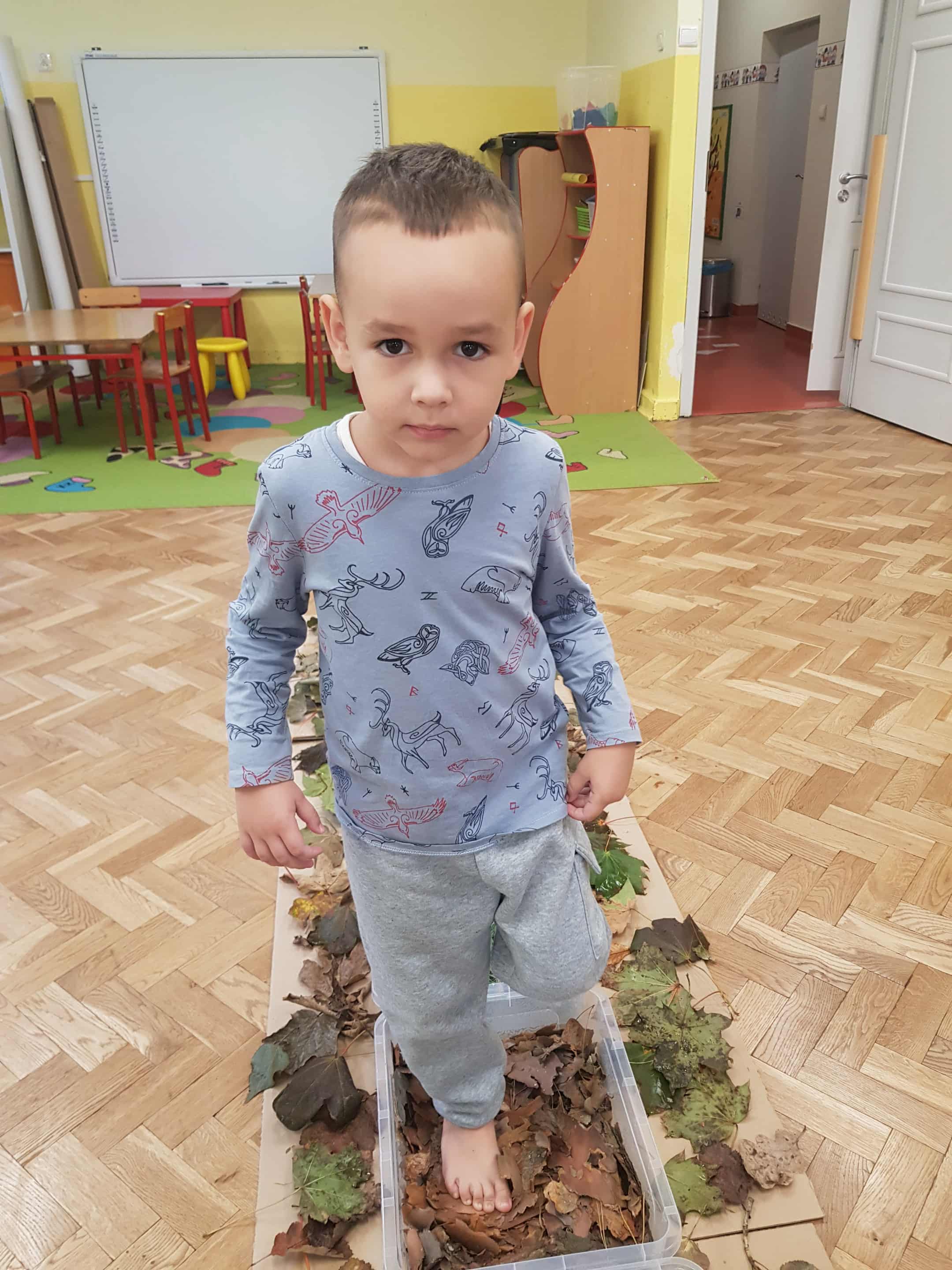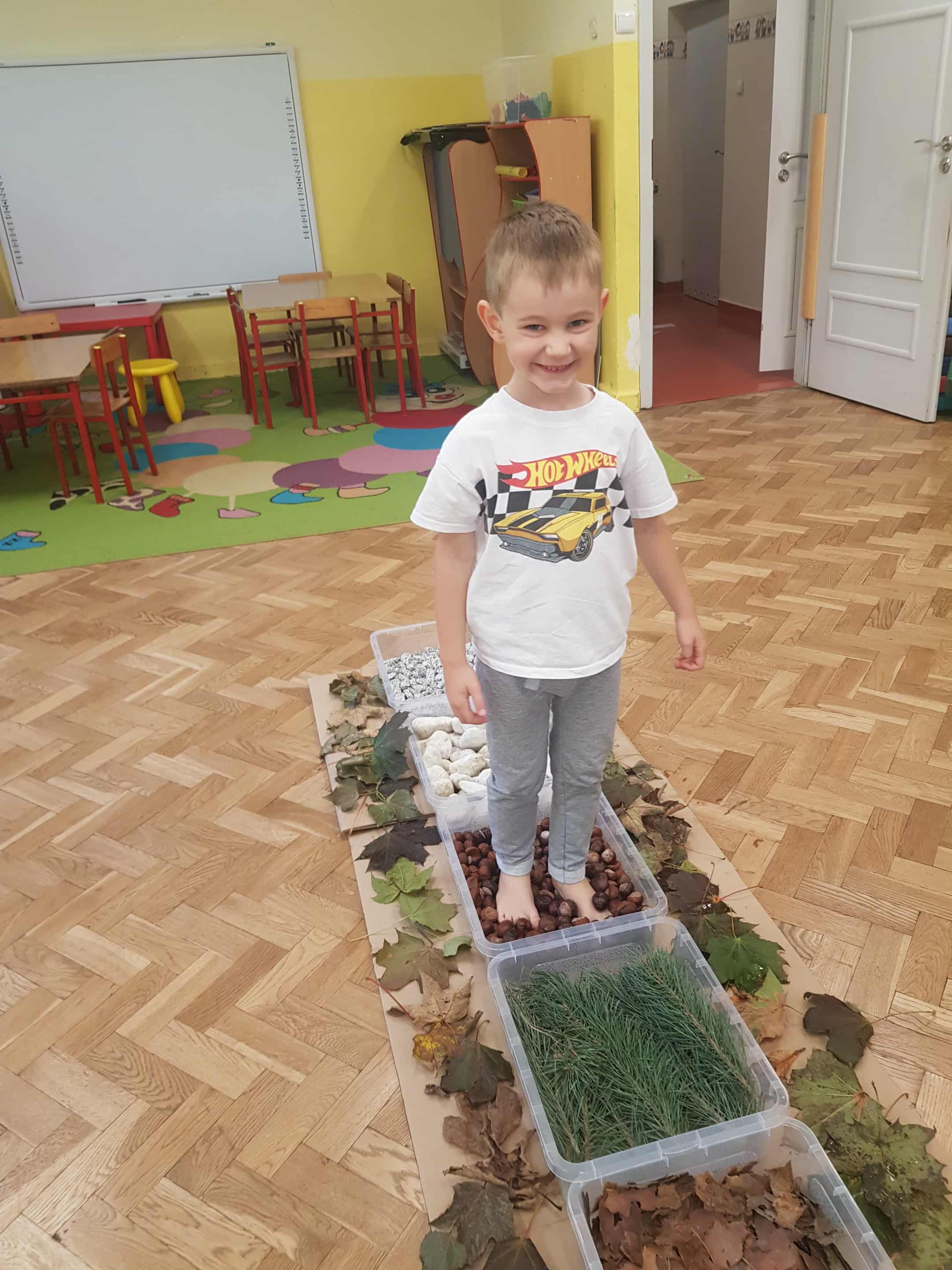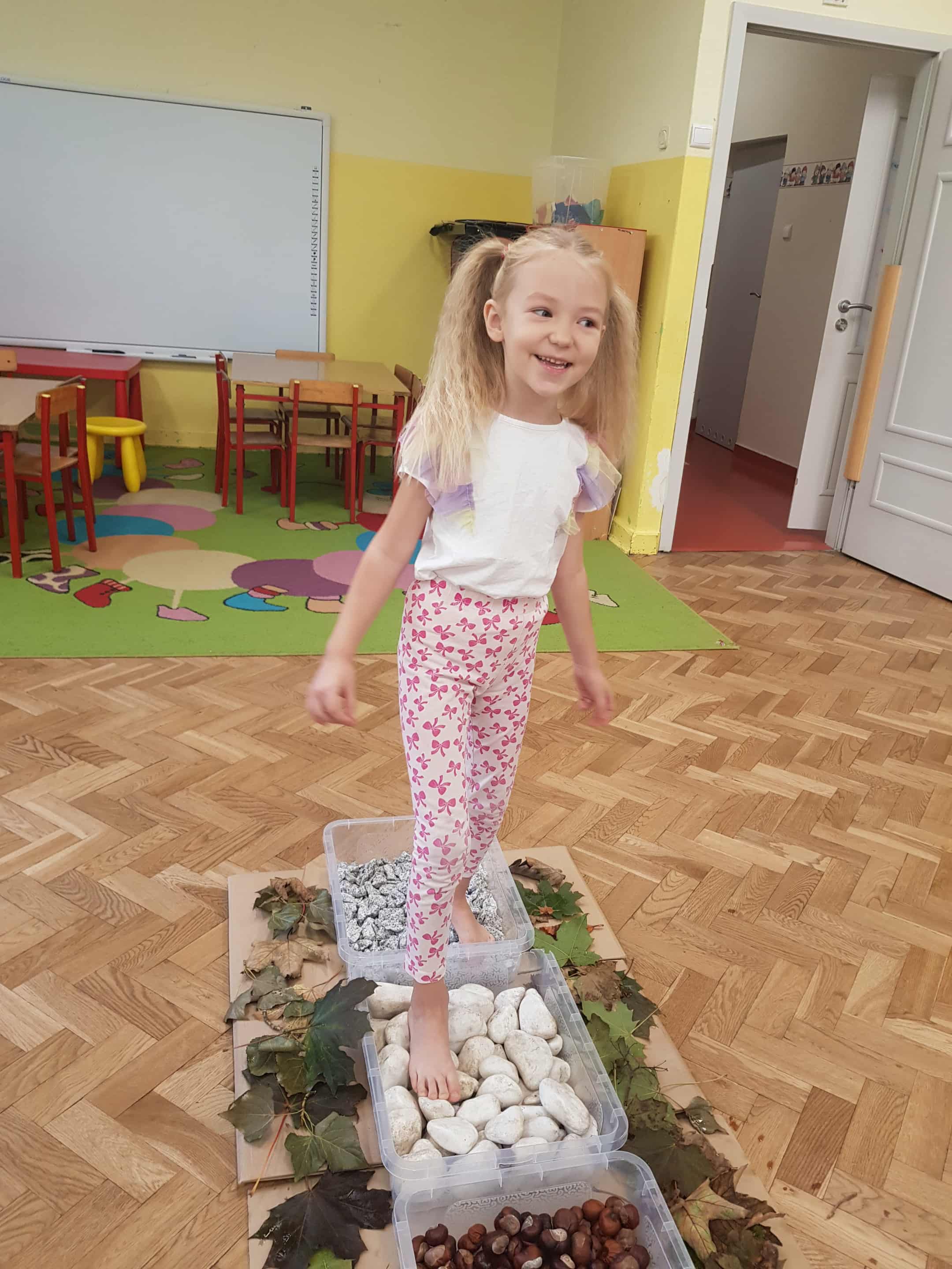 Jesienna ścieżka sensoryczna przygotowana przez nauczycielki.Stymulowanie zmysłów, zwłaszcza zmysłu węchu i dotyku. Mnóstwo uśmiechu i dobrej zabawy.