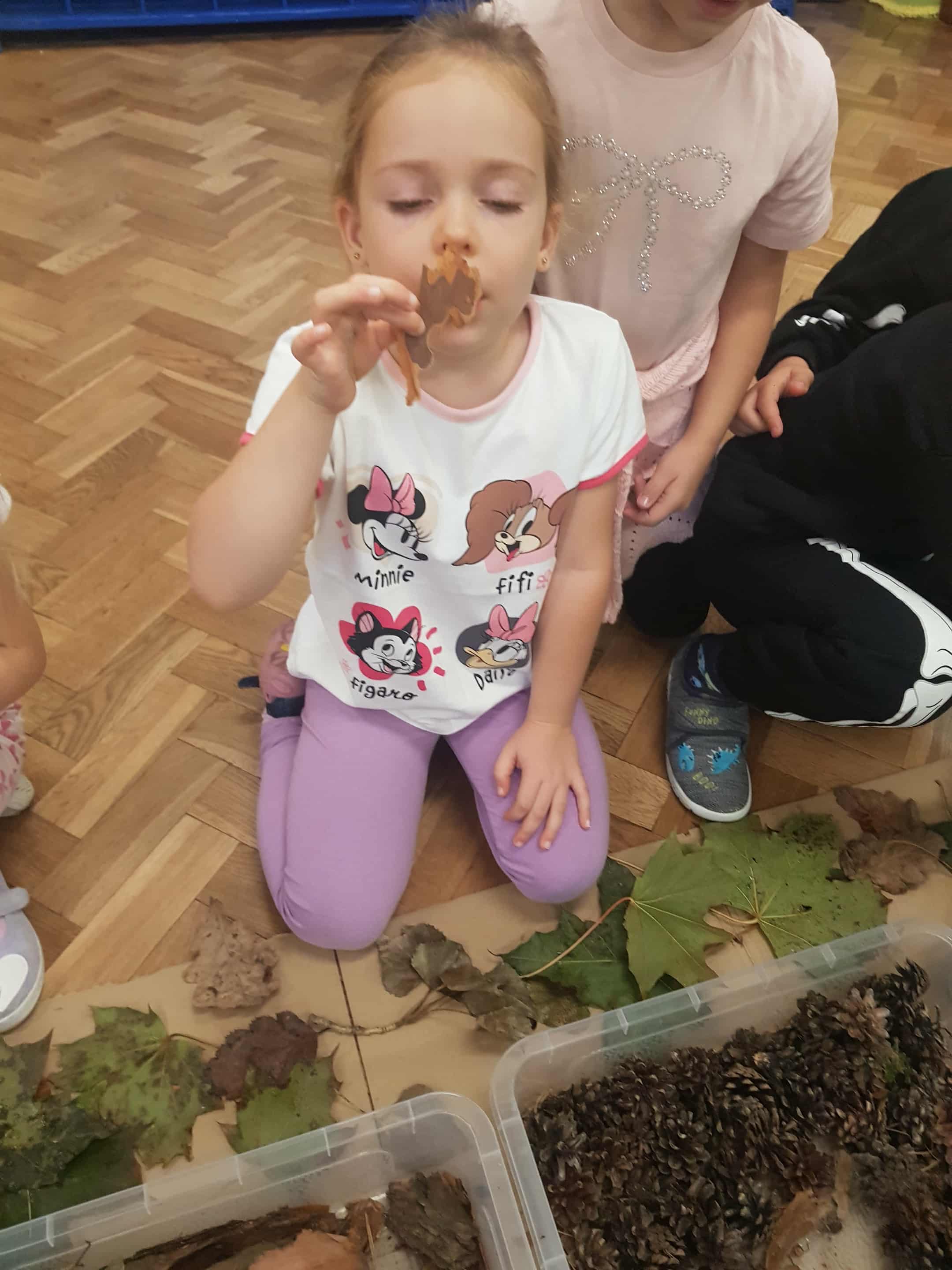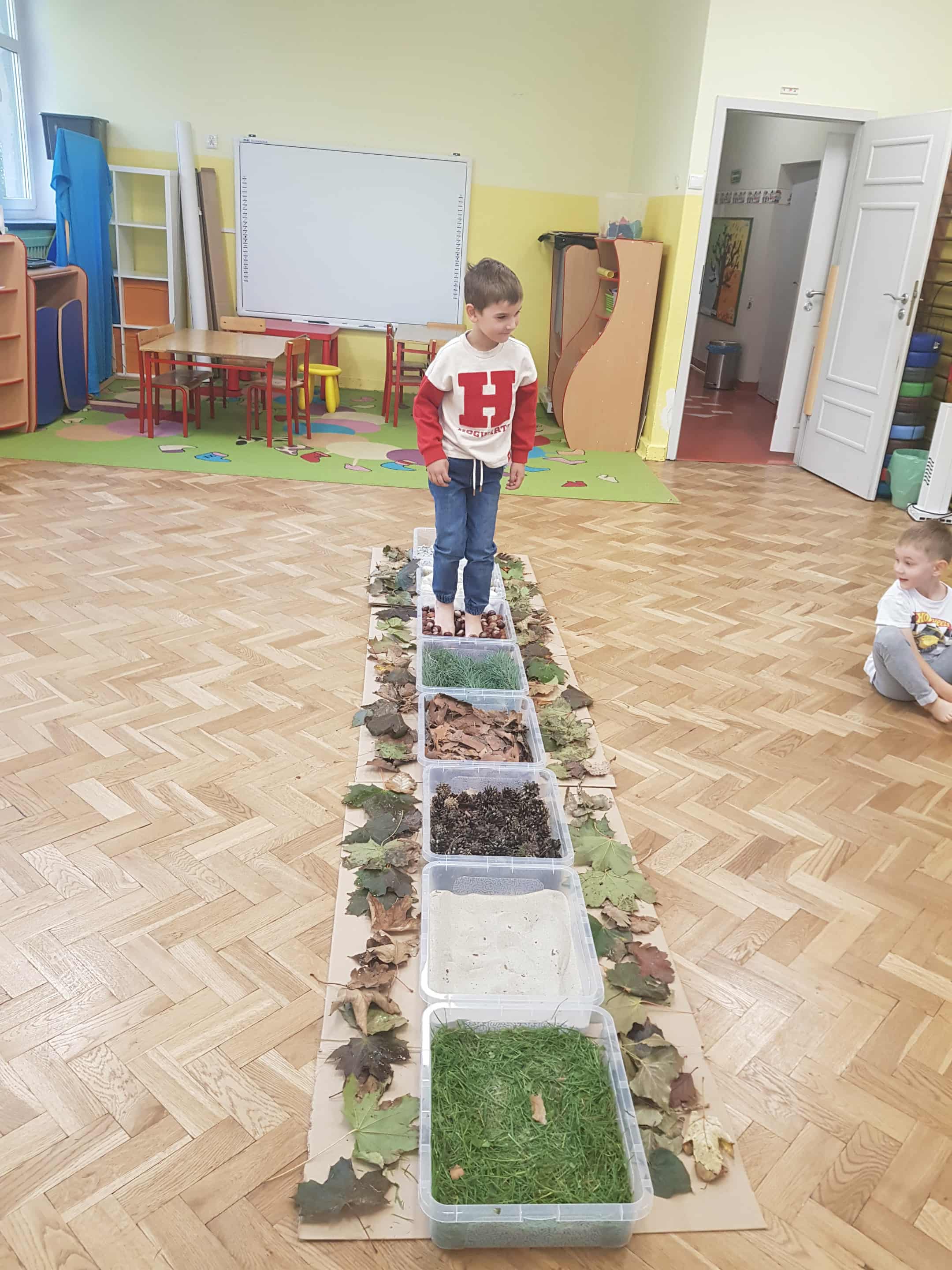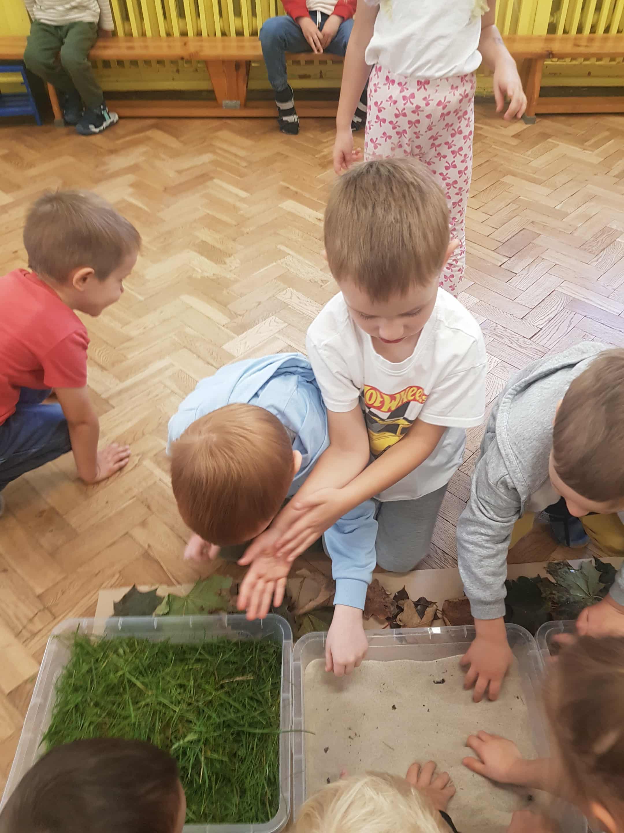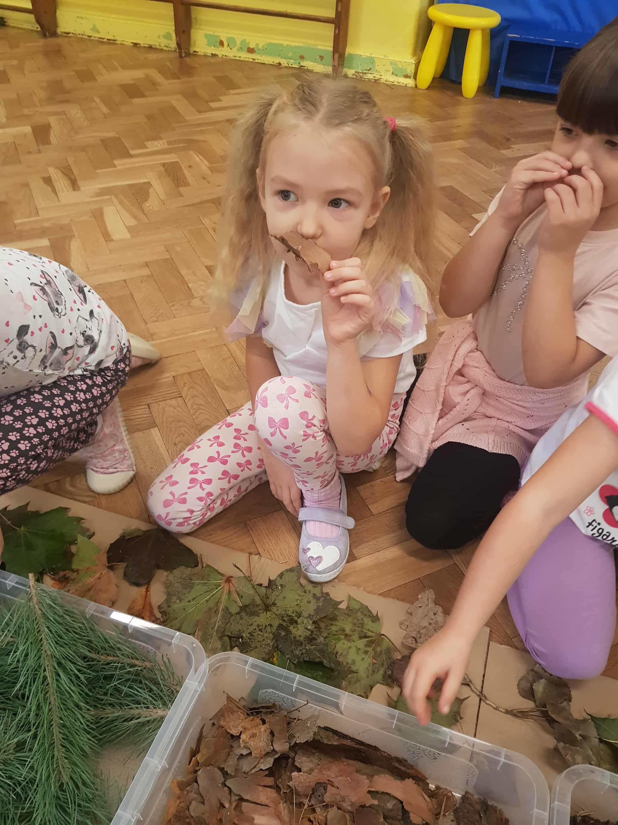 Jesienna ścieżka sensoryczna przygotowana przez nauczycielki.Stymulowanie zmysłów, zwłaszcza zmysłu węchu i dotyku. Mnóstwo uśmiechu i dobrej zabawy.
