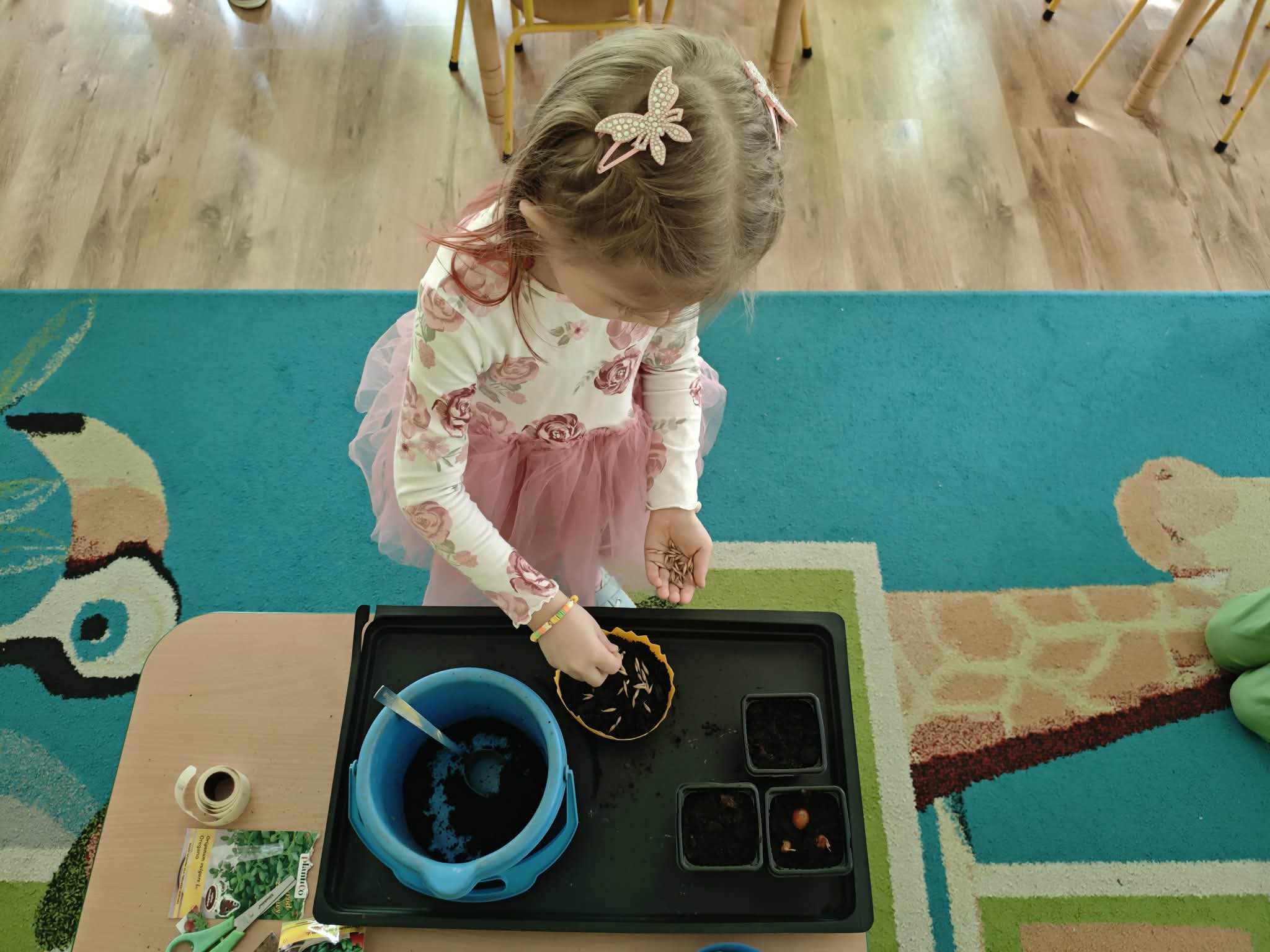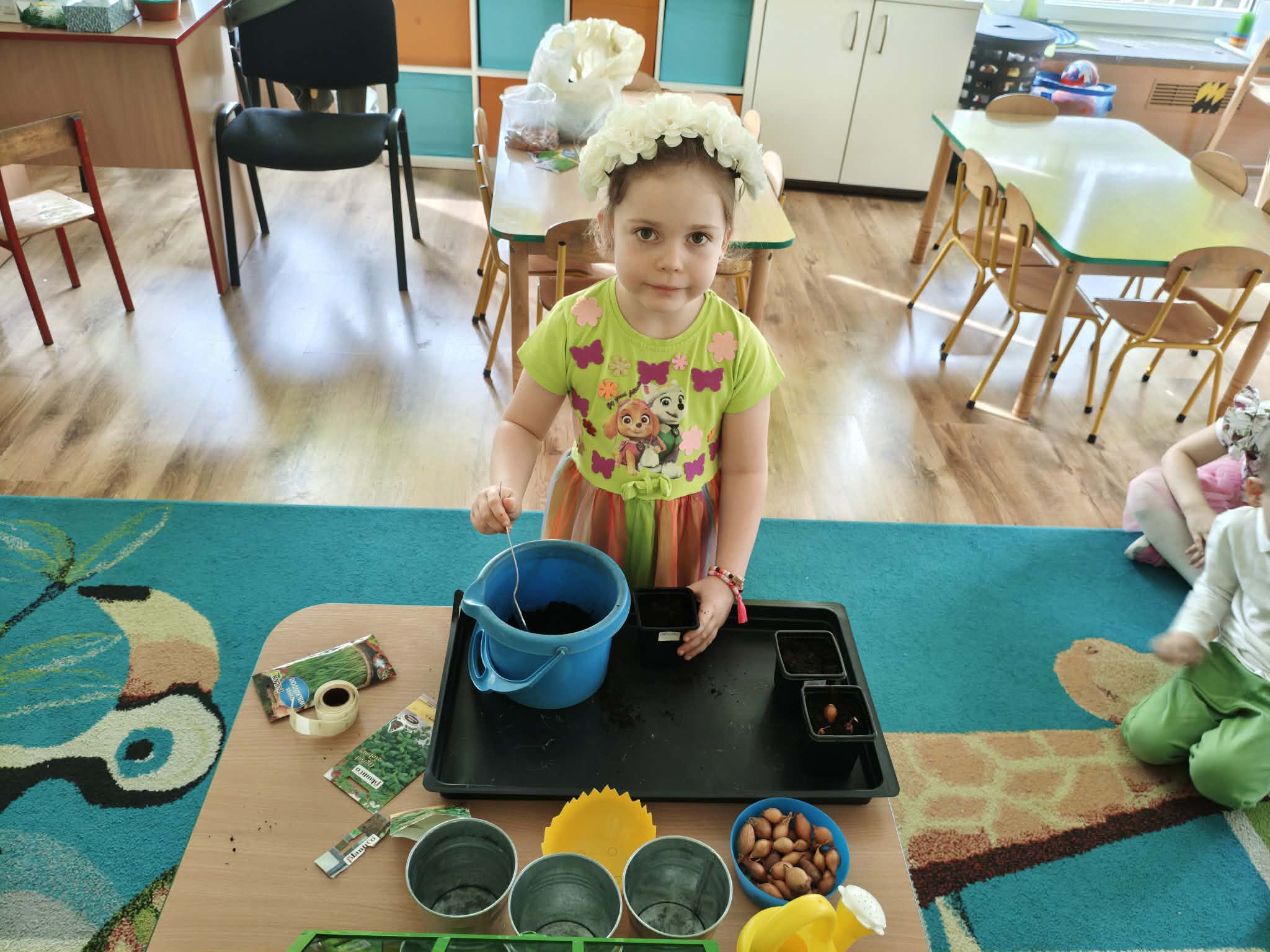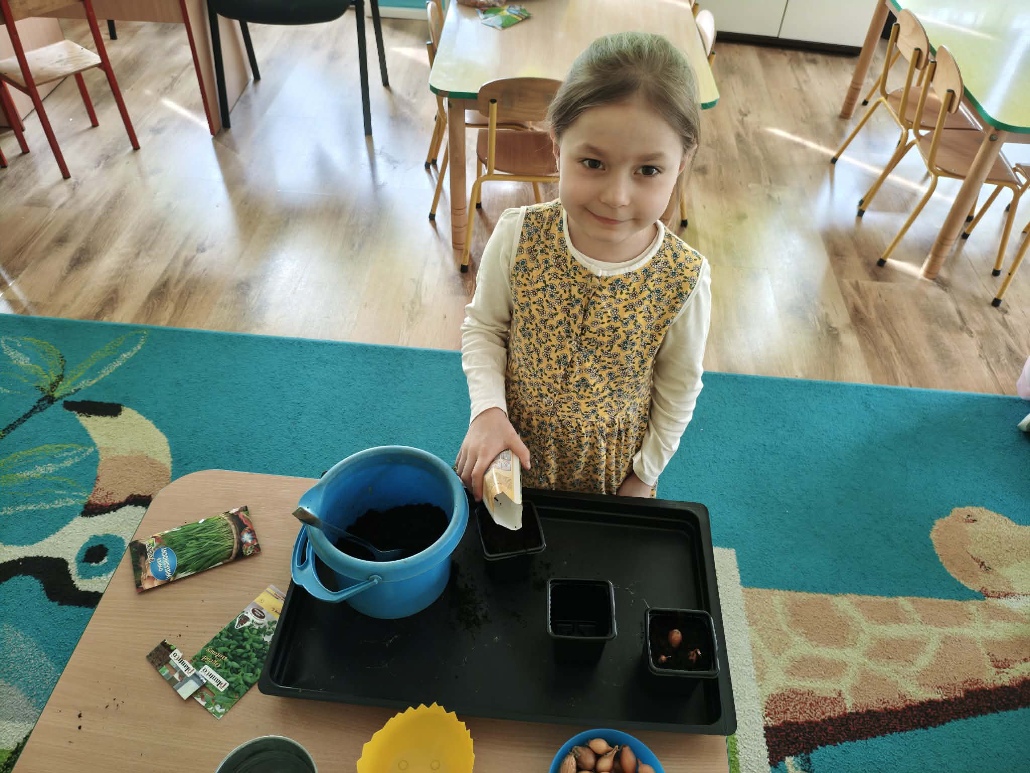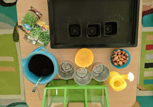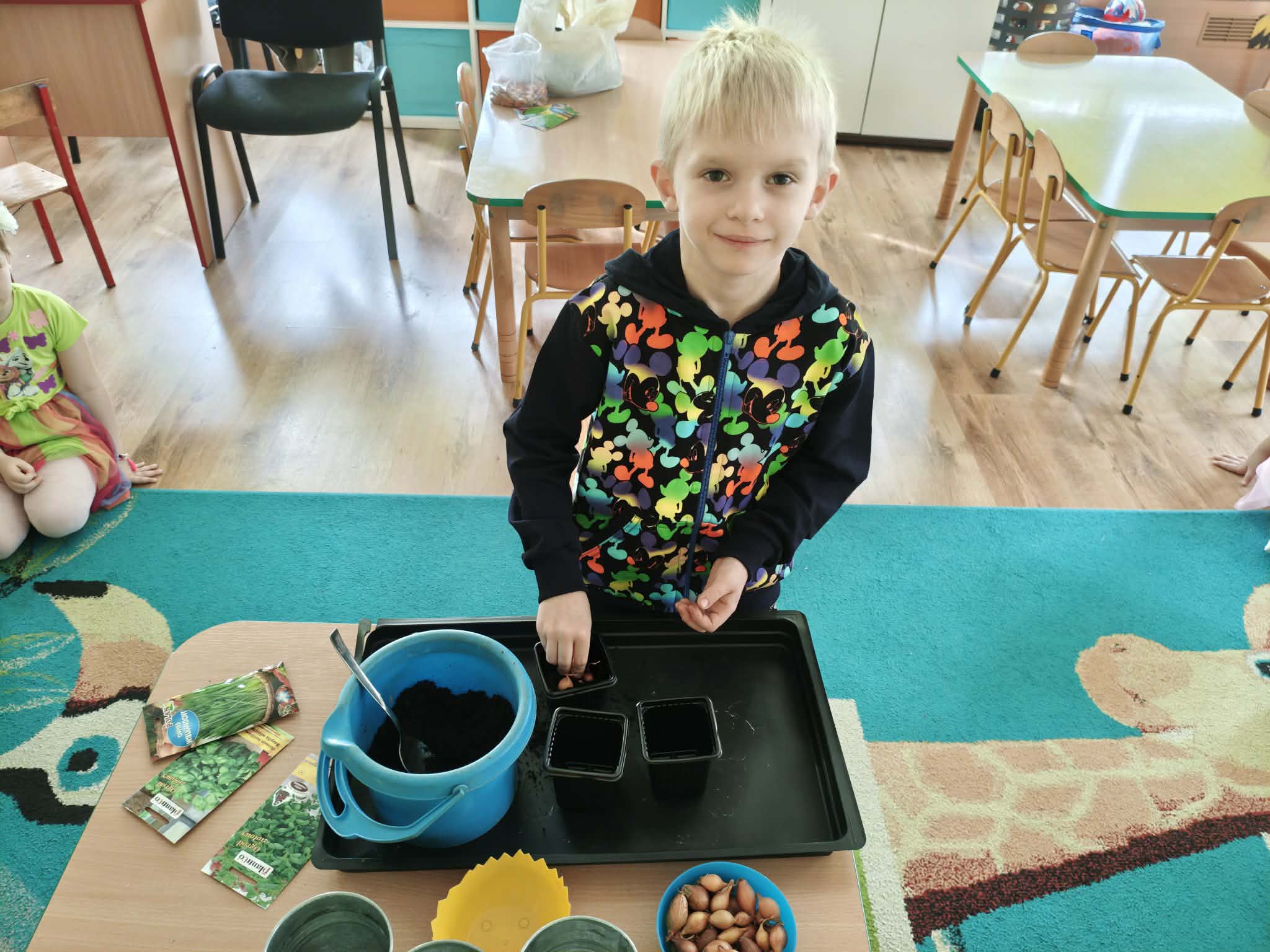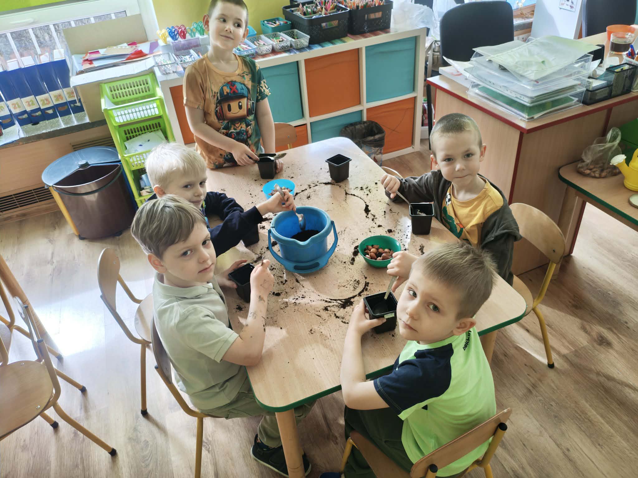 Dzieci z gr III z radością sadziły cebulę, owies ucząc się przy tym o przyrodzie i cyklu życia roślin. Podczas pracy przedszkolaki dowiedziały się, czego rośliny potrzebują do wzrostu- światła, wody i ciepła.
