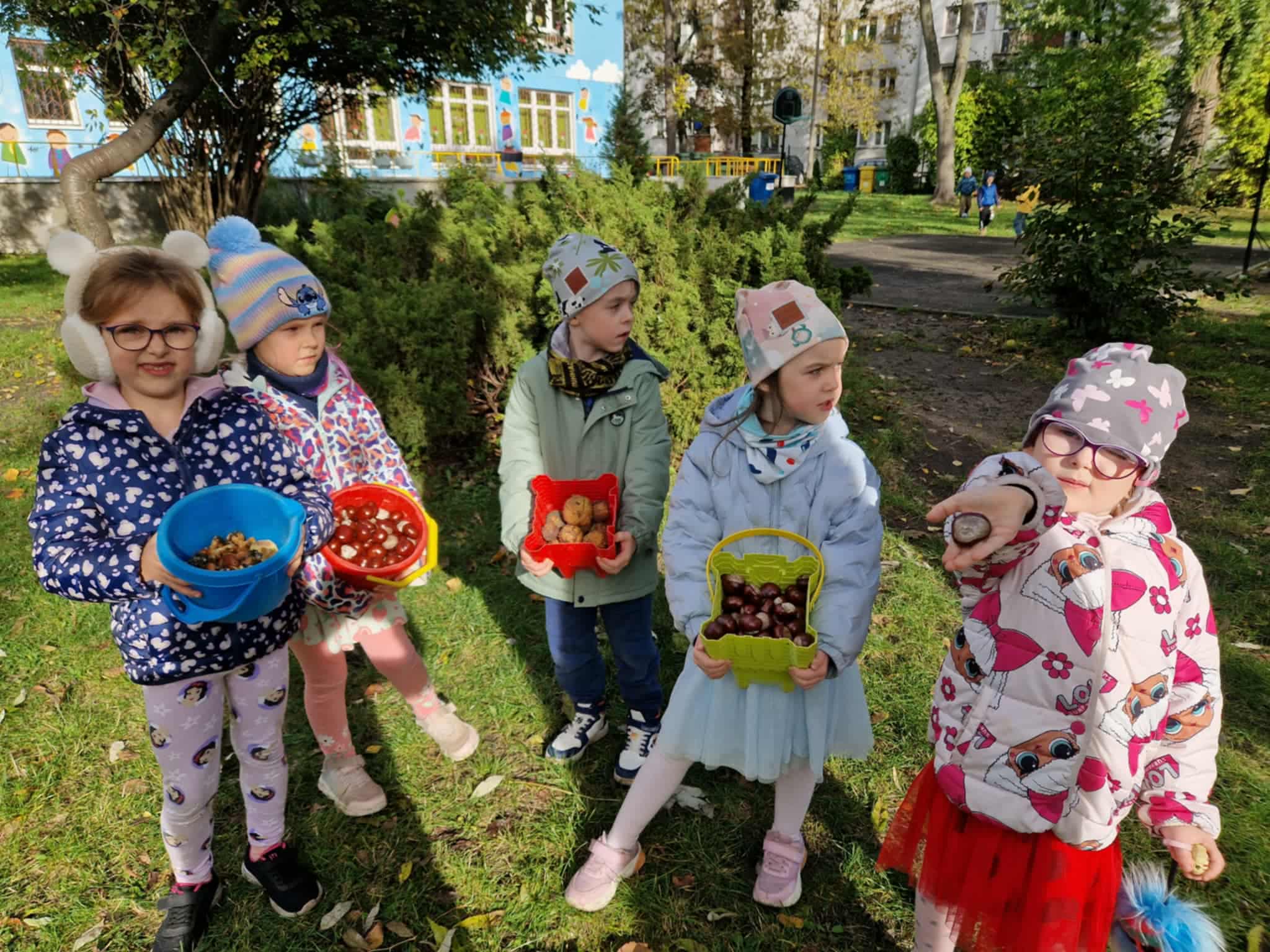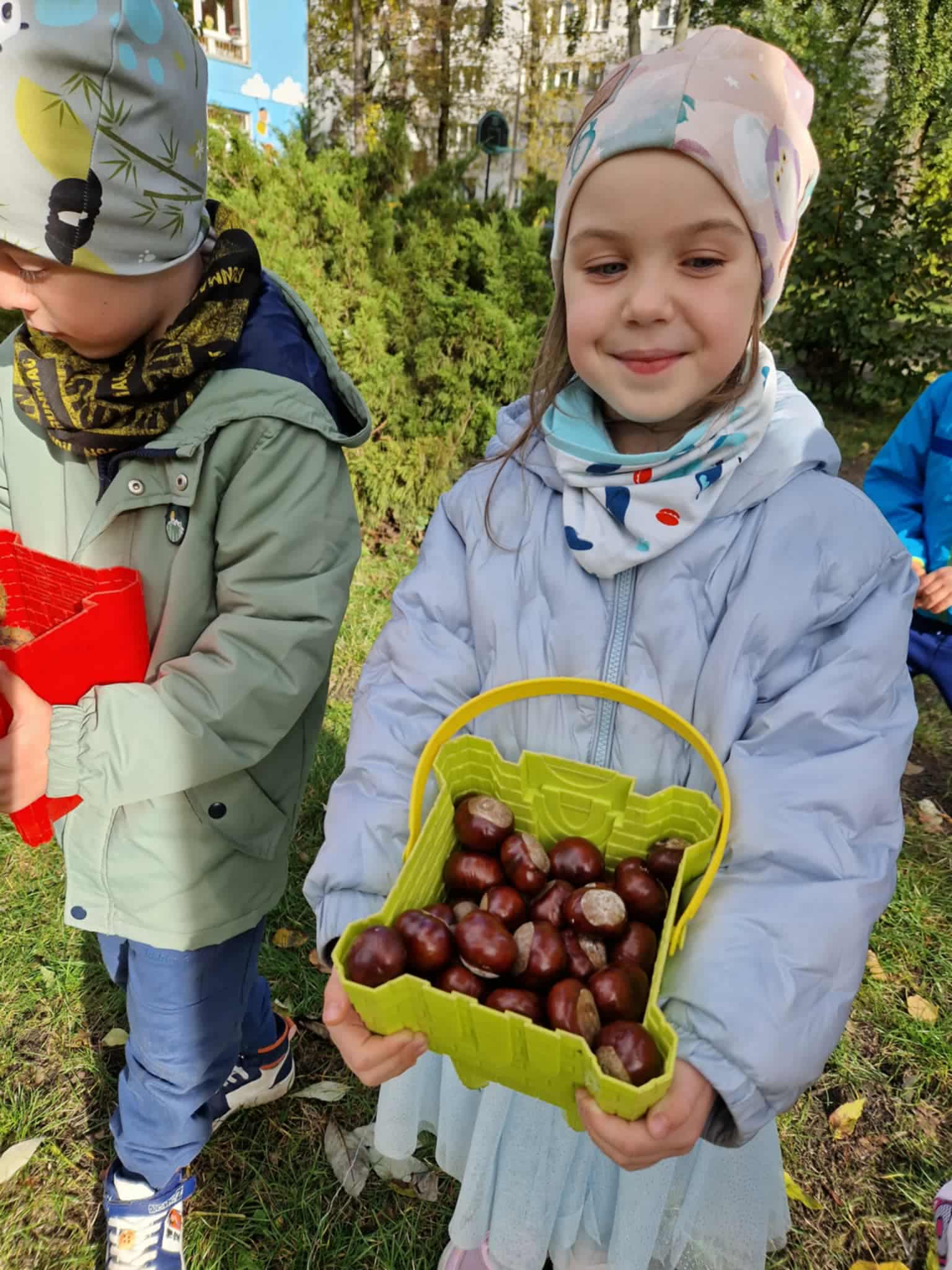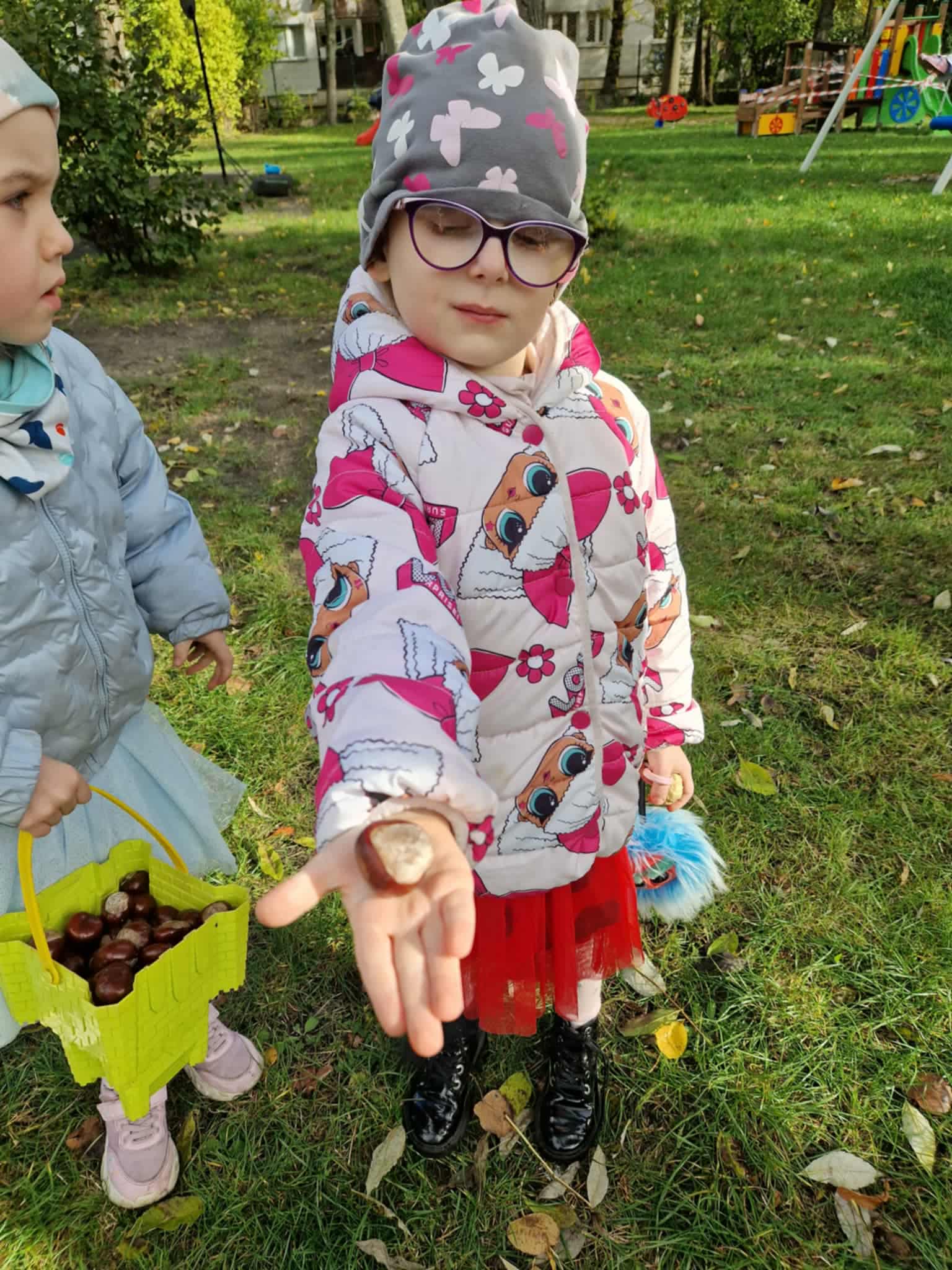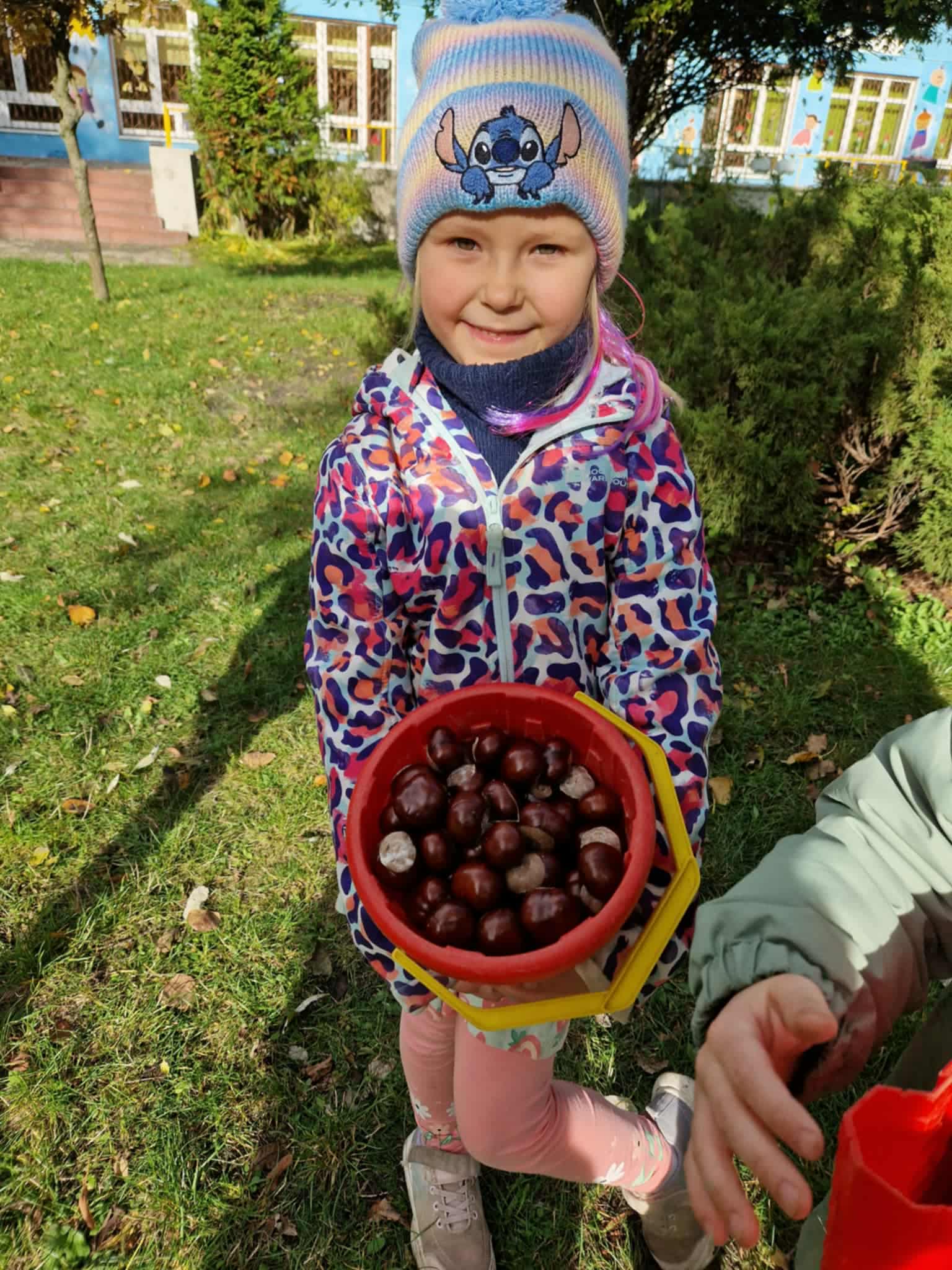 Jesienią wykorzystujemy każdą okazję by bawić się na świeżym powietrzu. Obserwujemy przyrodę w jesiennej szacie, zbieramy dary jesieni, a dziś dodatkowo sprawdzaliśmy jak działa nowe urządzenie ogrodowe. Było super.