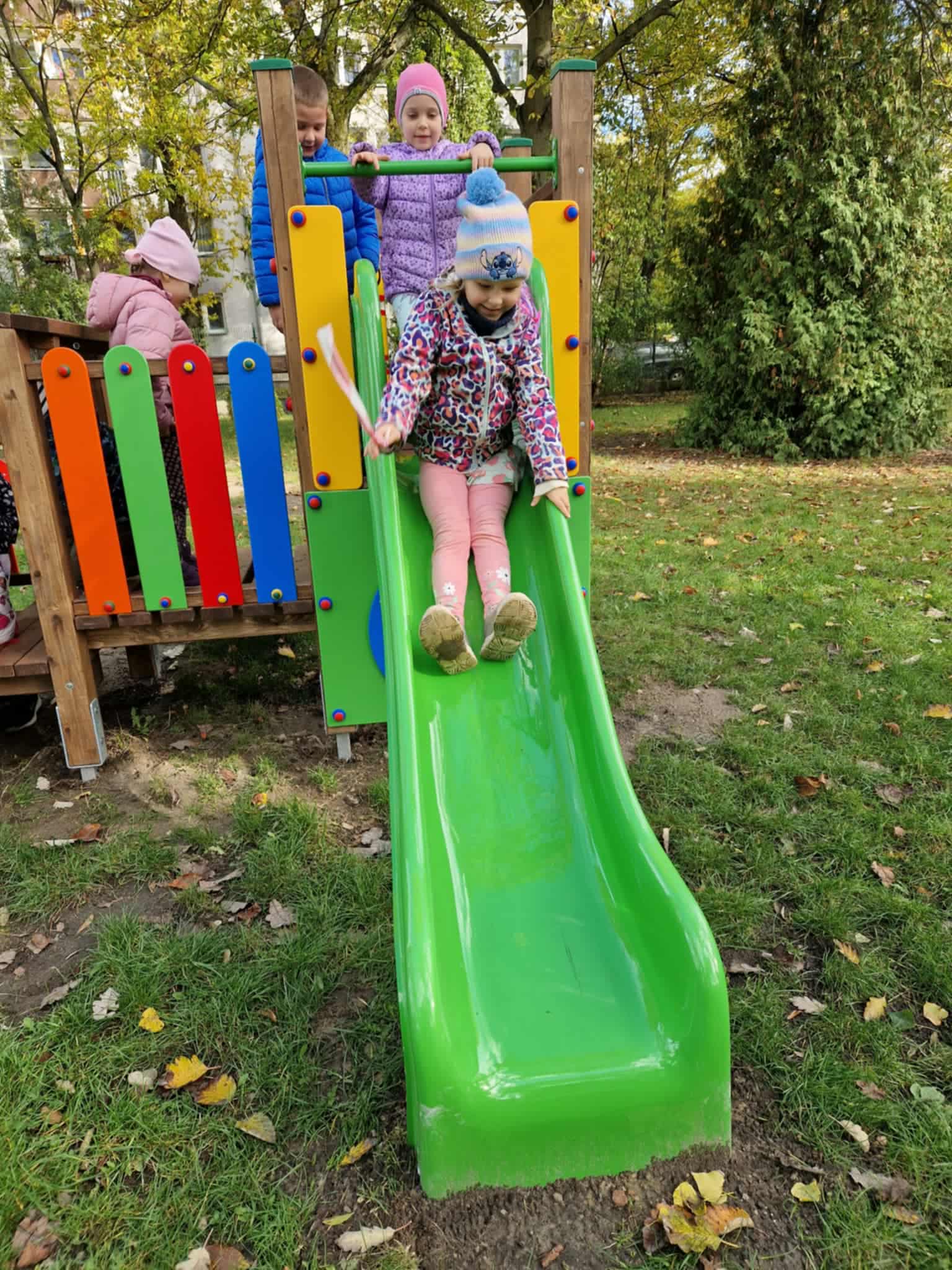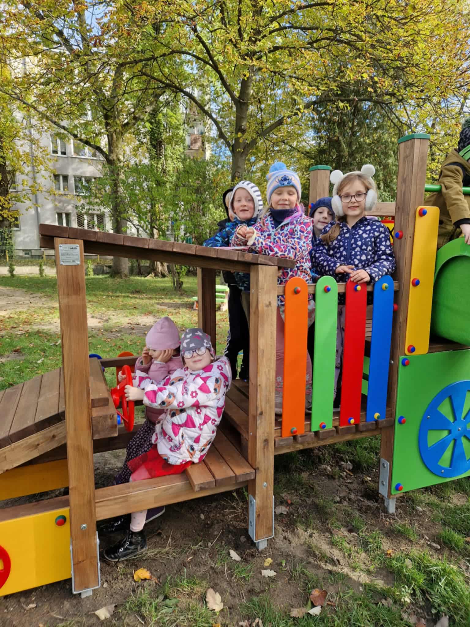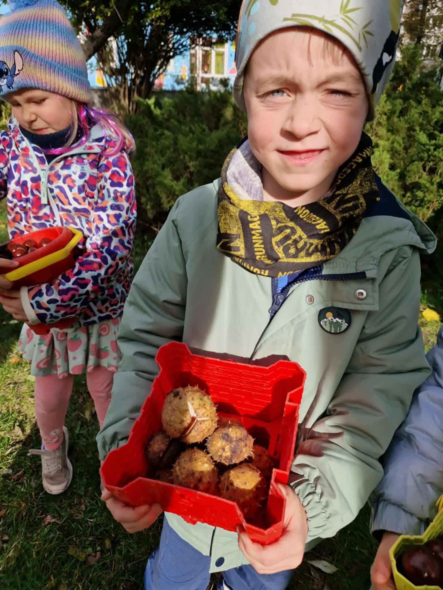 Jesienią wykorzystujemy każdą okazję by bawić się na świeżym powietrzu. Obserwujemy przyrodę w jesiennej szacie, zbieramy dary jesieni, a dziś dodatkowo sprawdzaliśmy jak działa nowe urządzenie ogrodowe. Było super.