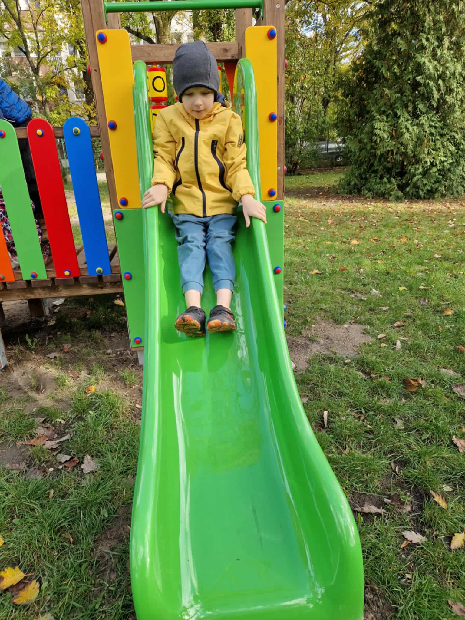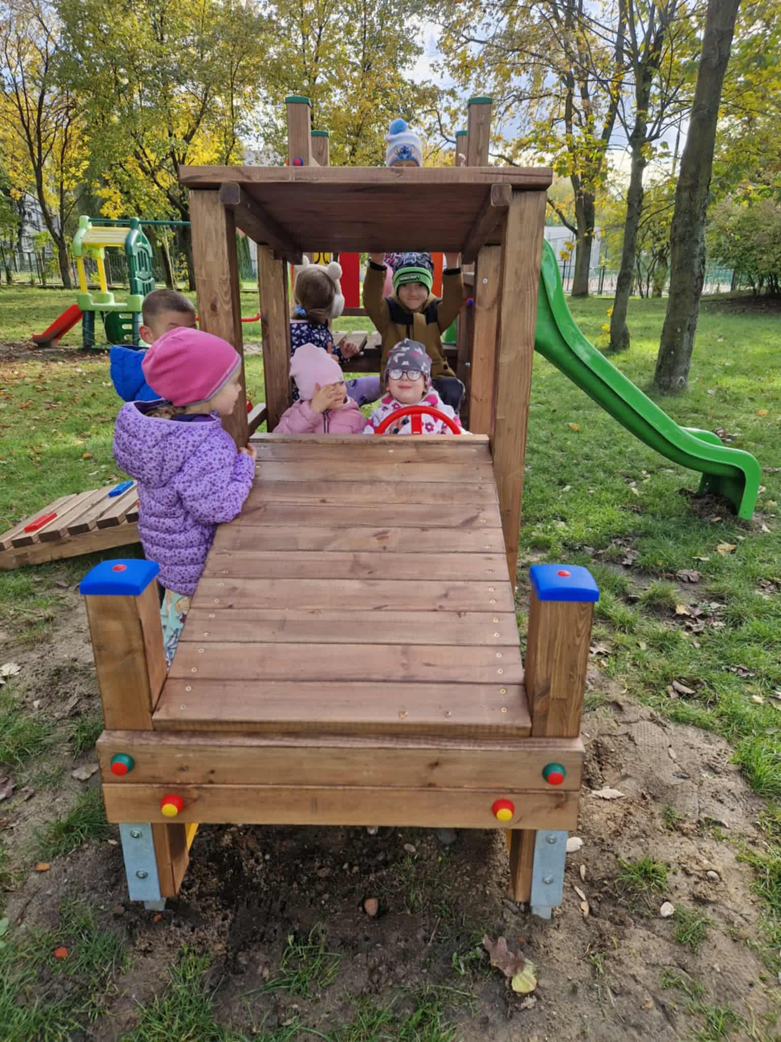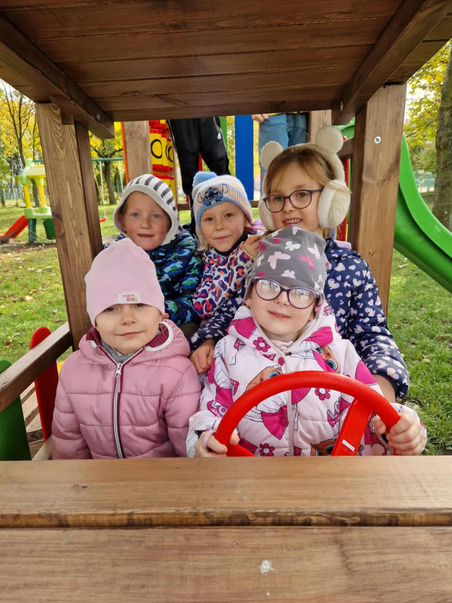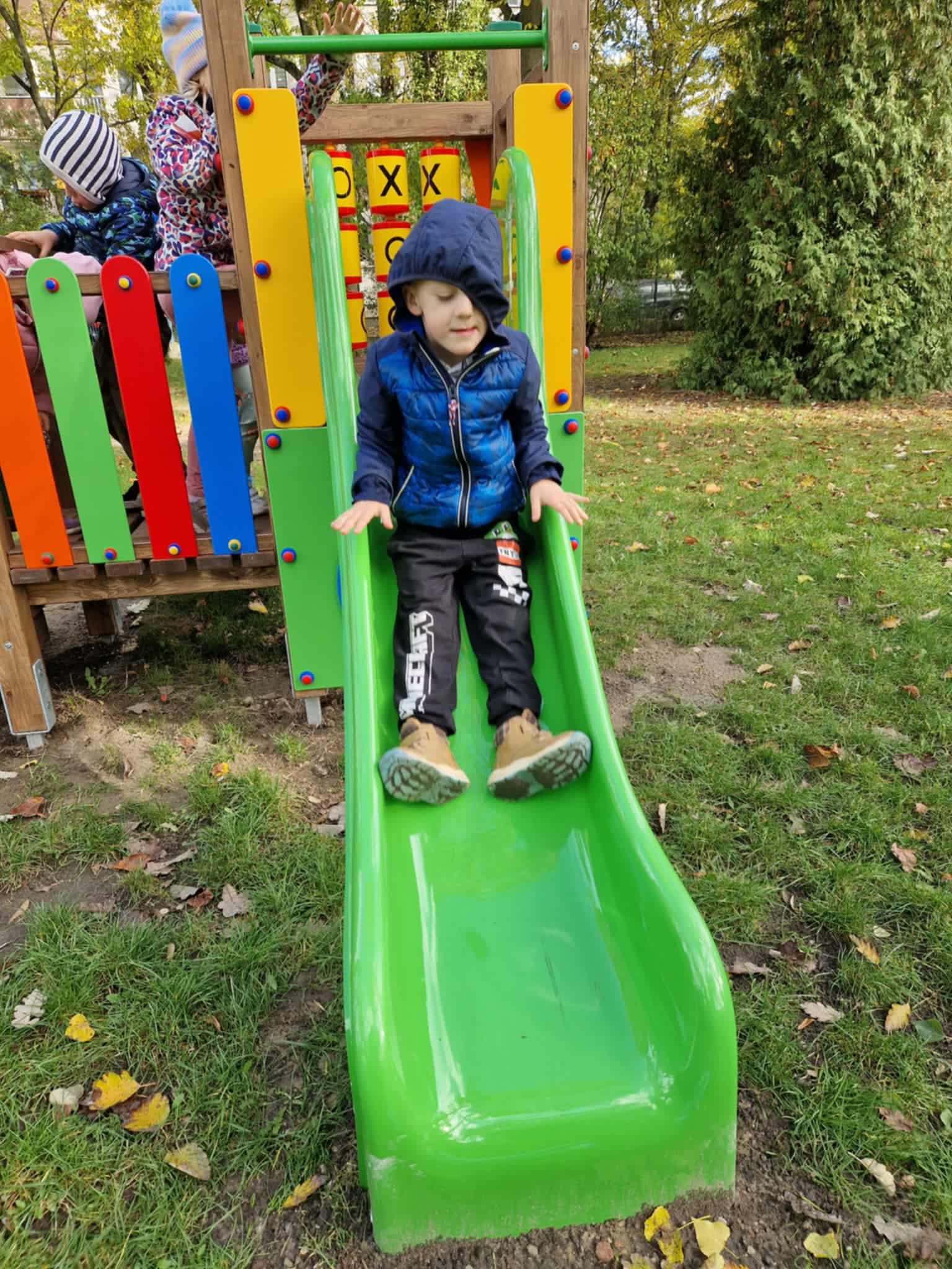 Jesienią wykorzystujemy każdą okazję by bawić się na świeżym powietrzu. Obserwujemy przyrodę w jesiennej szacie, zbieramy dary jesieni, a dziś dodatkowo sprawdzaliśmy jak działa nowe urządzenie ogrodowe. Było super.