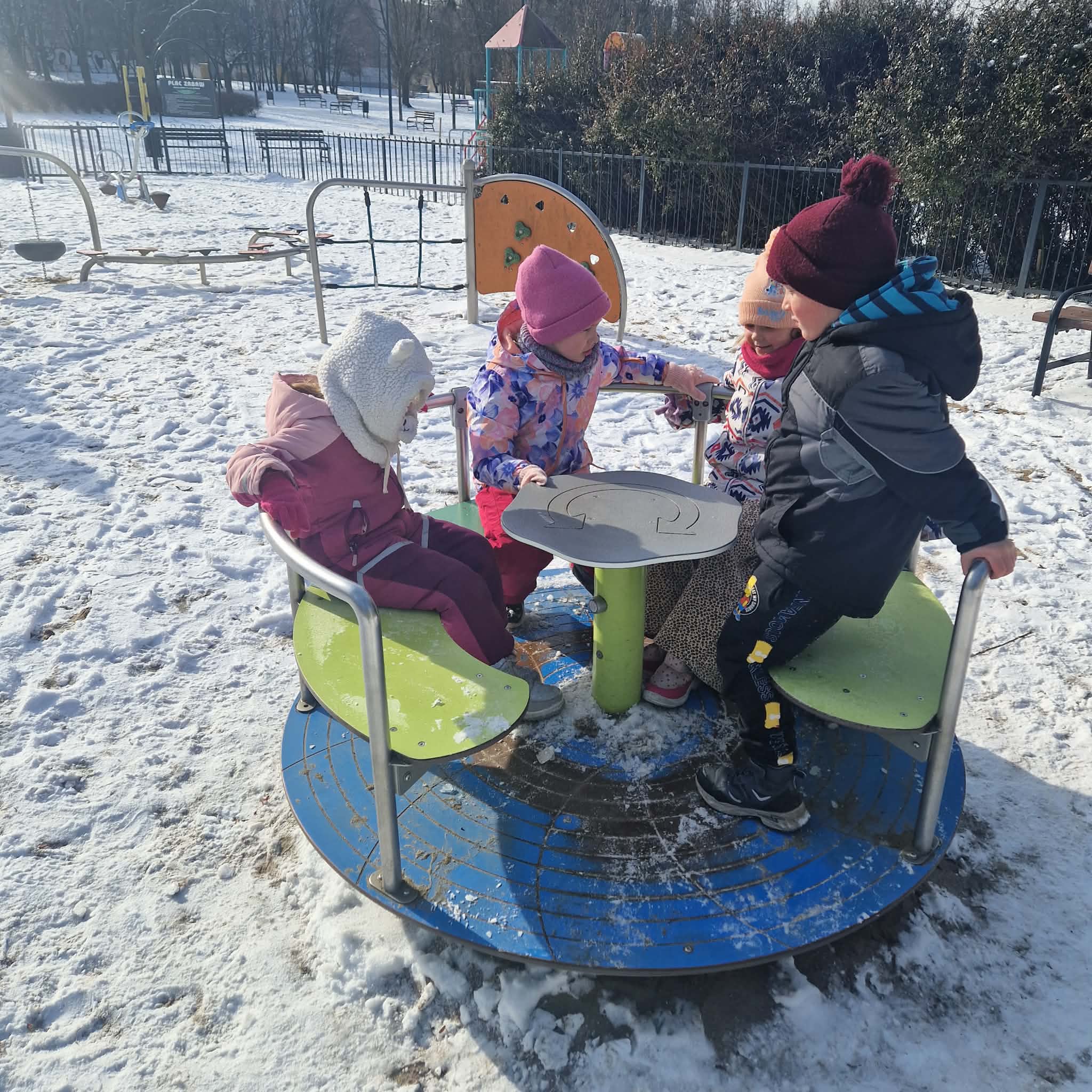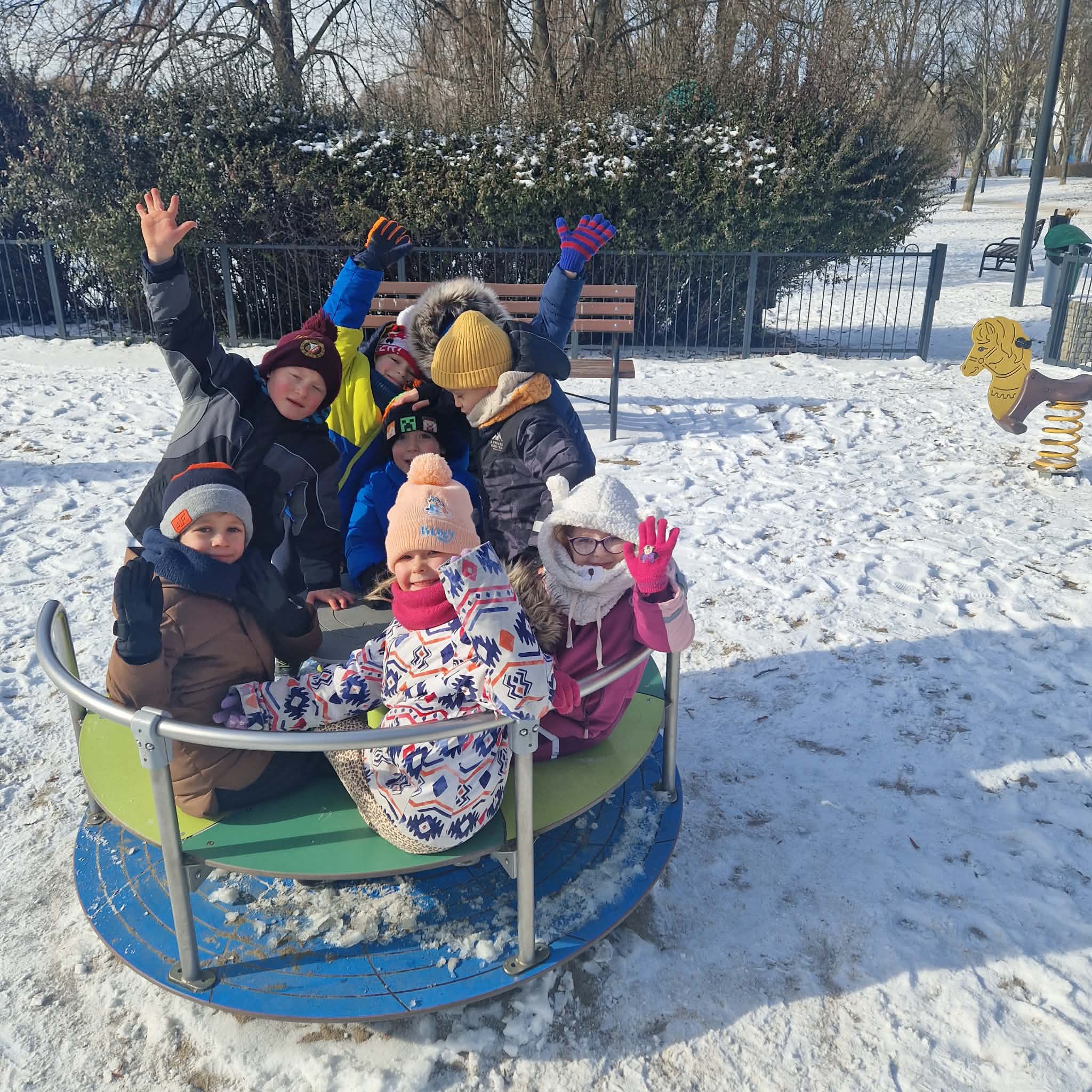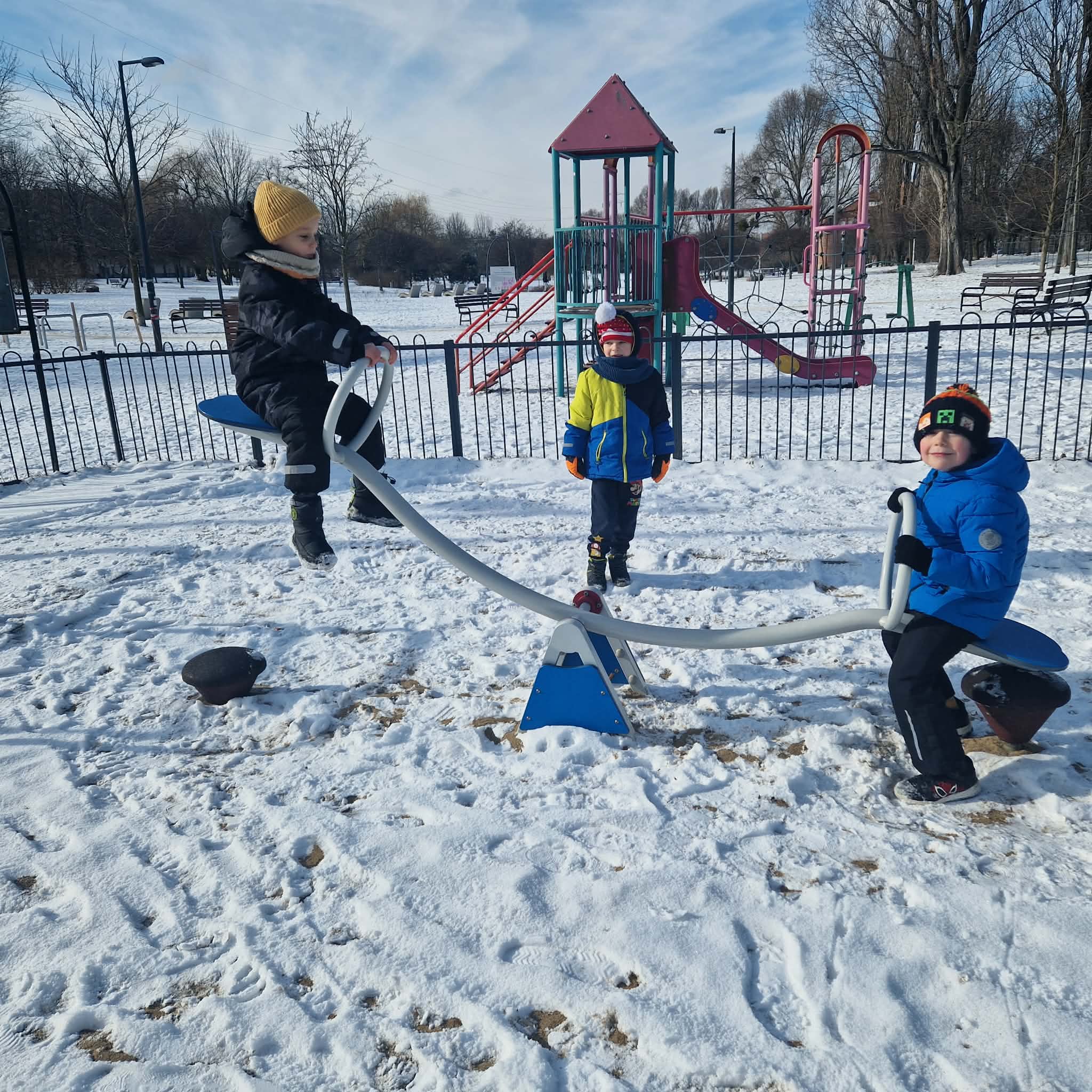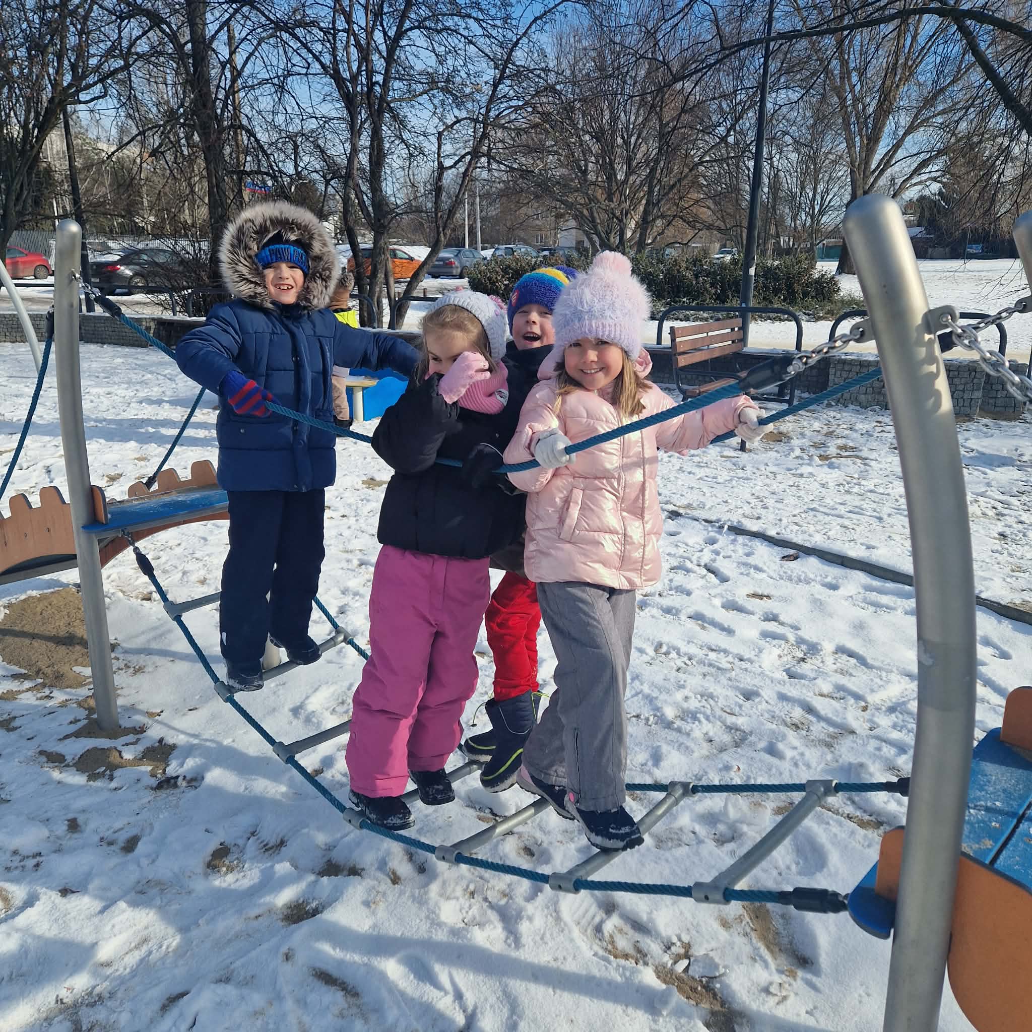 Dziś dzieci z grupy 4 wybrały się na spacer do Parku Podoski w celu obserwacji przyrody w zimowej scenerii. Dzieci dokarmiały ptaki , szukały śladów zwierząt na śniegu ,a na koniec wybrały się na plac zabaw na którym korzystały z urządzeń terenowych.