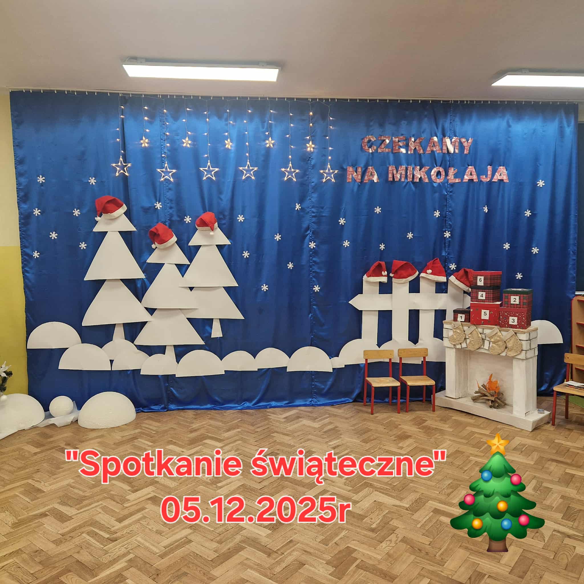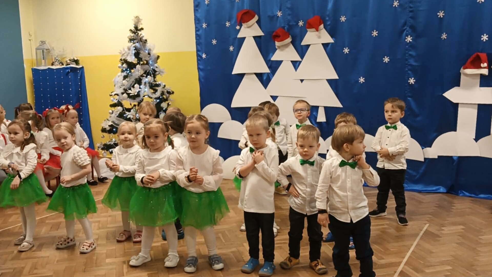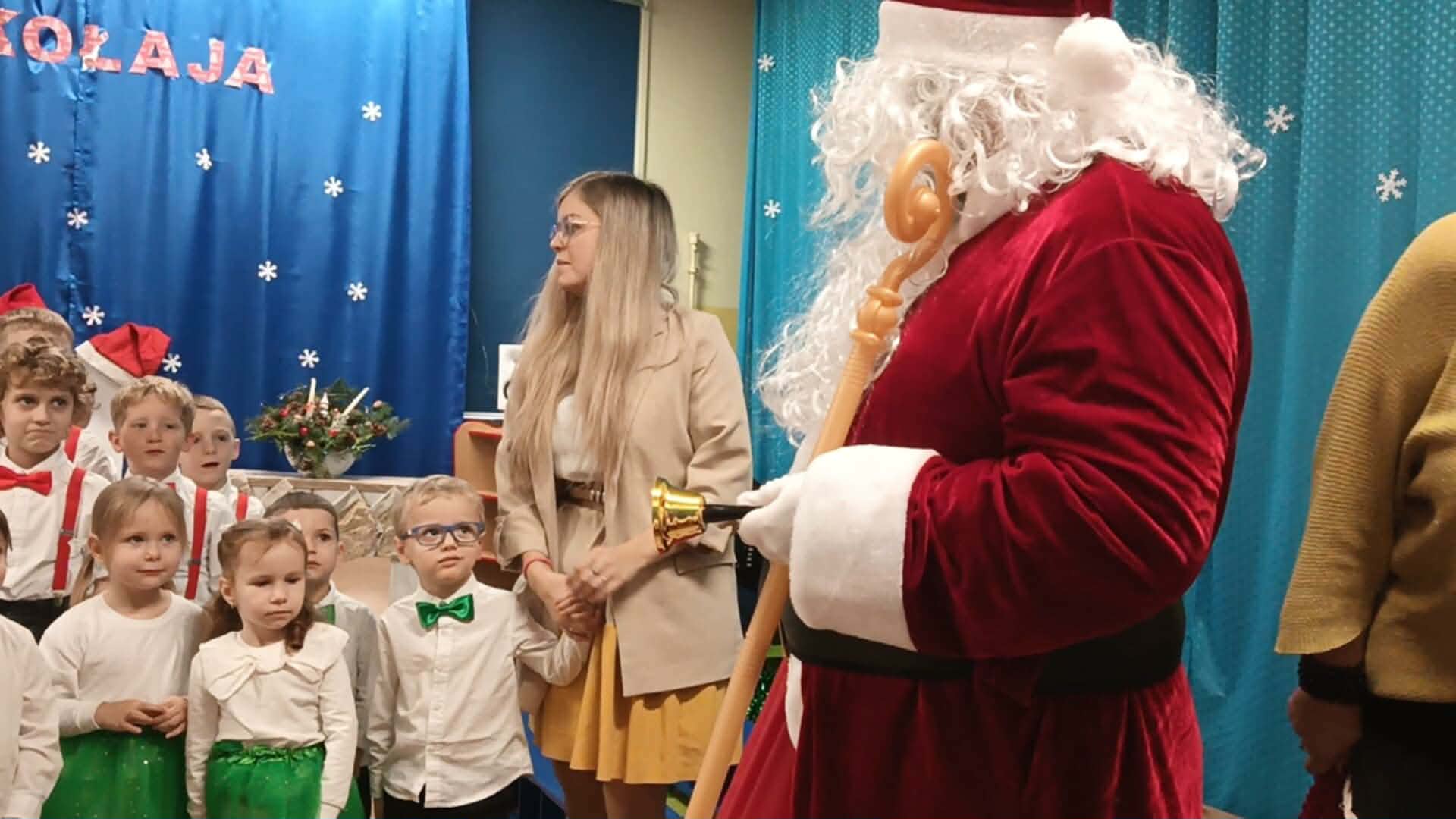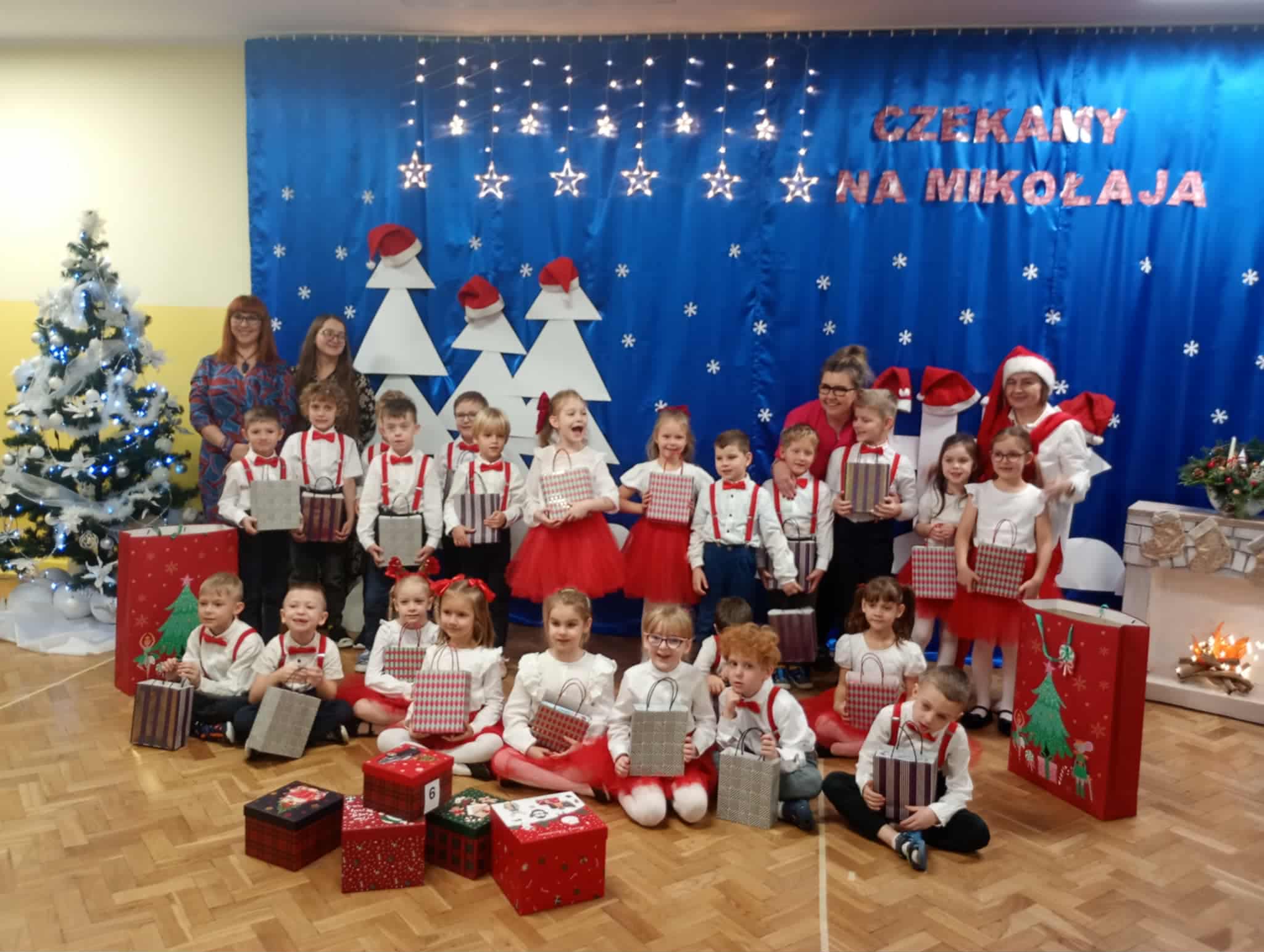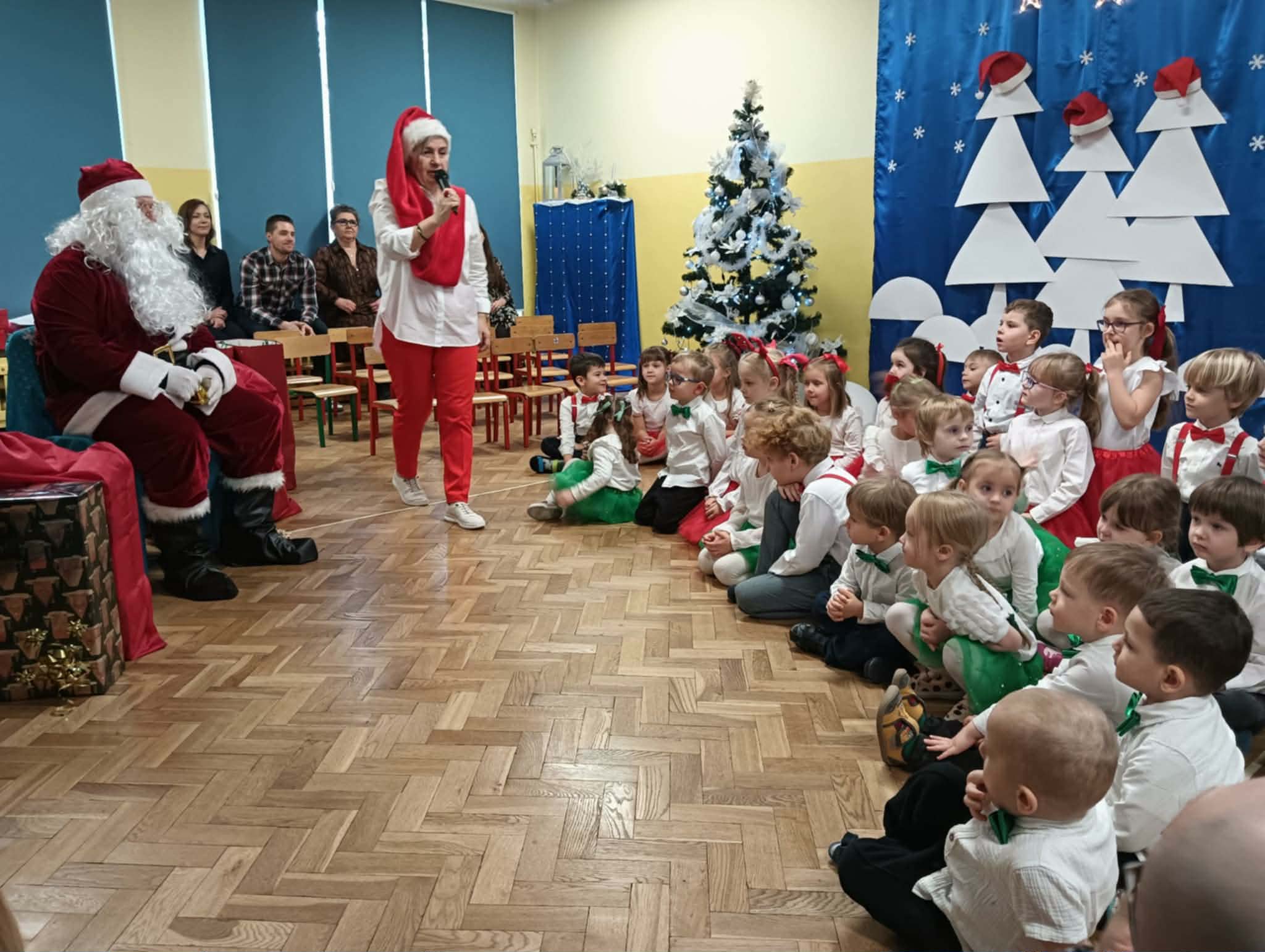 Z okazji zbliżających się Świąt Bożego Narodzenia 05.12.2025r w naszym przedszkolu odbyło się Świąteczne spotkanie z rodzicami. W gwarze przedświątecznych przygotowań, zatrzymaliśmy się na chwilę, aby nie przeoczyć istoty Świat Bożego Narodzenia. Wigilia w gronie przedszkolnej rodziny napełniła serca wszystkich obecnych niezwykłą radością i życzliwością. Bożonarodzeniowy klimat dopełniały świąteczne dekoracje w całym przedszkolu, lampki, świąteczne figurki oraz przystrojona choinka. Wszystkie dzieci zaprezentowały swoim najbliższym program artystyczny, w którym to z wielkim zaangażowaniem recytowały wiersze, tańczyły, śpiewały piosenki, grały na instrumentach muzycznych oraz składały świąteczne życzenia. Ogromną niespodzianką było spotkanie ze Świętym Mikołajem , który obdarował dzieci prezentami. Spotkanie świąteczne upłynęło w miłej i serdecznej atmosferze, z pewnością na długo pozostanie w naszej pamięci.