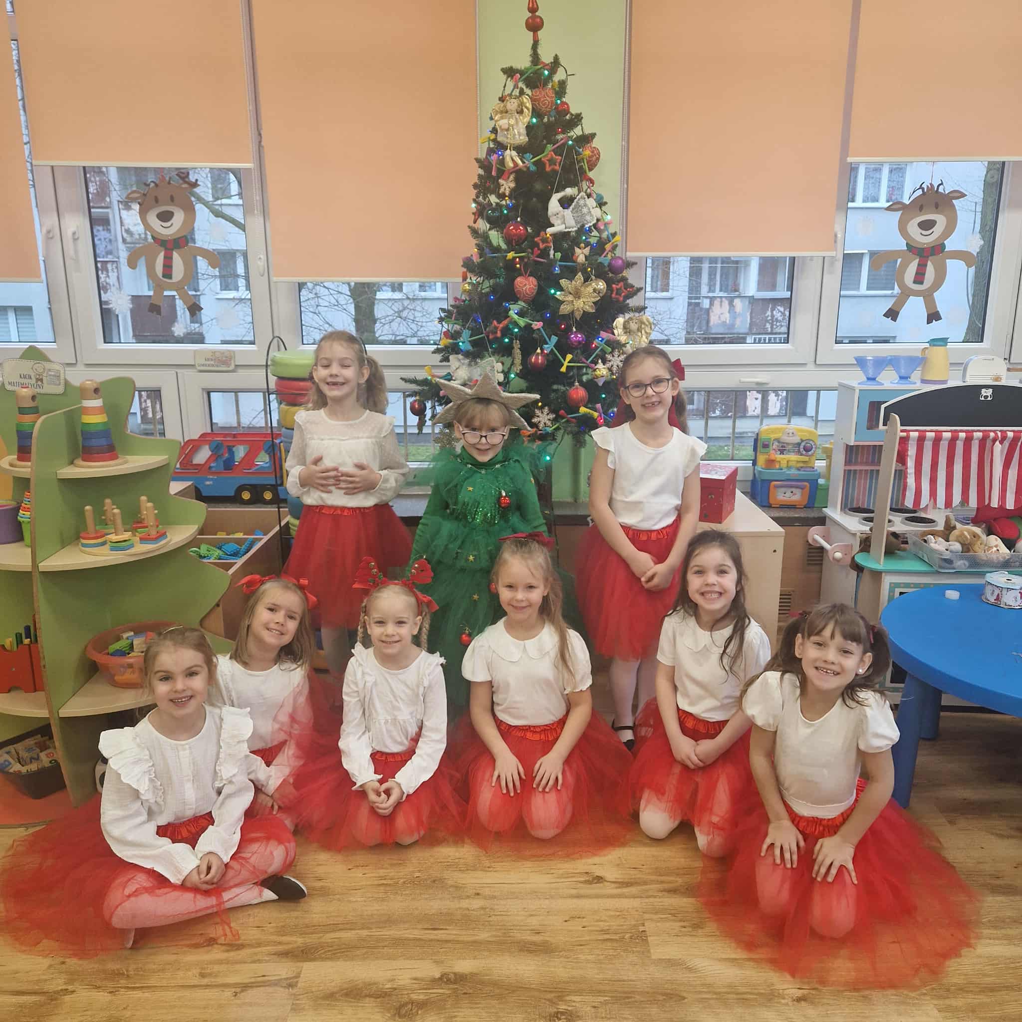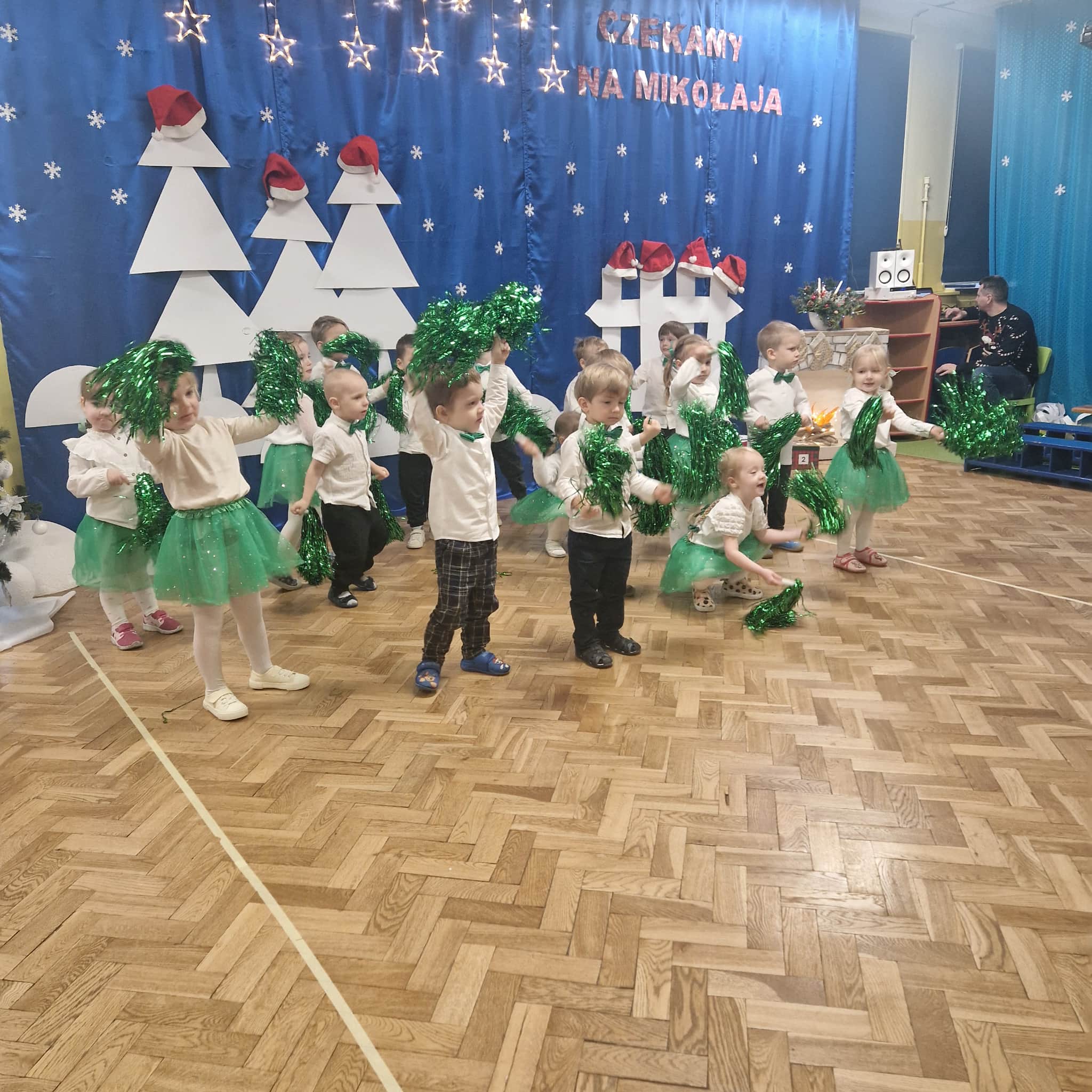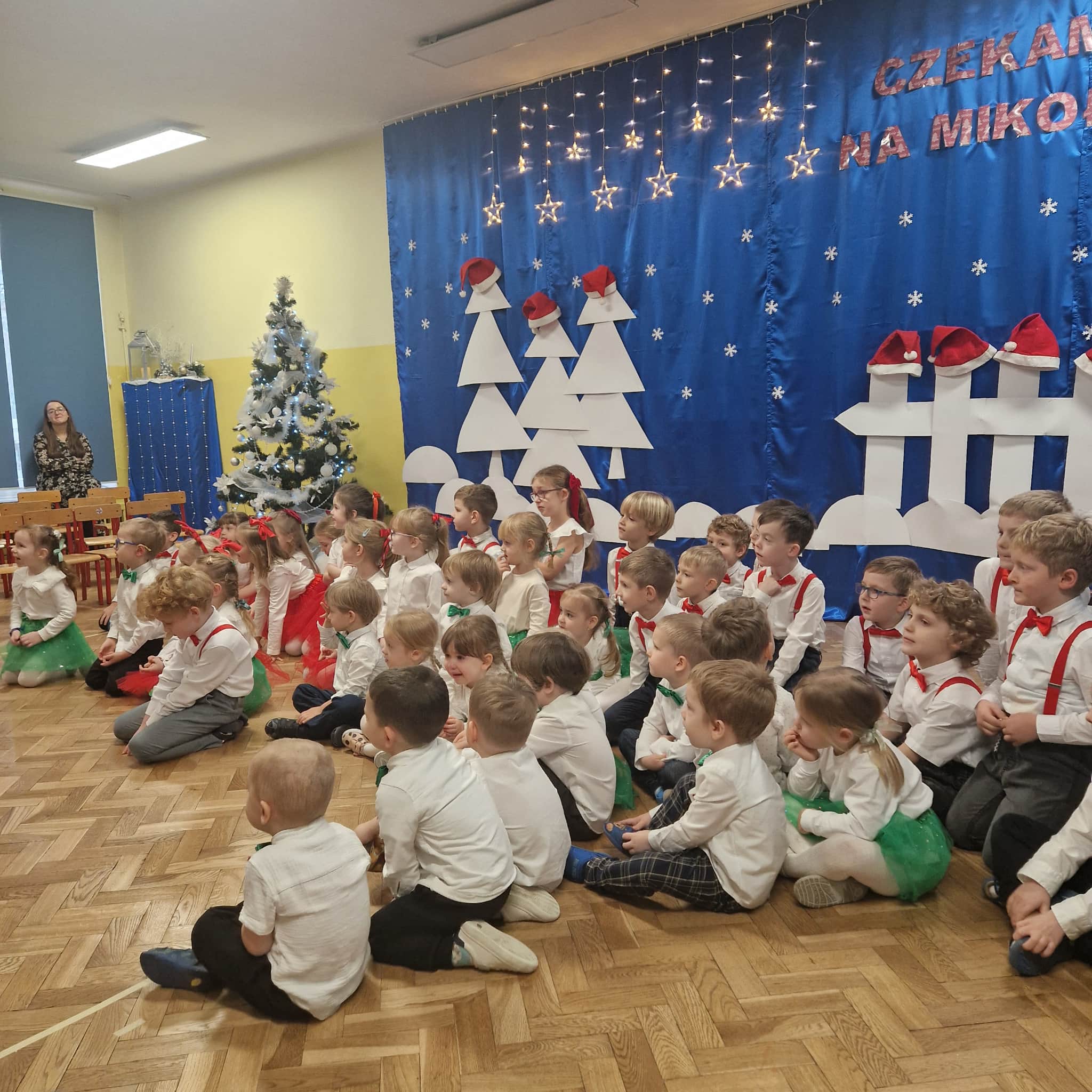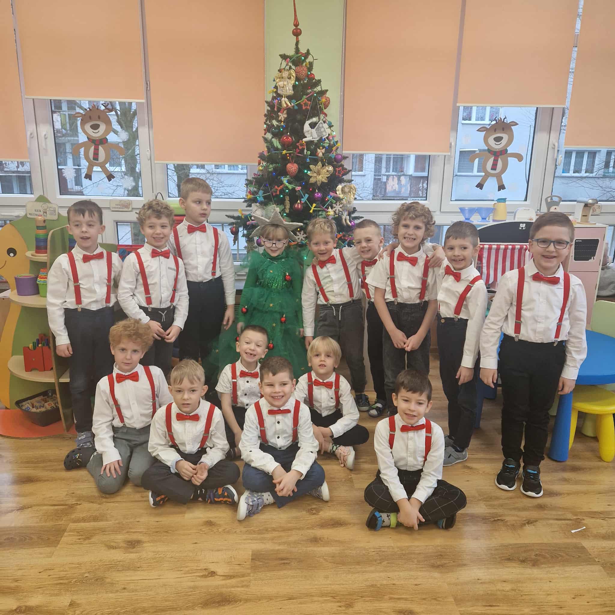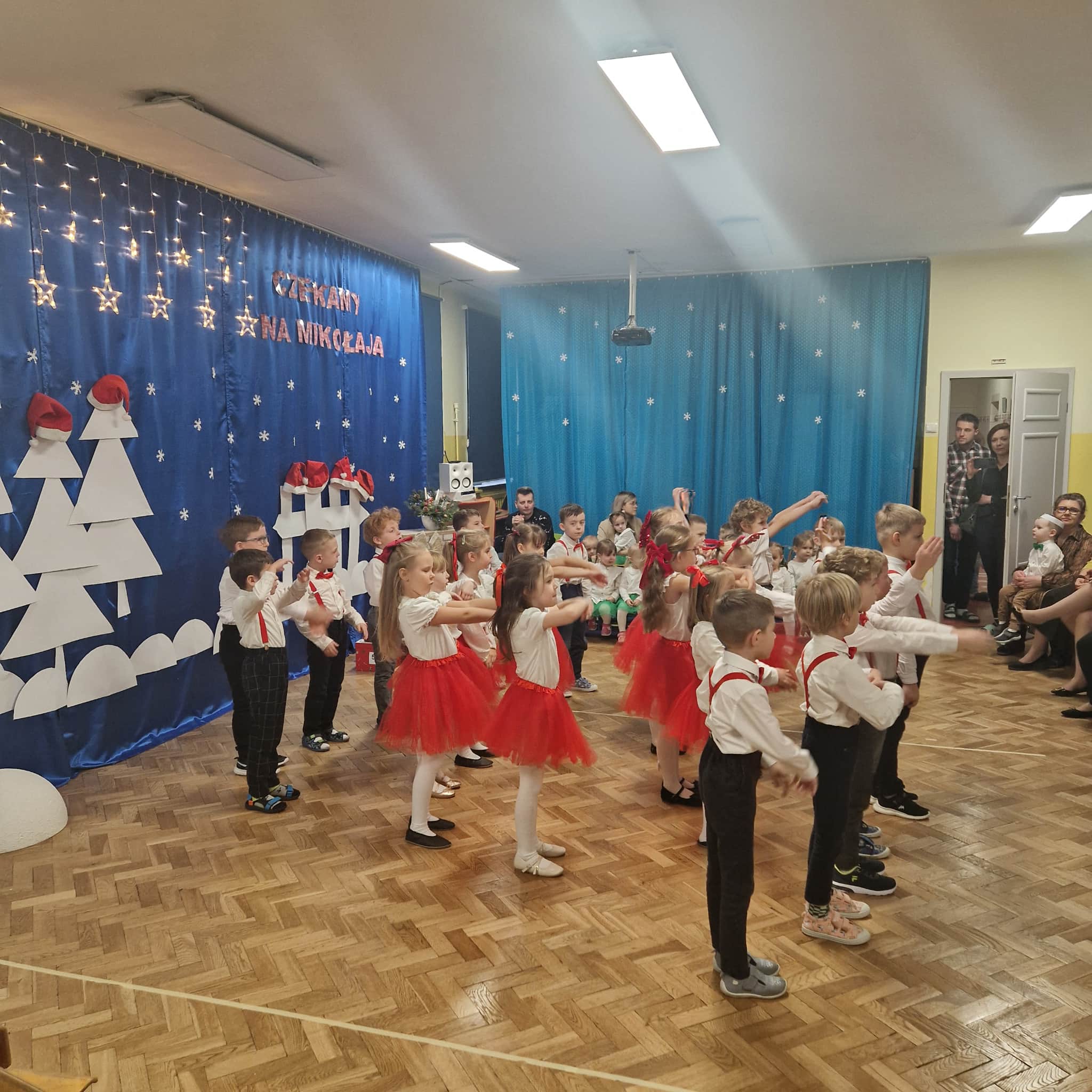 Z okazji zbliżających się Świąt Bożego Narodzenia 05.12.2025r w naszym przedszkolu odbyło się Świąteczne spotkanie z rodzicami. W gwarze przedświątecznych przygotowań, zatrzymaliśmy się na chwilę, aby nie przeoczyć istoty Świat Bożego Narodzenia. Wigilia w gronie przedszkolnej rodziny napełniła serca wszystkich obecnych niezwykłą radością i życzliwością. Bożonarodzeniowy klimat dopełniały świąteczne dekoracje w całym przedszkolu, lampki, świąteczne figurki oraz przystrojona choinka. Wszystkie dzieci zaprezentowały swoim najbliższym program artystyczny, w którym to z wielkim zaangażowaniem recytowały wiersze, tańczyły, śpiewały piosenki, grały na instrumentach muzycznych oraz składały świąteczne życzenia. Ogromną niespodzianką było spotkanie ze Świętym Mikołajem , który obdarował dzieci prezentami. Spotkanie świąteczne upłynęło w miłej i serdecznej atmosferze, z pewnością na długo pozostanie w naszej pamięci.