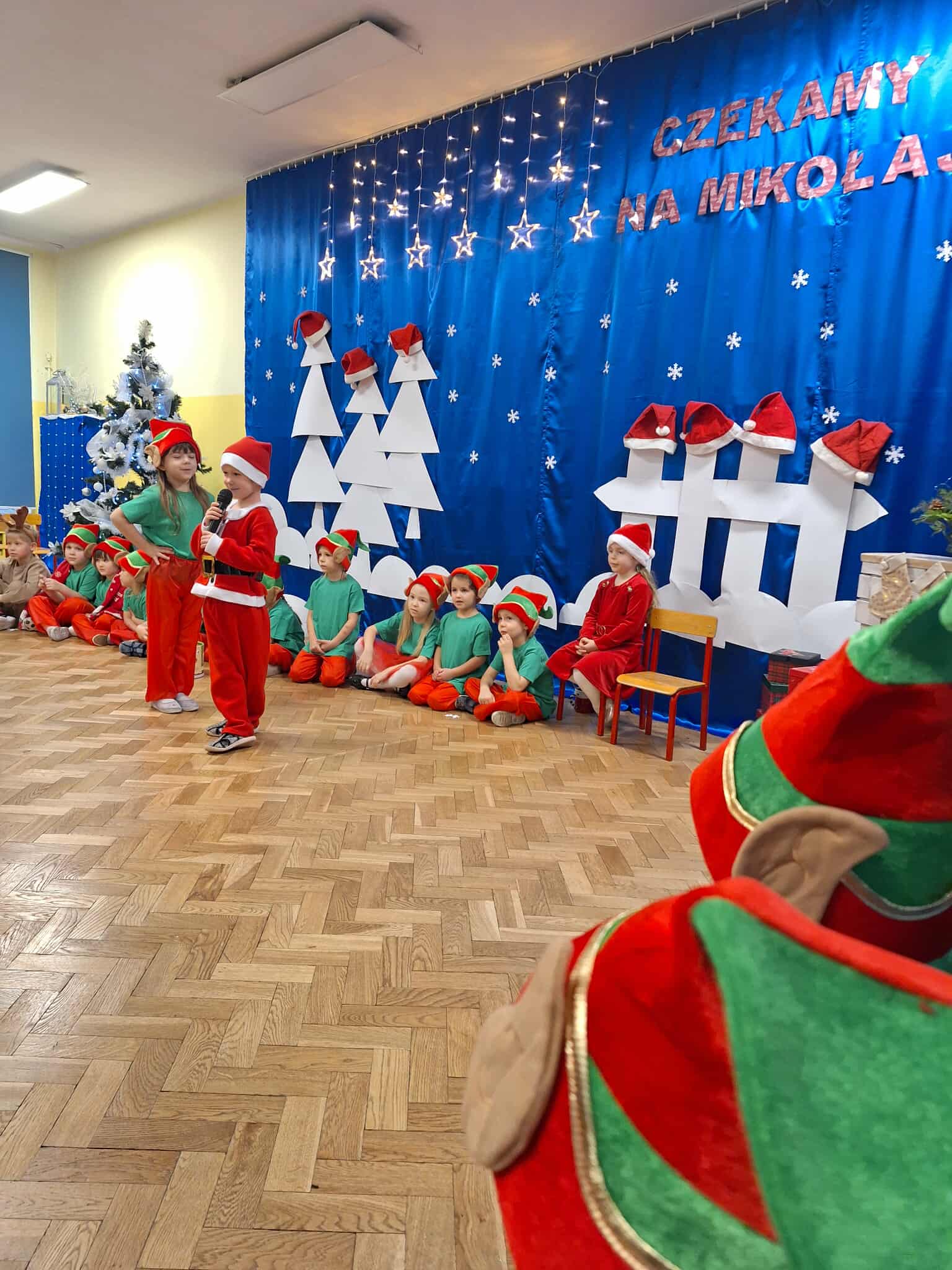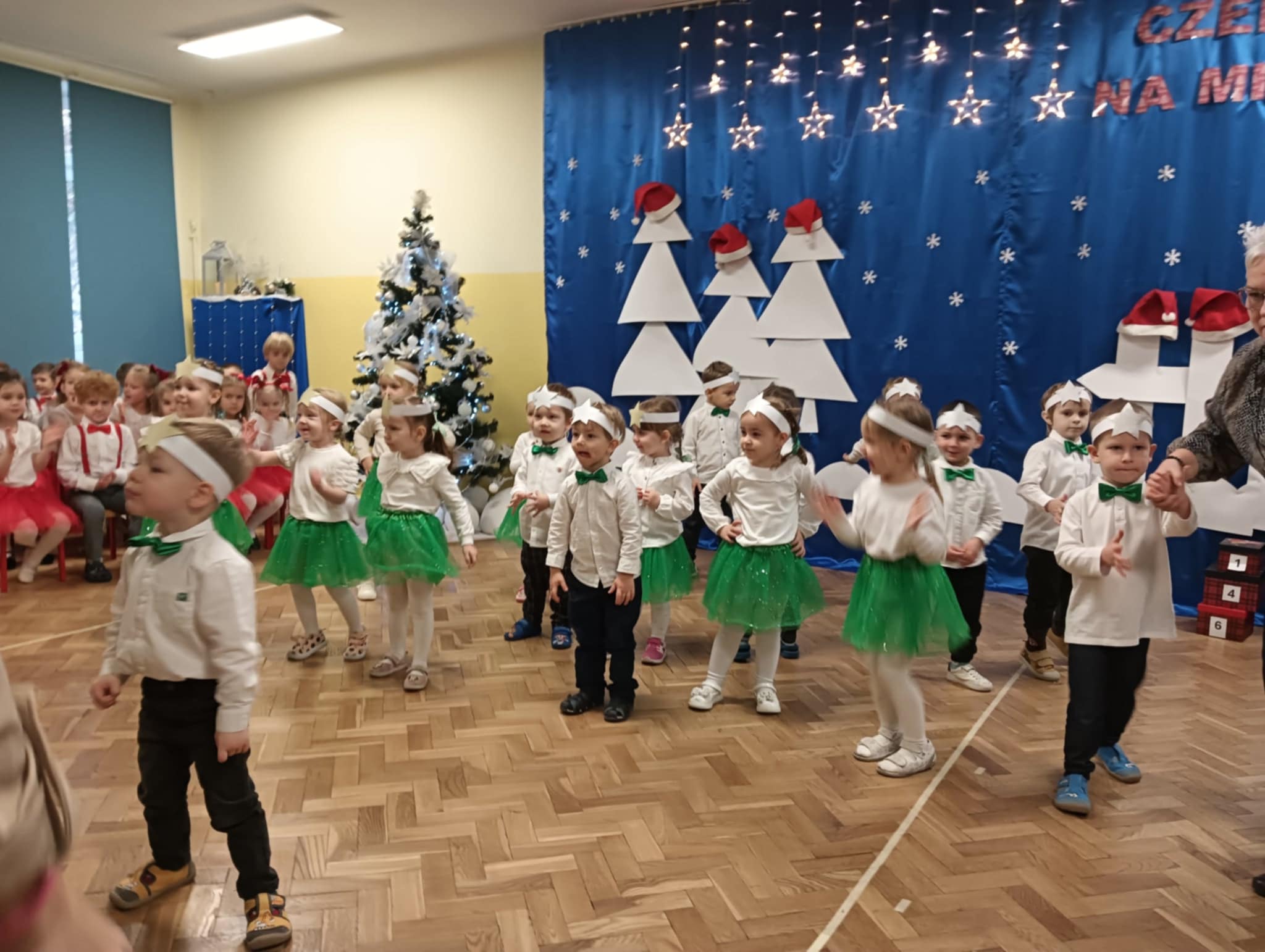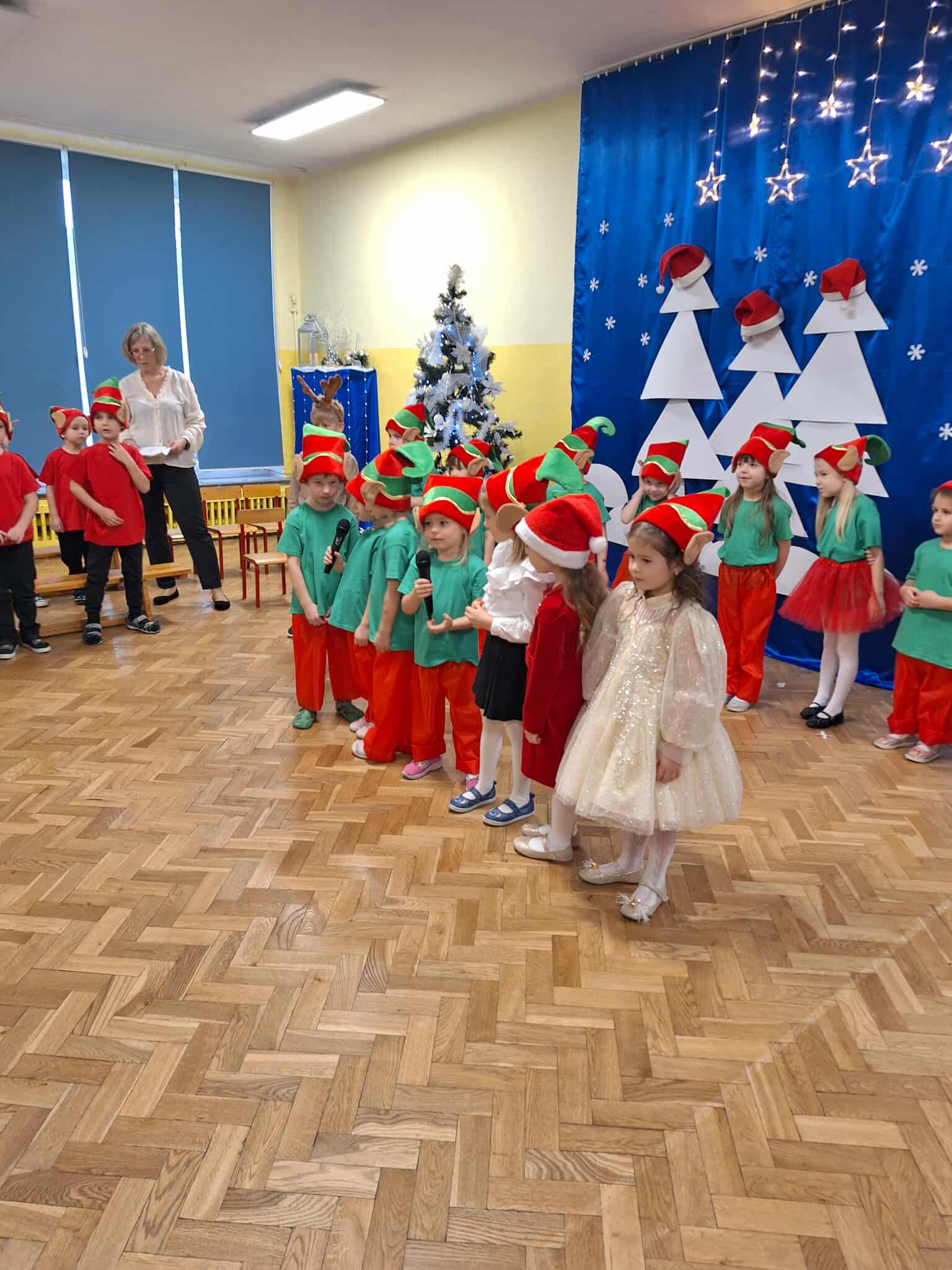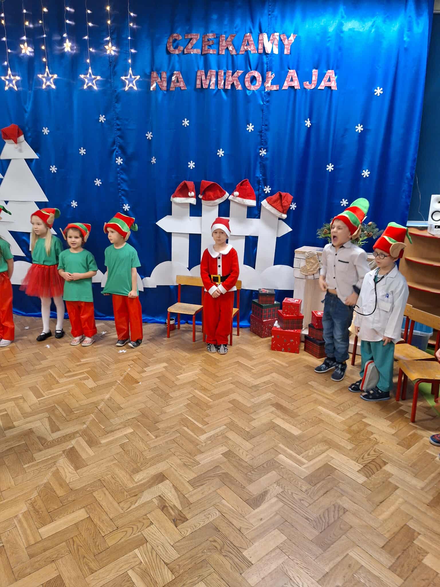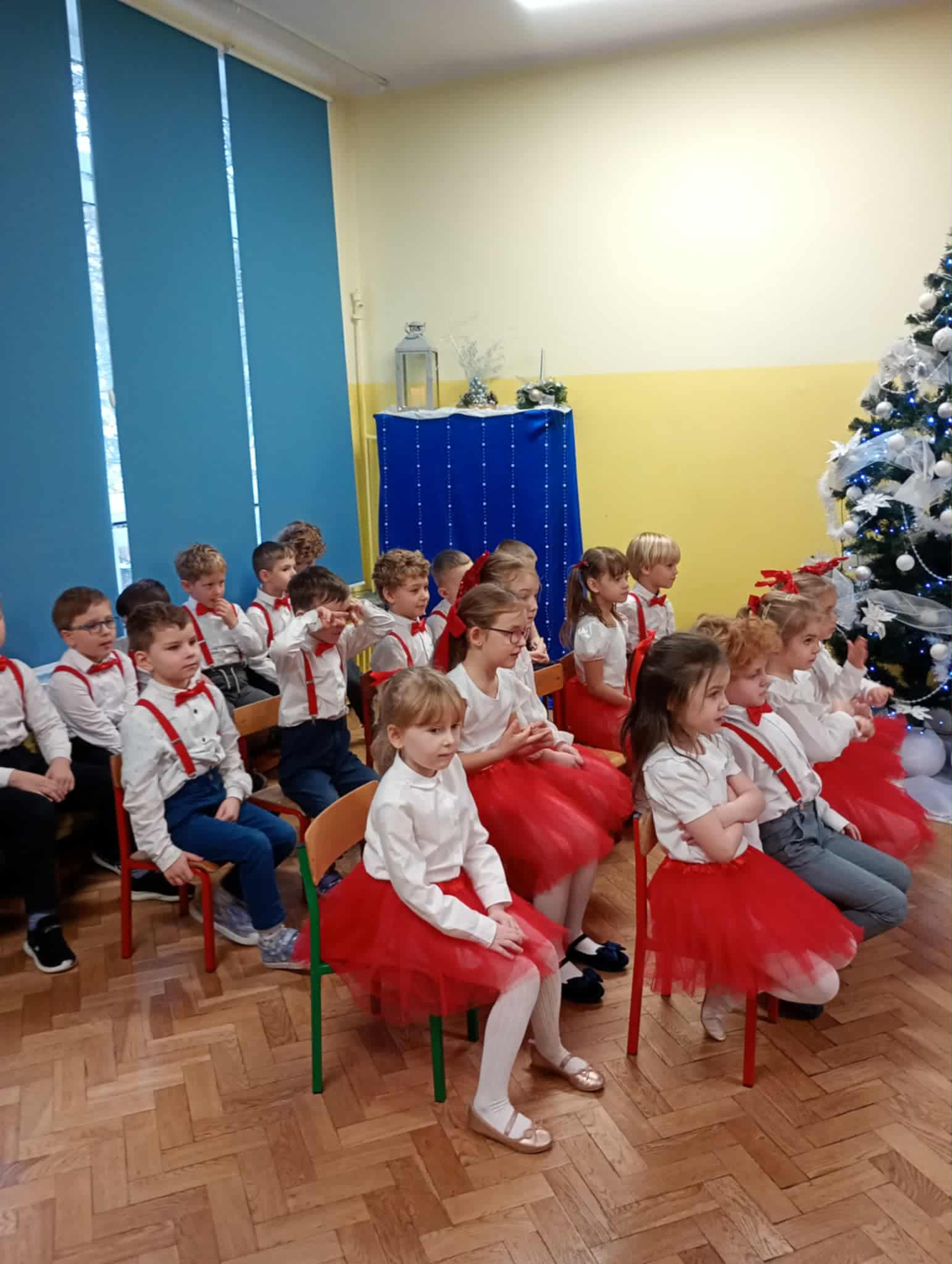 Z okazji zbliżających się Świąt Bożego Narodzenia 05.12.2025r w naszym przedszkolu odbyło się Świąteczne spotkanie z rodzicami. W gwarze przedświątecznych przygotowań, zatrzymaliśmy się na chwilę, aby nie przeoczyć istoty Świat Bożego Narodzenia. Wigilia w gronie przedszkolnej rodziny napełniła serca wszystkich obecnych niezwykłą radością i życzliwością. Bożonarodzeniowy klimat dopełniały świąteczne dekoracje w całym przedszkolu, lampki, świąteczne figurki oraz przystrojona choinka. Wszystkie dzieci zaprezentowały swoim najbliższym program artystyczny, w którym to z wielkim zaangażowaniem recytowały wiersze, tańczyły, śpiewały piosenki, grały na instrumentach muzycznych oraz składały świąteczne życzenia. Ogromną niespodzianką było spotkanie ze Świętym Mikołajem , który obdarował dzieci prezentami. Spotkanie świąteczne upłynęło w miłej i serdecznej atmosferze, z pewnością na długo pozostanie w naszej pamięci.