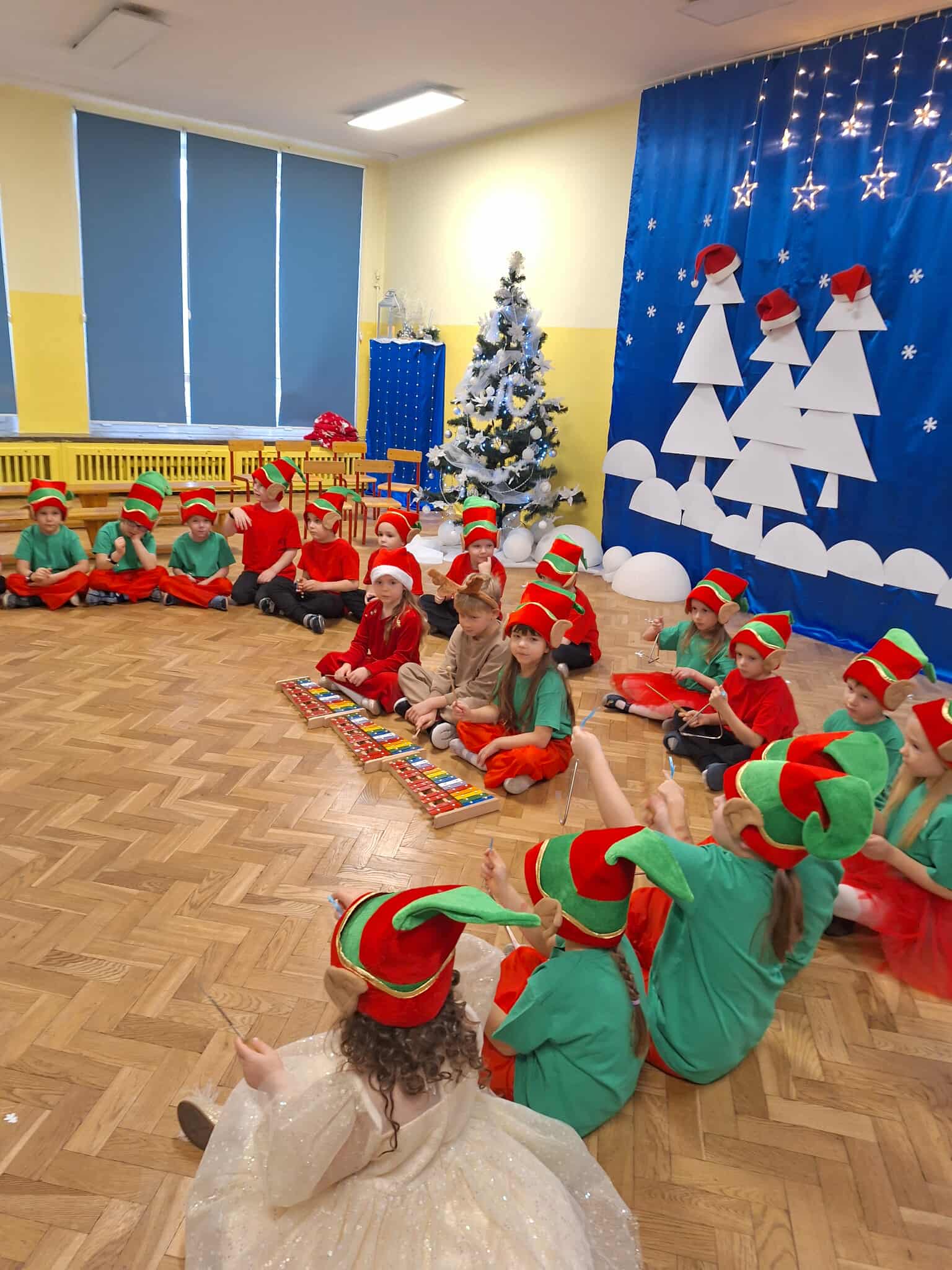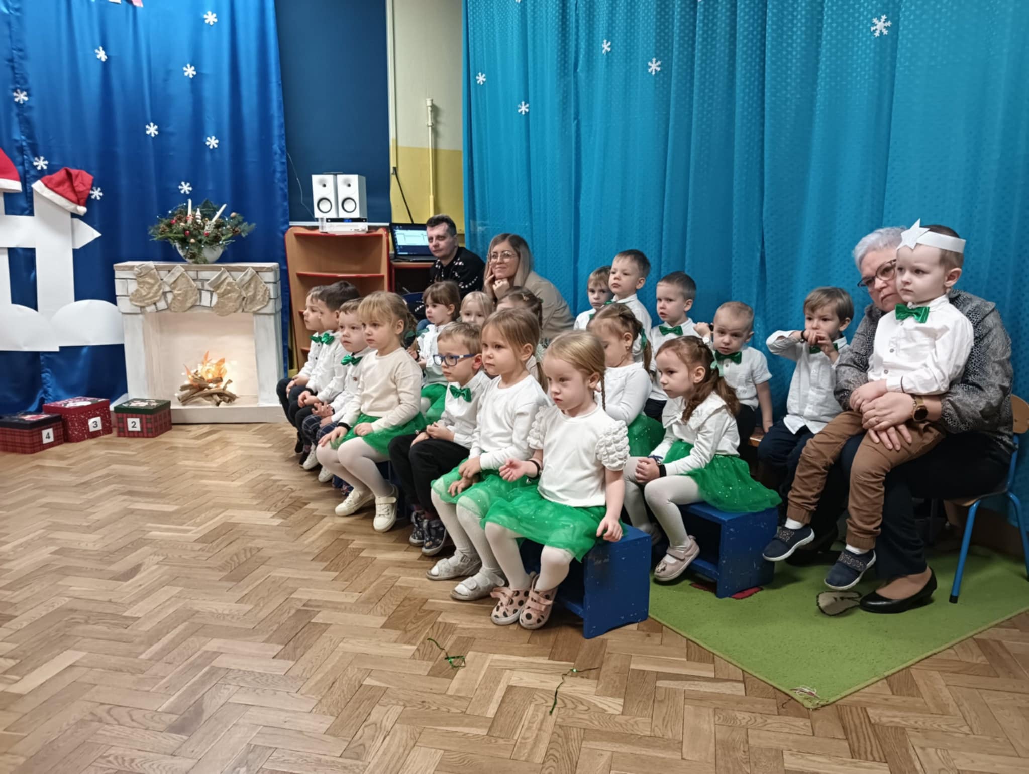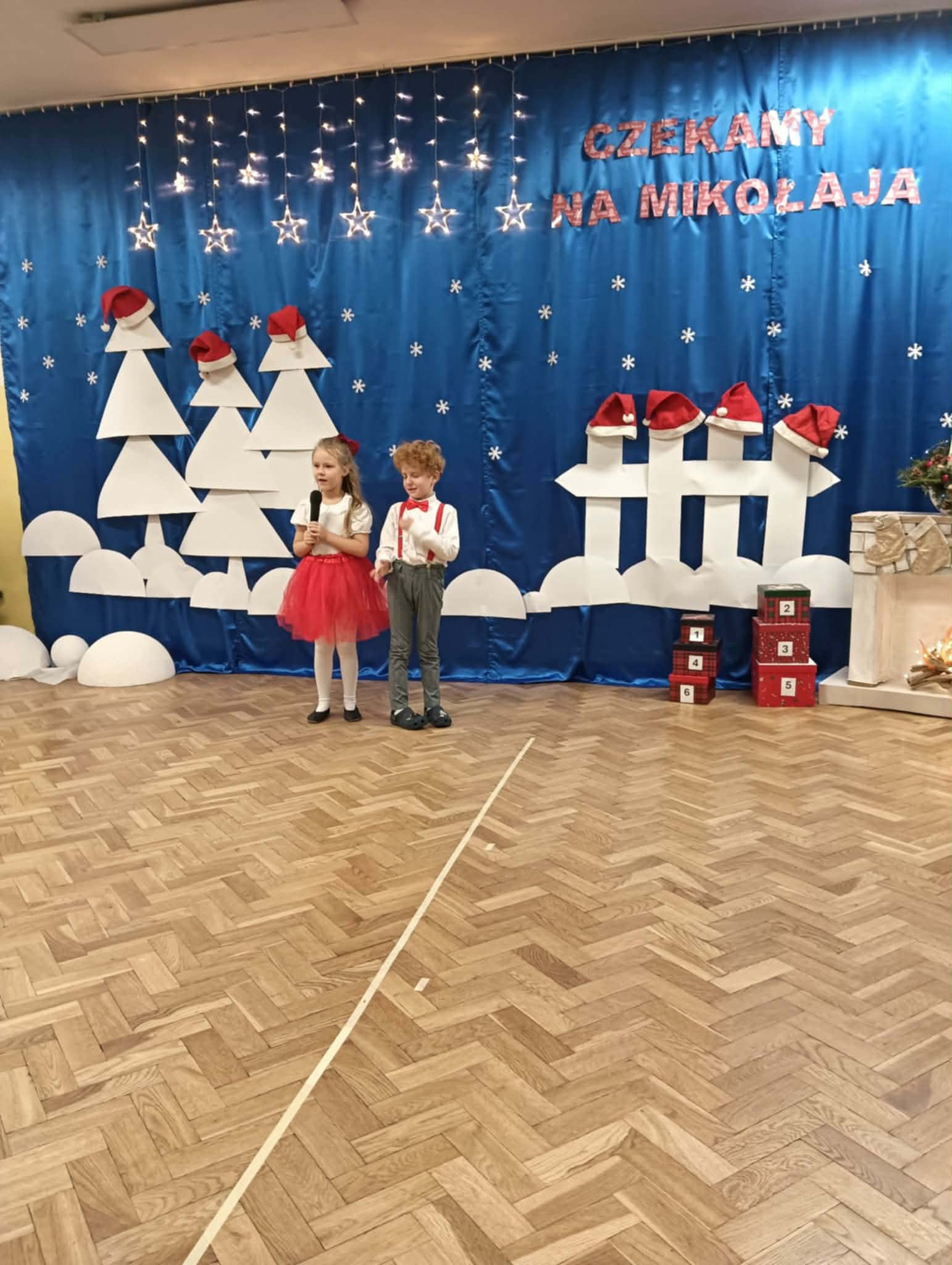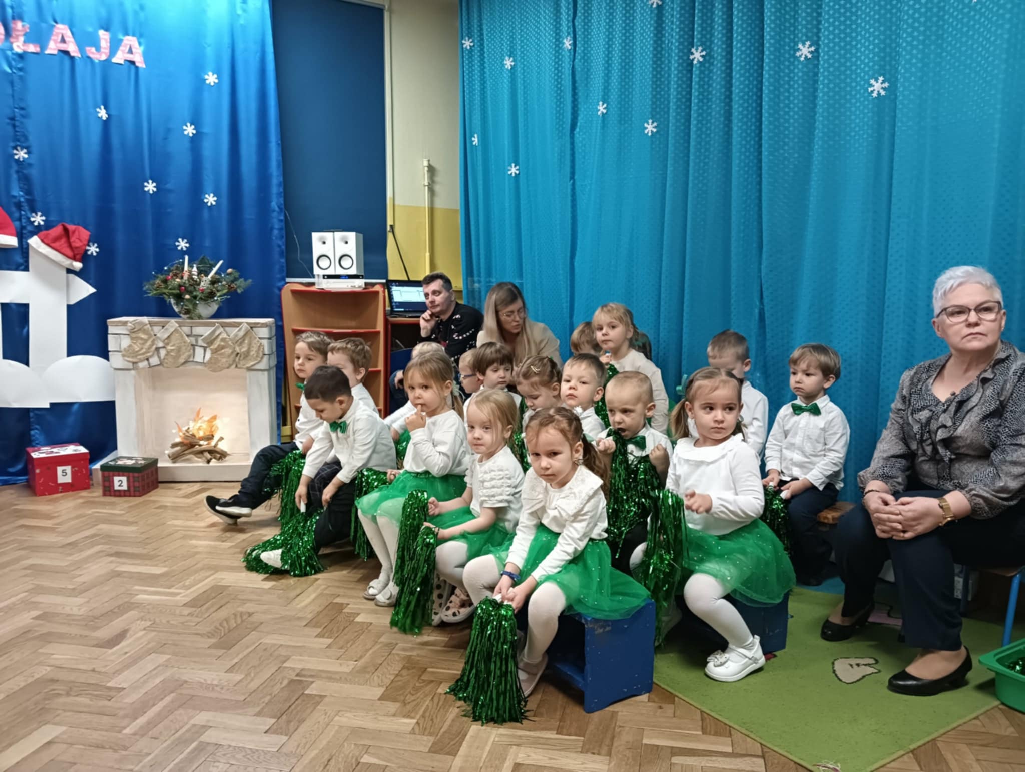 Z okazji zbliżających się Świąt Bożego Narodzenia 05.12.2025r w naszym przedszkolu odbyło się Świąteczne spotkanie z rodzicami. W gwarze przedświątecznych przygotowań, zatrzymaliśmy się na chwilę, aby nie przeoczyć istoty Świat Bożego Narodzenia. Wigilia w gronie przedszkolnej rodziny napełniła serca wszystkich obecnych niezwykłą radością i życzliwością. Bożonarodzeniowy klimat dopełniały świąteczne dekoracje w całym przedszkolu, lampki, świąteczne figurki oraz przystrojona choinka. Wszystkie dzieci zaprezentowały swoim najbliższym program artystyczny, w którym to z wielkim zaangażowaniem recytowały wiersze, tańczyły, śpiewały piosenki, grały na instrumentach muzycznych oraz składały świąteczne życzenia. Ogromną niespodzianką było spotkanie ze Świętym Mikołajem , który obdarował dzieci prezentami. Spotkanie świąteczne upłynęło w miłej i serdecznej atmosferze, z pewnością na długo pozostanie w naszej pamięci.