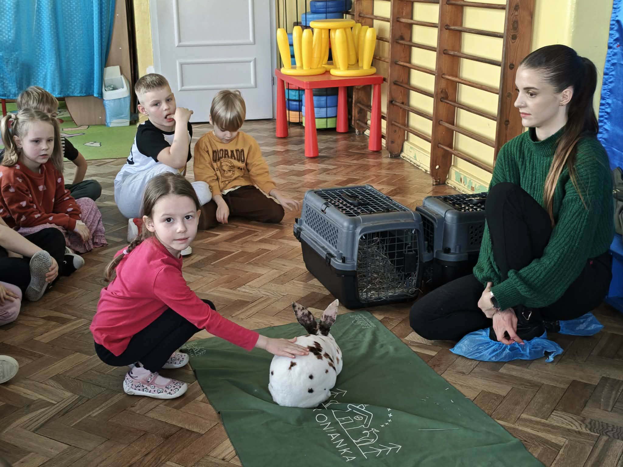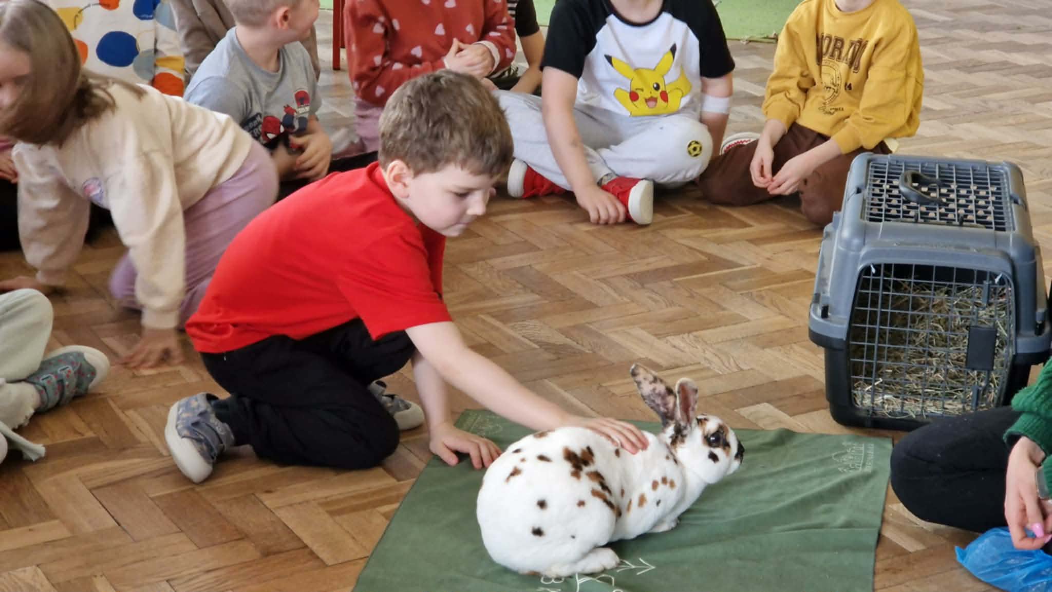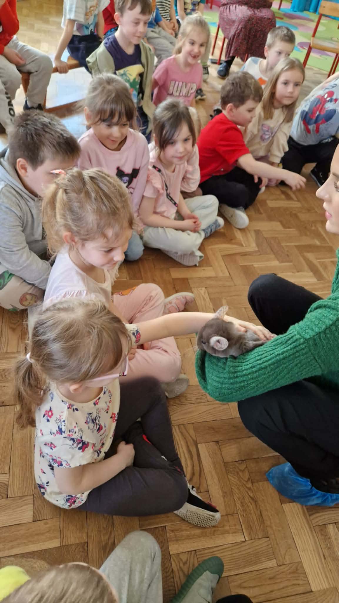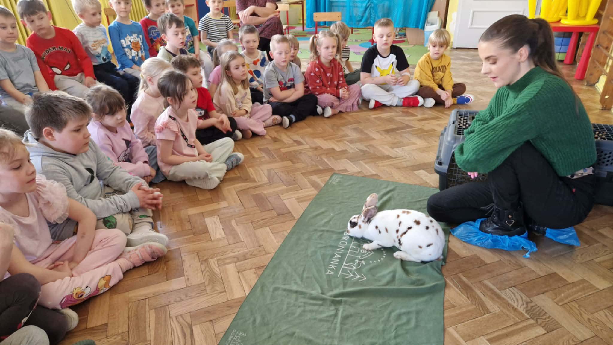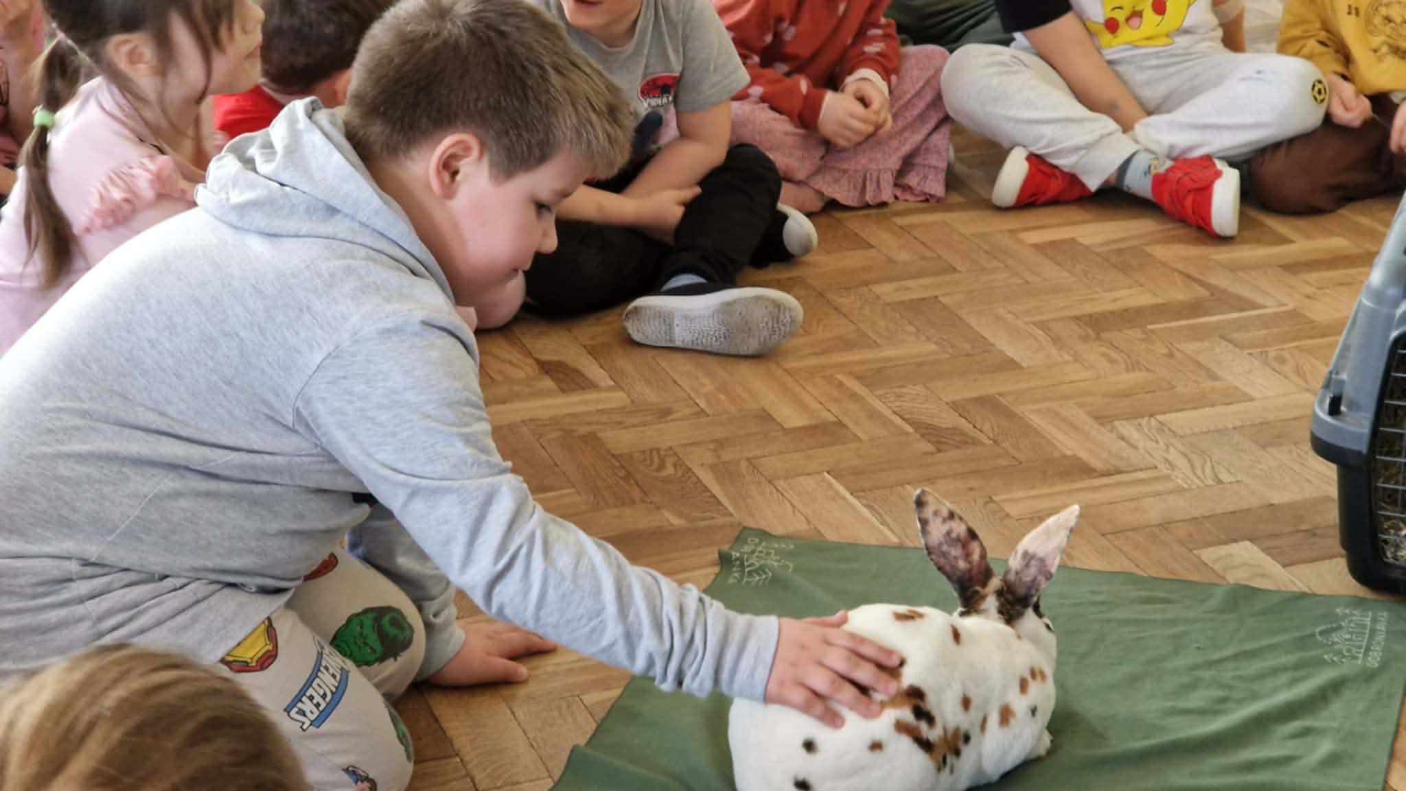 Dziś nasze przedszkole odwiedzili nietypowi goście. W ramach podziękowania za włączenie się w tegoroczną zbiórkę karmy i akcesoriów dla zwierząt potrzebujących z Łódzkiego Towarzystwa nad zwierzętami wolontariuszki z Dobronianki przybyły do nas ze zwierzętami (szynszyla i króliczek) przeprowadzając prelekcję z zakresu ochrony praw zwierząt i właściwej opieki nad zwierzętami. Podczas dzisiejszego spotkania dzieci nauczyły się, jak podchodzić do zwierzaka, gdzie można go głaskać, a jakich gestów unikać. Spotkanie ze zwierzętami to dla dzieci naturalna lekcja empatii.
