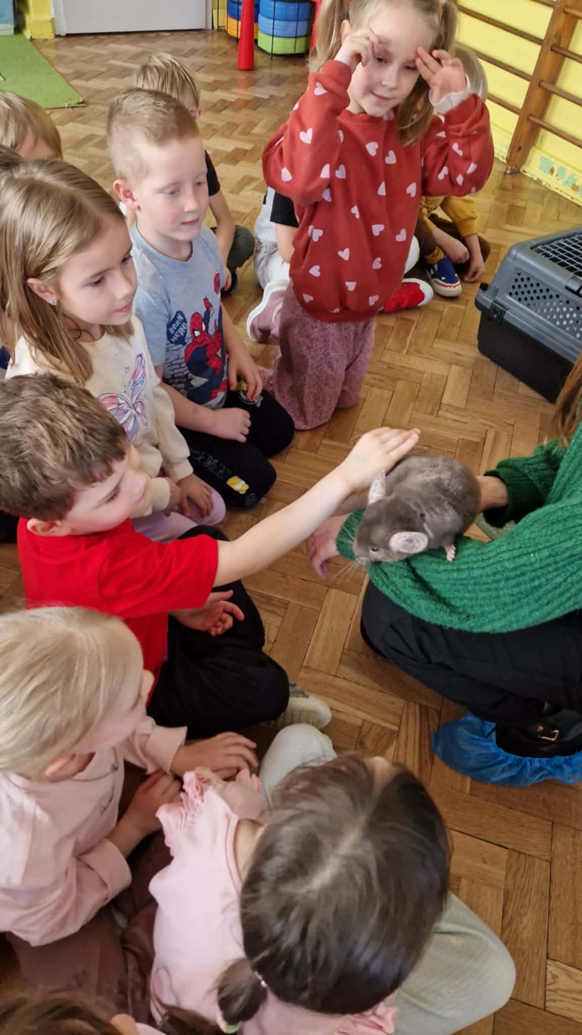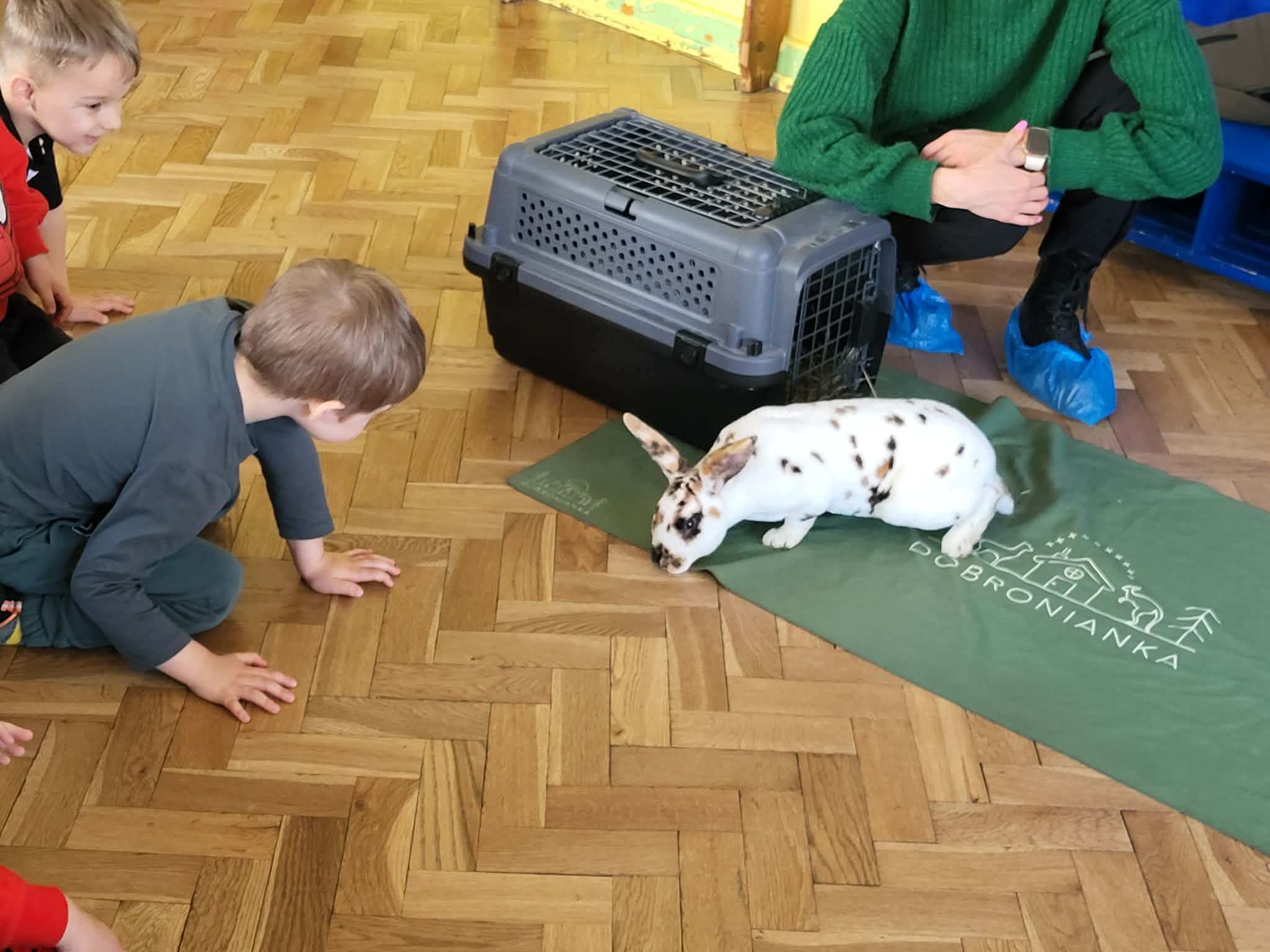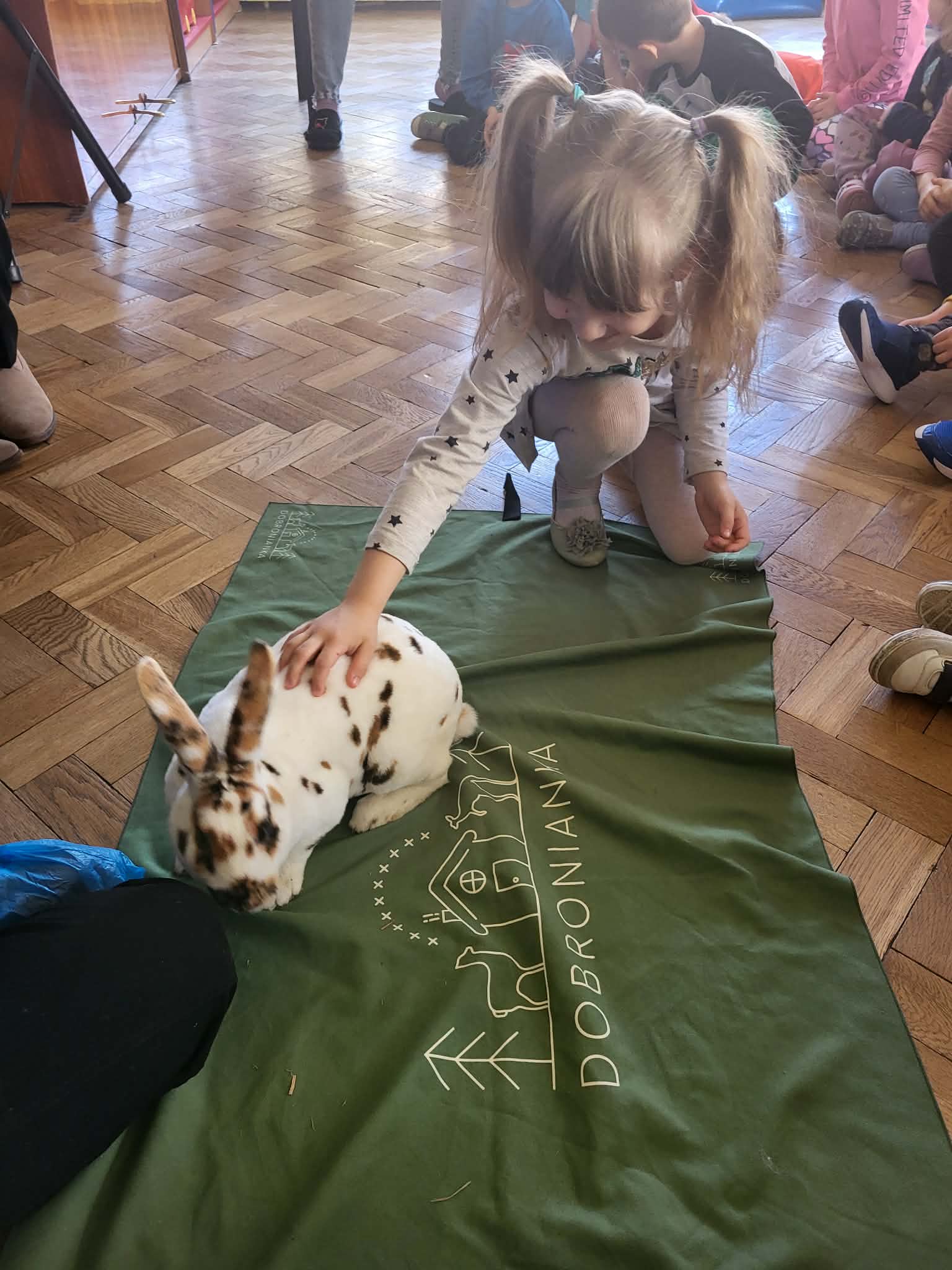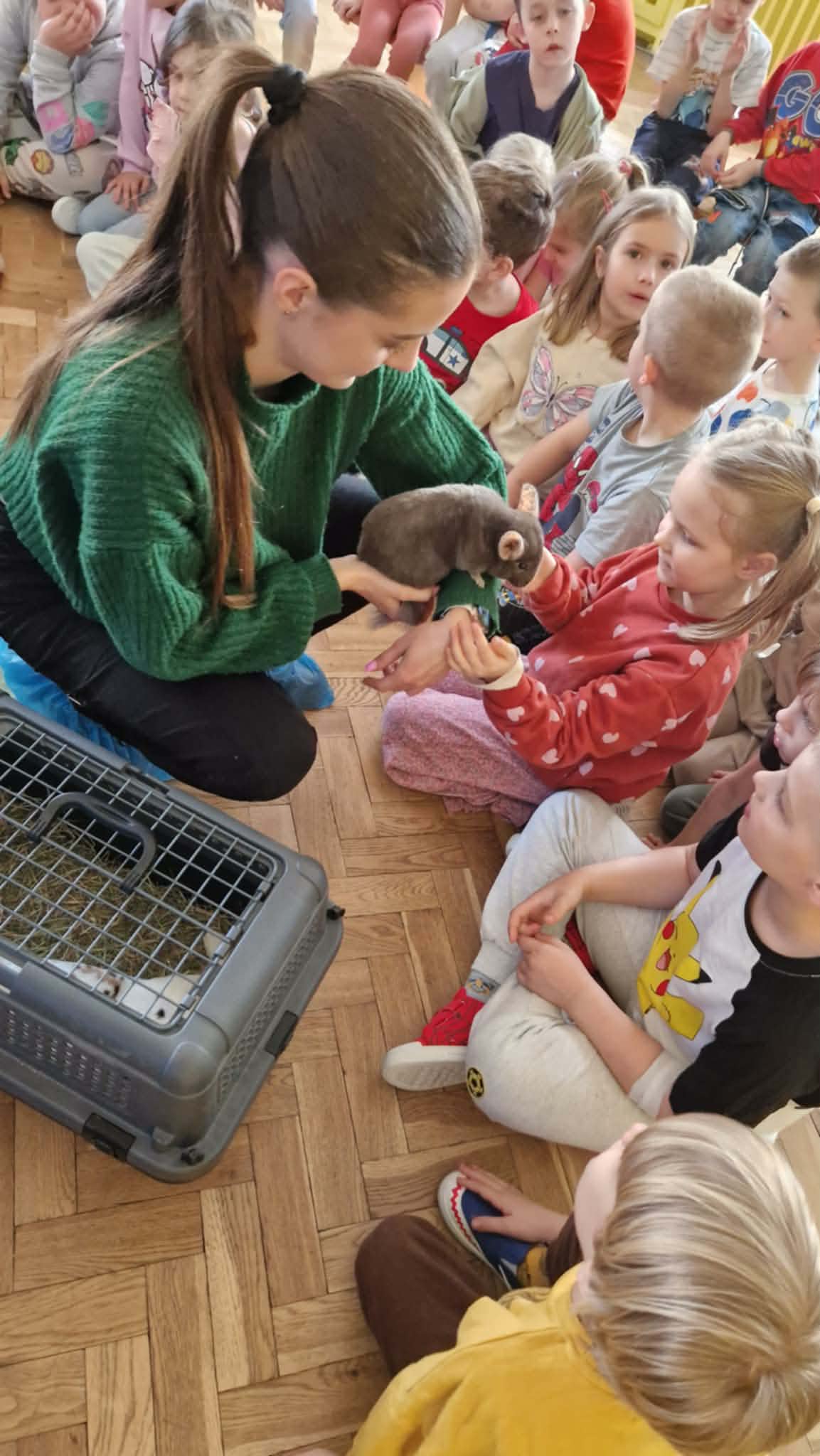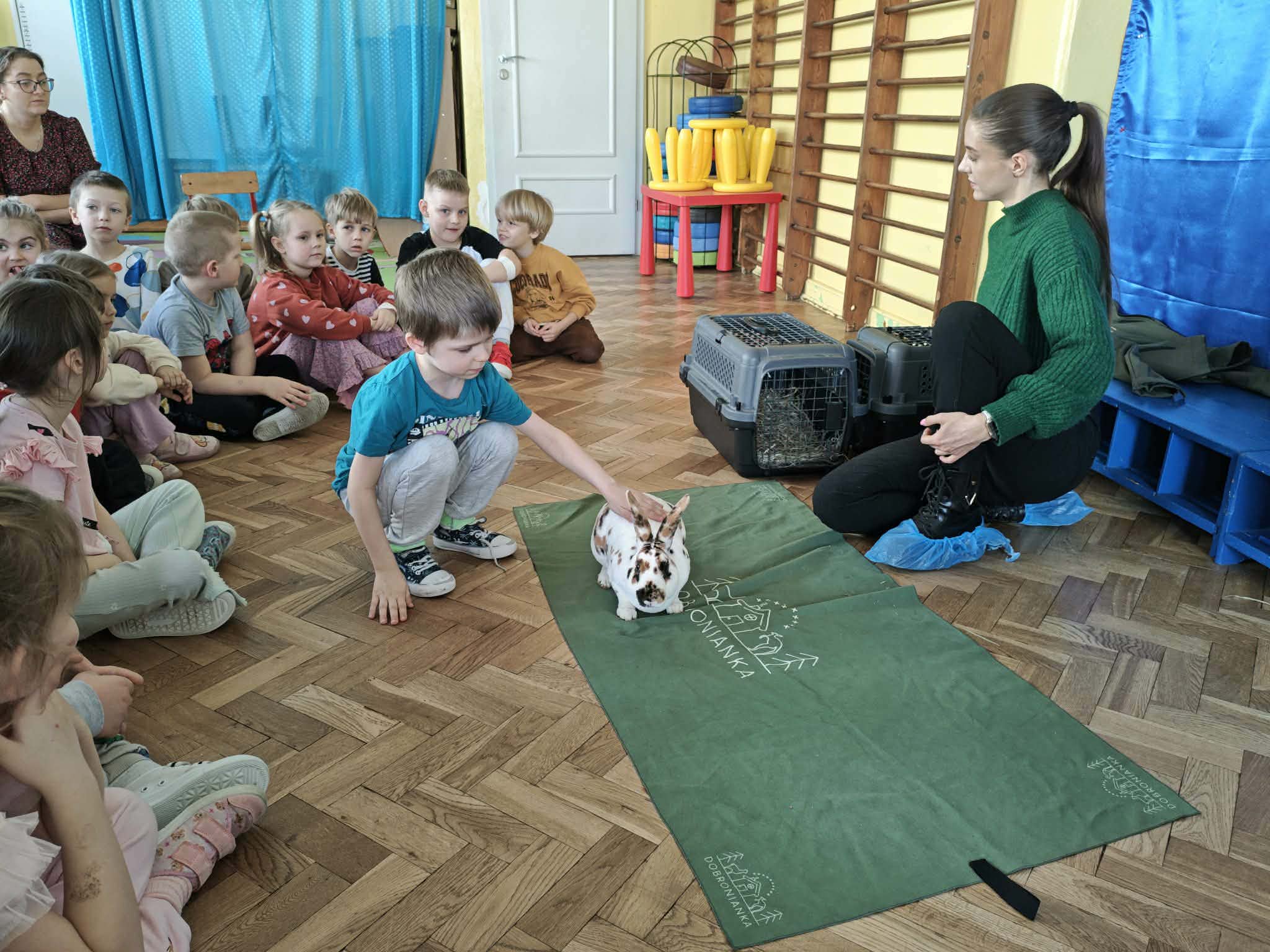 Dziś nasze przedszkole odwiedzili nietypowi goście. W ramach podziękowania za włączenie się w tegoroczną zbiórkę karmy i akcesoriów dla zwierząt potrzebujących z Łódzkiego Towarzystwa nad zwierzętami wolontariuszki z Dobronianki przybyły do nas ze zwierzętami (szynszyla i króliczek) przeprowadzając prelekcję z zakresu ochrony praw zwierząt i właściwej opieki nad zwierzętami. Podczas dzisiejszego spotkania dzieci nauczyły się, jak podchodzić do zwierzaka, gdzie można go głaskać, a jakich gestów unikać. Spotkanie ze zwierzętami to dla dzieci naturalna lekcja empatii.