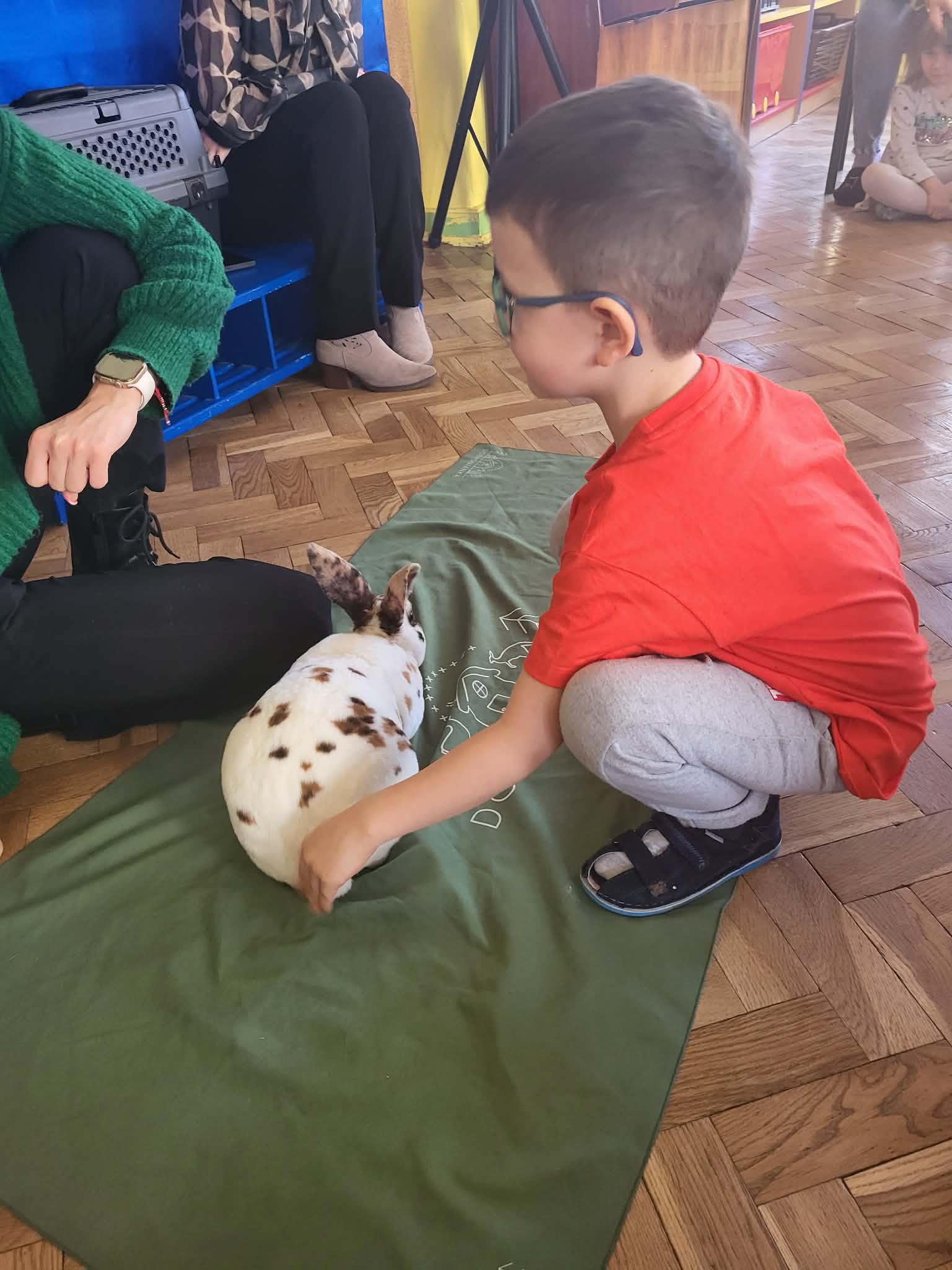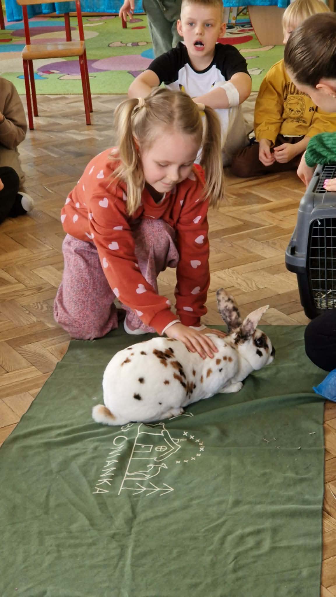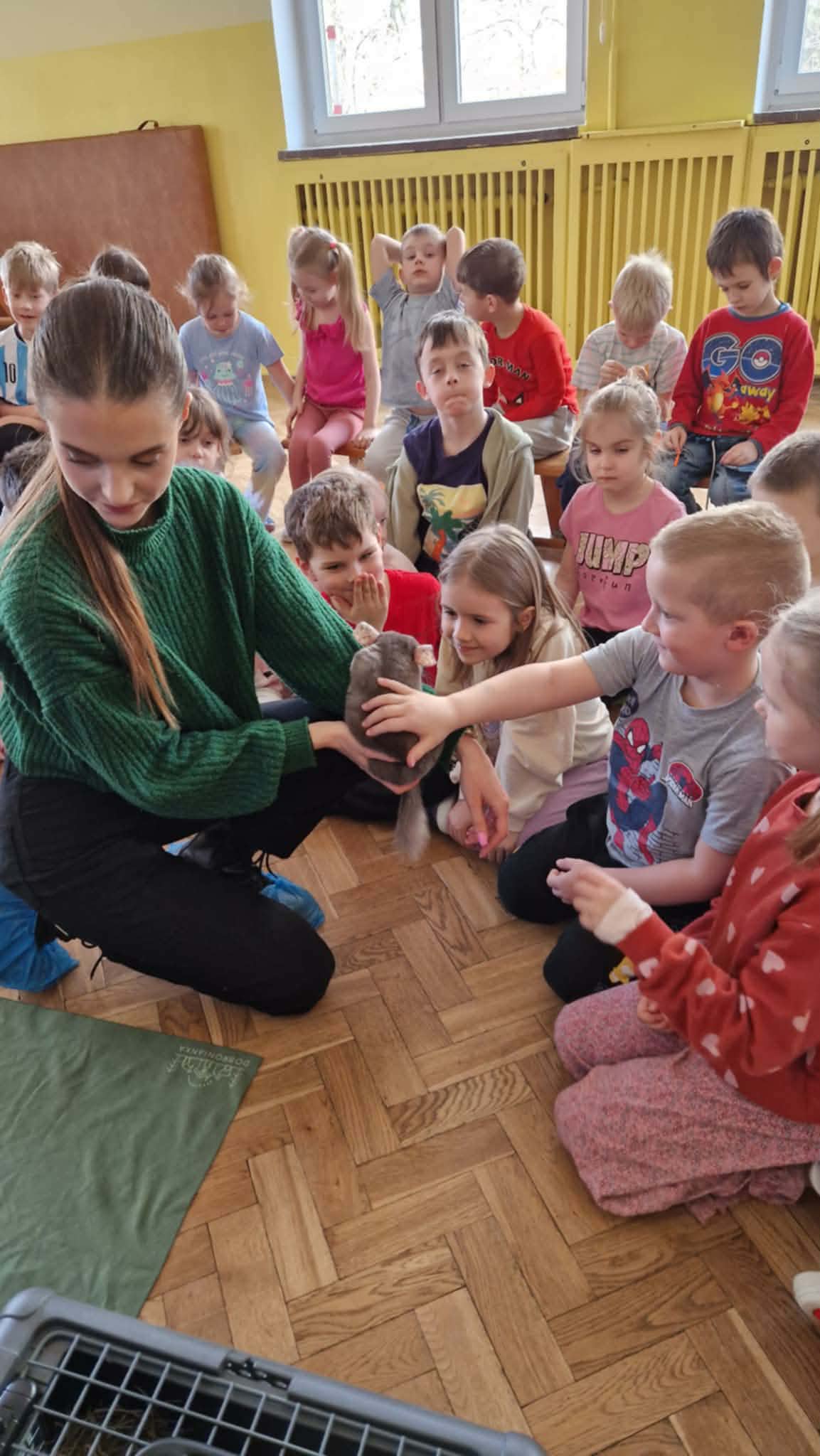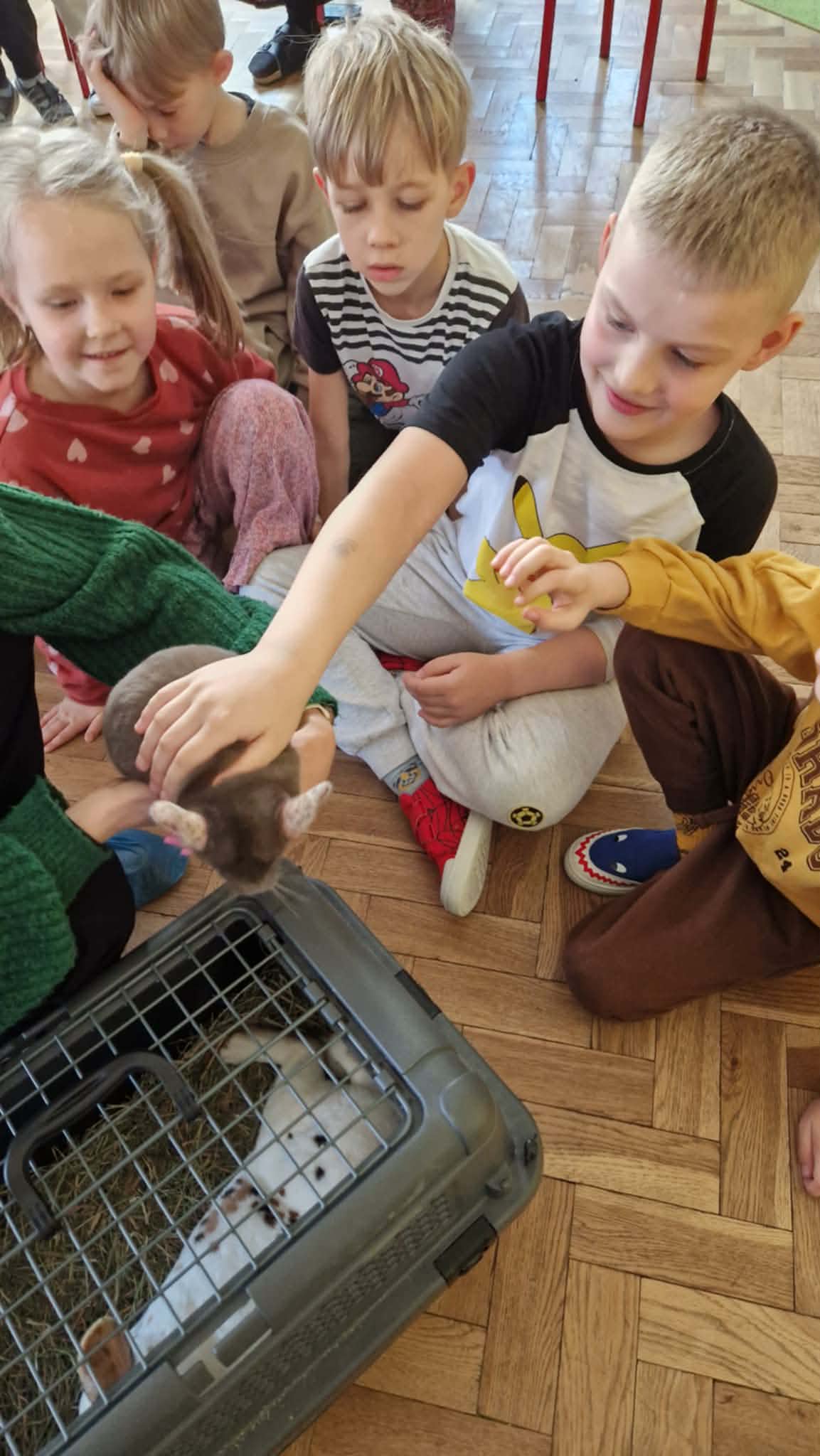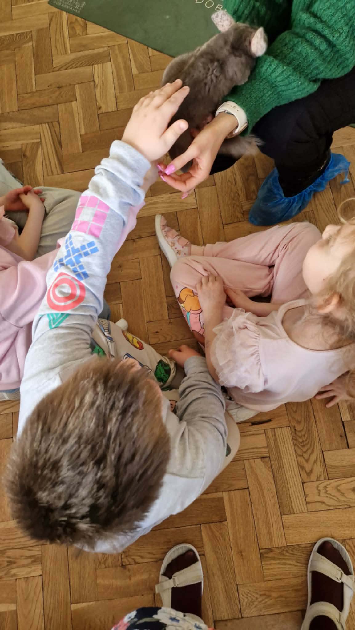 Dziś nasze przedszkole odwiedzili nietypowi goście. W ramach podziękowania za włączenie się w tegoroczną zbiórkę karmy i akcesoriów dla zwierząt potrzebujących z Łódzkiego Towarzystwa nad zwierzętami wolontariuszki z Dobronianki przybyły do nas ze zwierzętami (szynszyla i króliczek) przeprowadzając prelekcję z zakresu ochrony praw zwierząt i właściwej opieki nad zwierzętami. Podczas dzisiejszego spotkania dzieci nauczyły się, jak podchodzić do zwierzaka, gdzie można go głaskać, a jakich gestów unikać. Spotkanie ze zwierzętami to dla dzieci naturalna lekcja empatii.