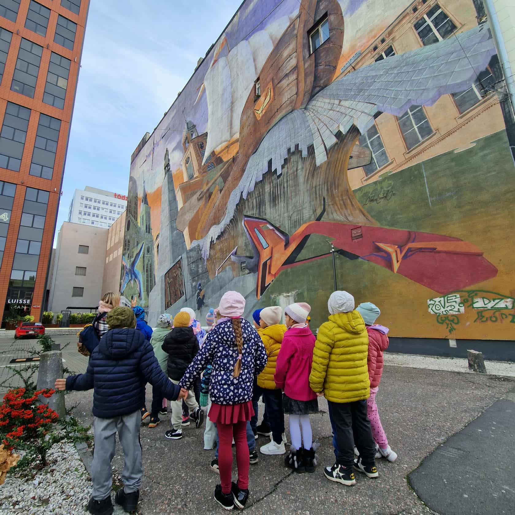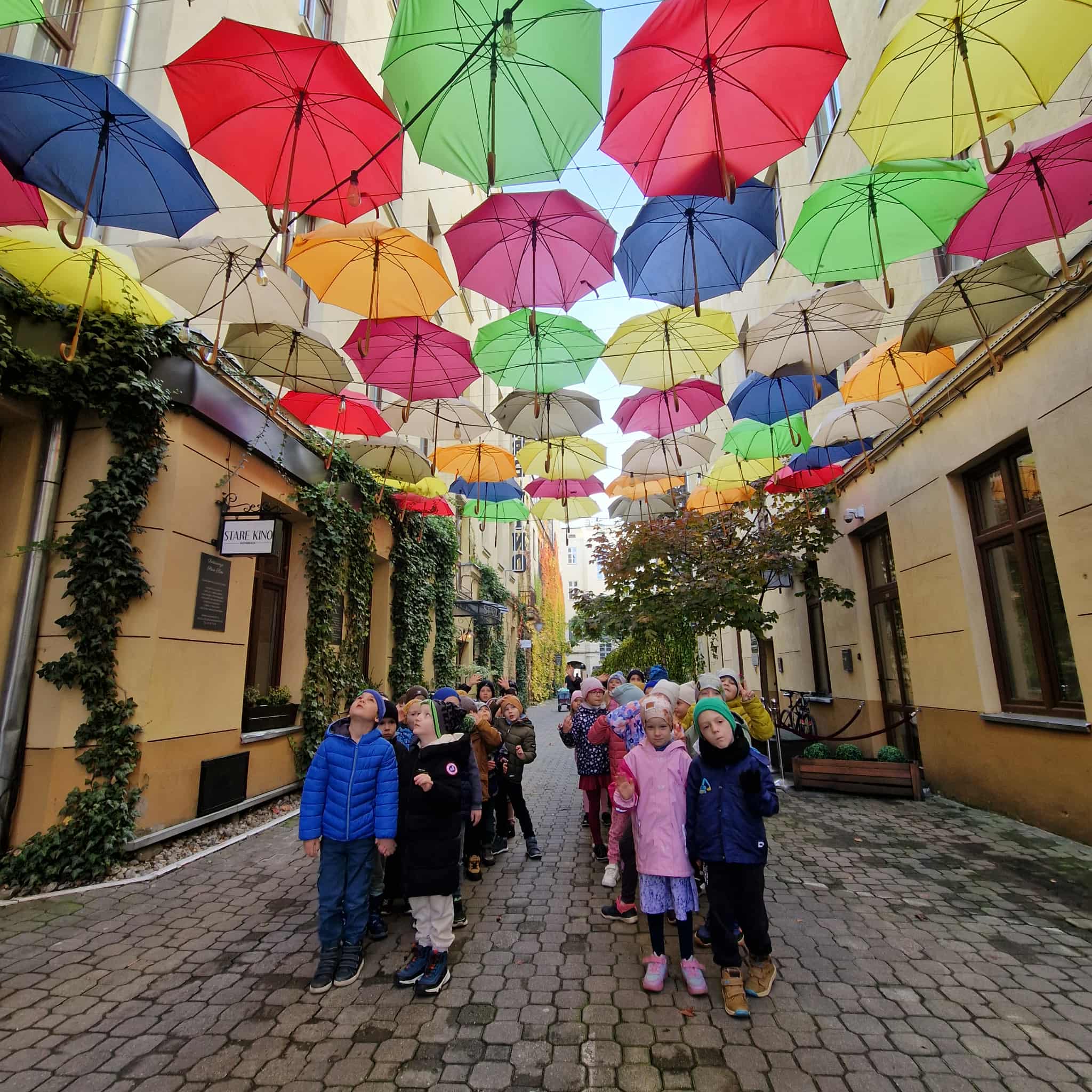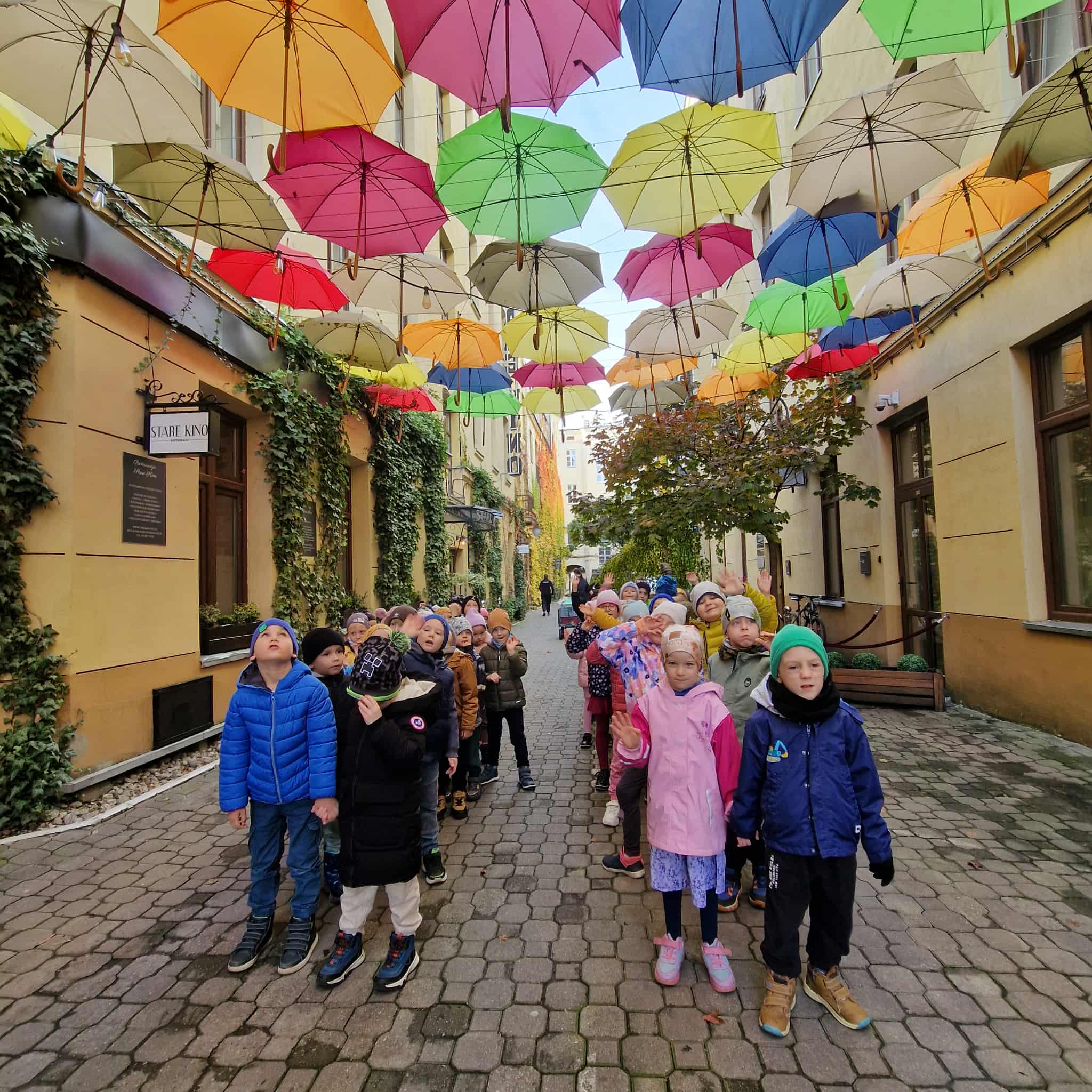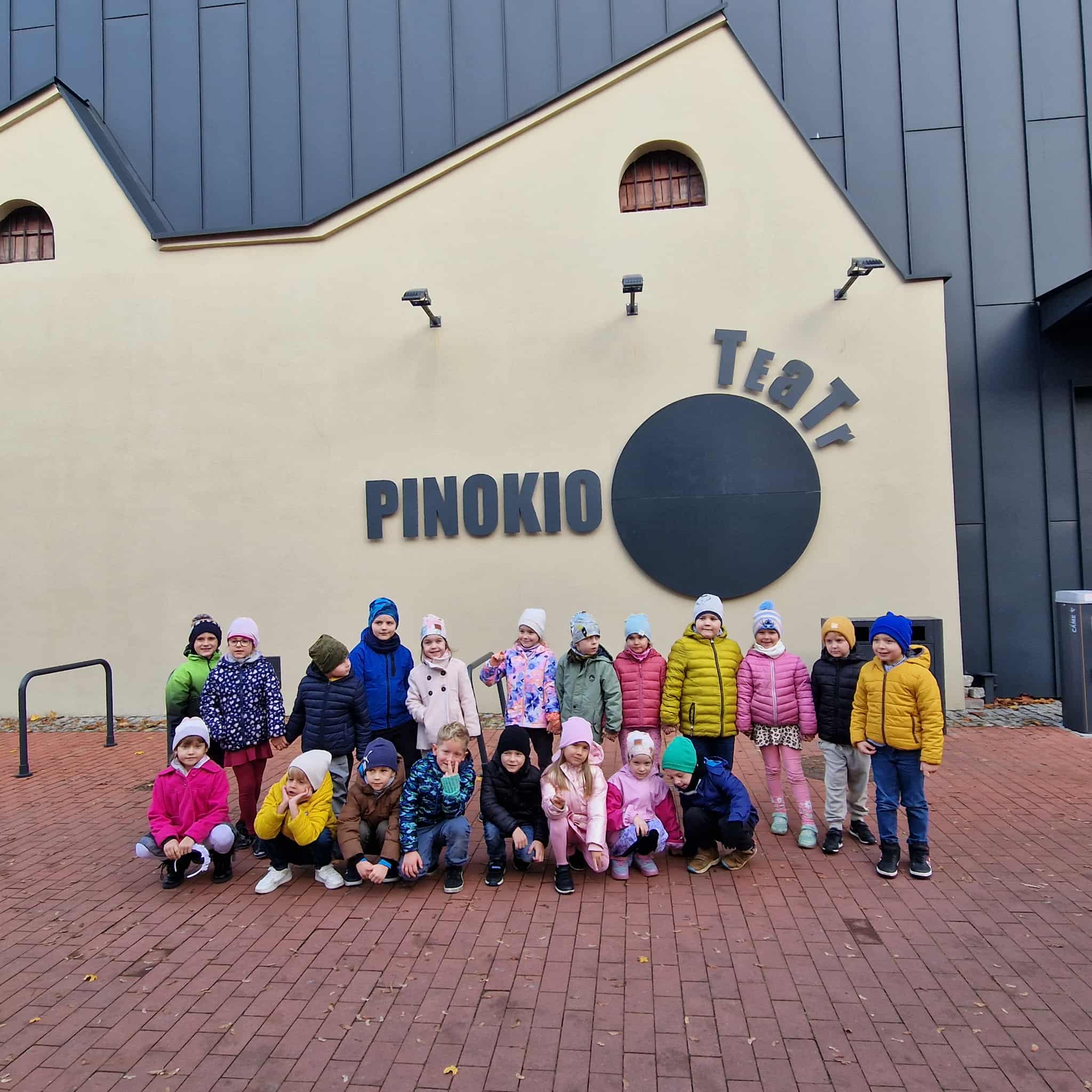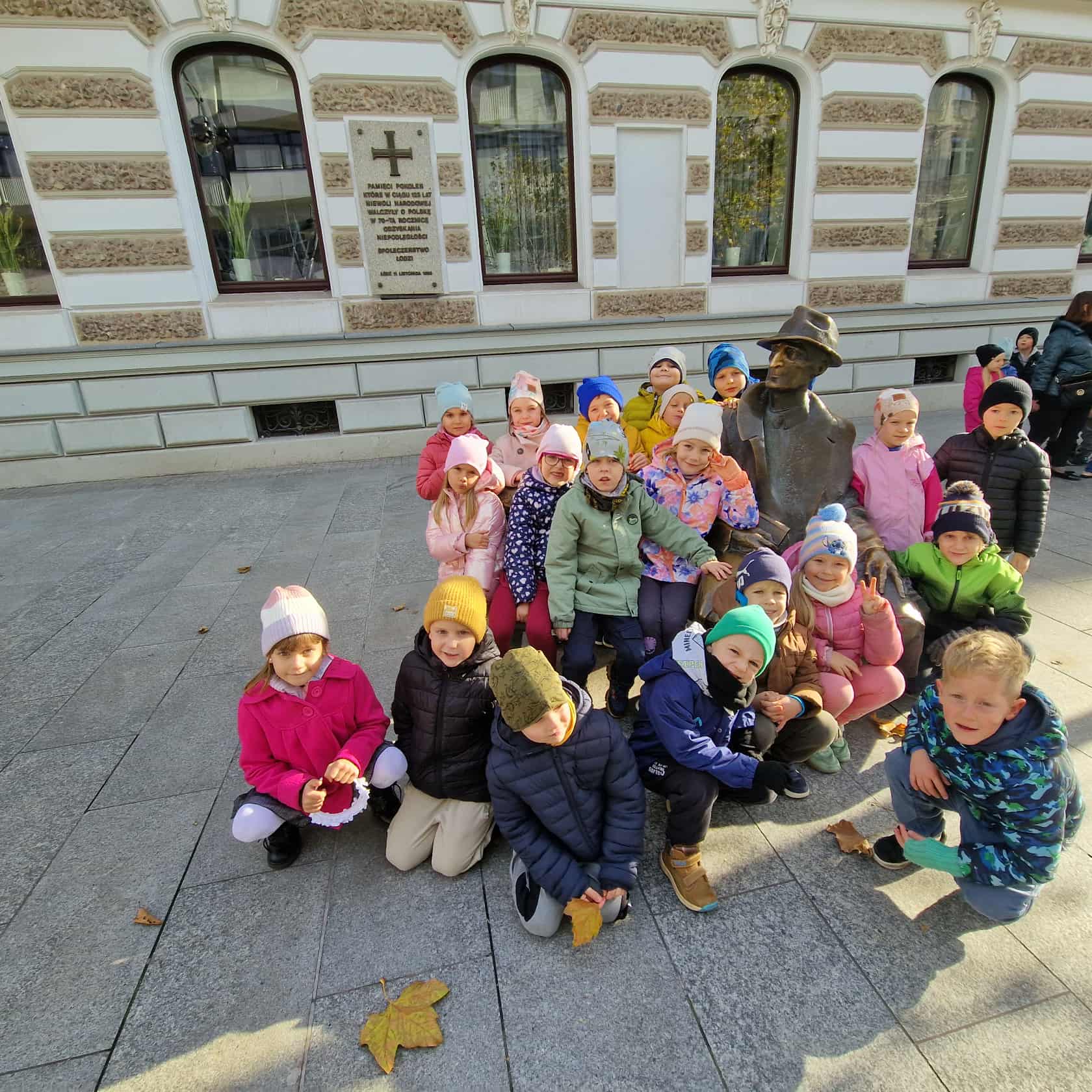 Dziś dzieci z gr. 3 i 4 wybrały się na wycieczkę do Teatru Pinokio na spektakl pt. „Wielka historia małej kreski”. Był to spektakl pełen czułości, wyobraźni i humoru, opowieść o chłopcu, który uczy się wierzyć w siebie. Głównym bohaterem był Ojojek wrażliwy, nieśmiały chłopiec, który nie potrafił odnaleźć się wśród innych. Samotny i zagubiony, natrafia na coś z pozoru nieistotnego: czerwoną kreskę. To spotkanie staje się początkiem niezwykłej podróży w głąb wyobraźni, pełnej emocji i aktów odwagi. Spektakl opowiedziany był całkowicie bez słów za pomocą ruchu, dźwięku, rytmu i obrazów. Aktorzy, lalki i zmieniająca się scenografia tworzyli świat, który poruszył zarówno dzieci, jak i dorosłych. To dzisiejsze spotkanie ze sztuką na długo pozostanie w naszej głowie i sercu. Po spektaklu dzieci wybrały się na spacer po ulicy Piotrkowskiej odwiedzając ławeczkę znanego pisarza dziecięcej literatury Tuwima, zwiedziły łódzkie podwórka, Urząd Miasta Łodzi ,a także podziwiały murale.