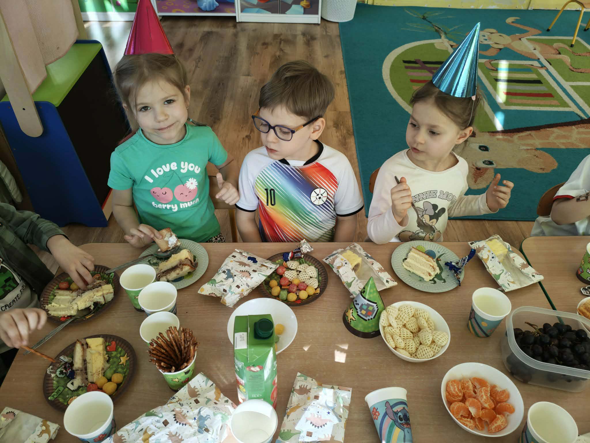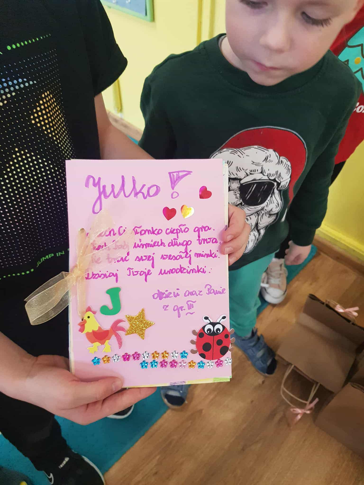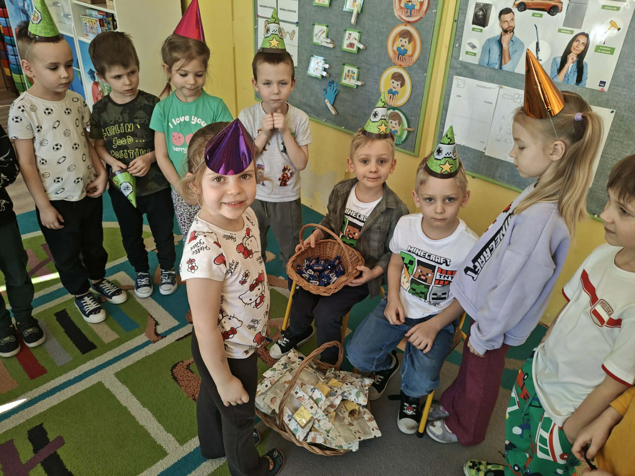 W naszym przedszkolu świętujemy urodziny każdego dziecka. To bardzo ważne wydarzenie pełne niespodzianek i niezapomnianych przeżyć. Dzień urodzin dla każdego dziecka jest dniem szczególnie ważnym. Jest to „Jego dzień”, jest wtedy najważniejszy, znajduje się w centrum uwagi, a inni zastanawiają się w jaki sposób mogą mu sprawić radość i przyjemność. Urodzinowe zabawy naszych Przedszkolaków są pełne niespodzianek, a także laurek i ciepłych życzeń, które powodują wielką radość na twarzach małych Jubilatów.