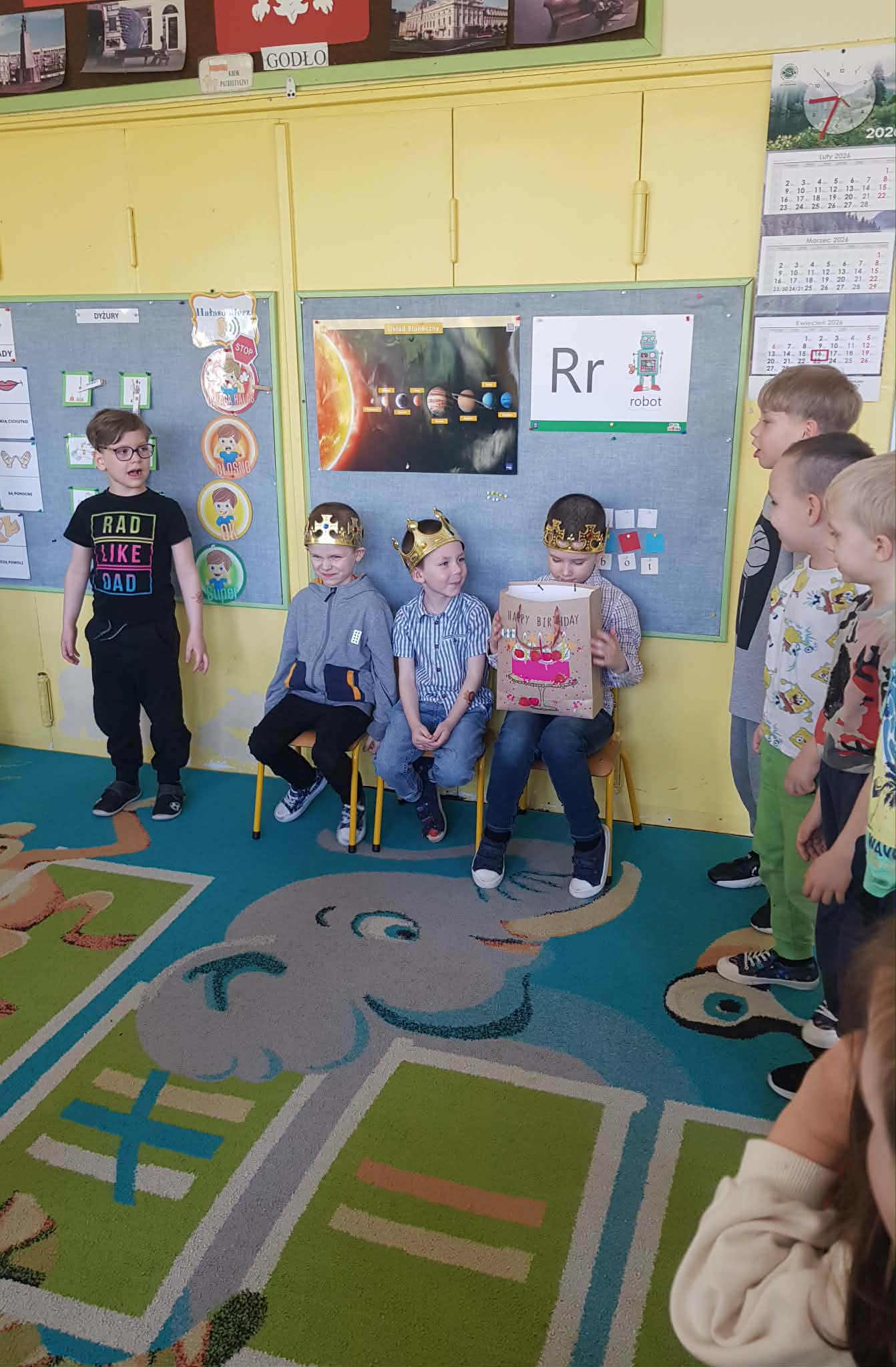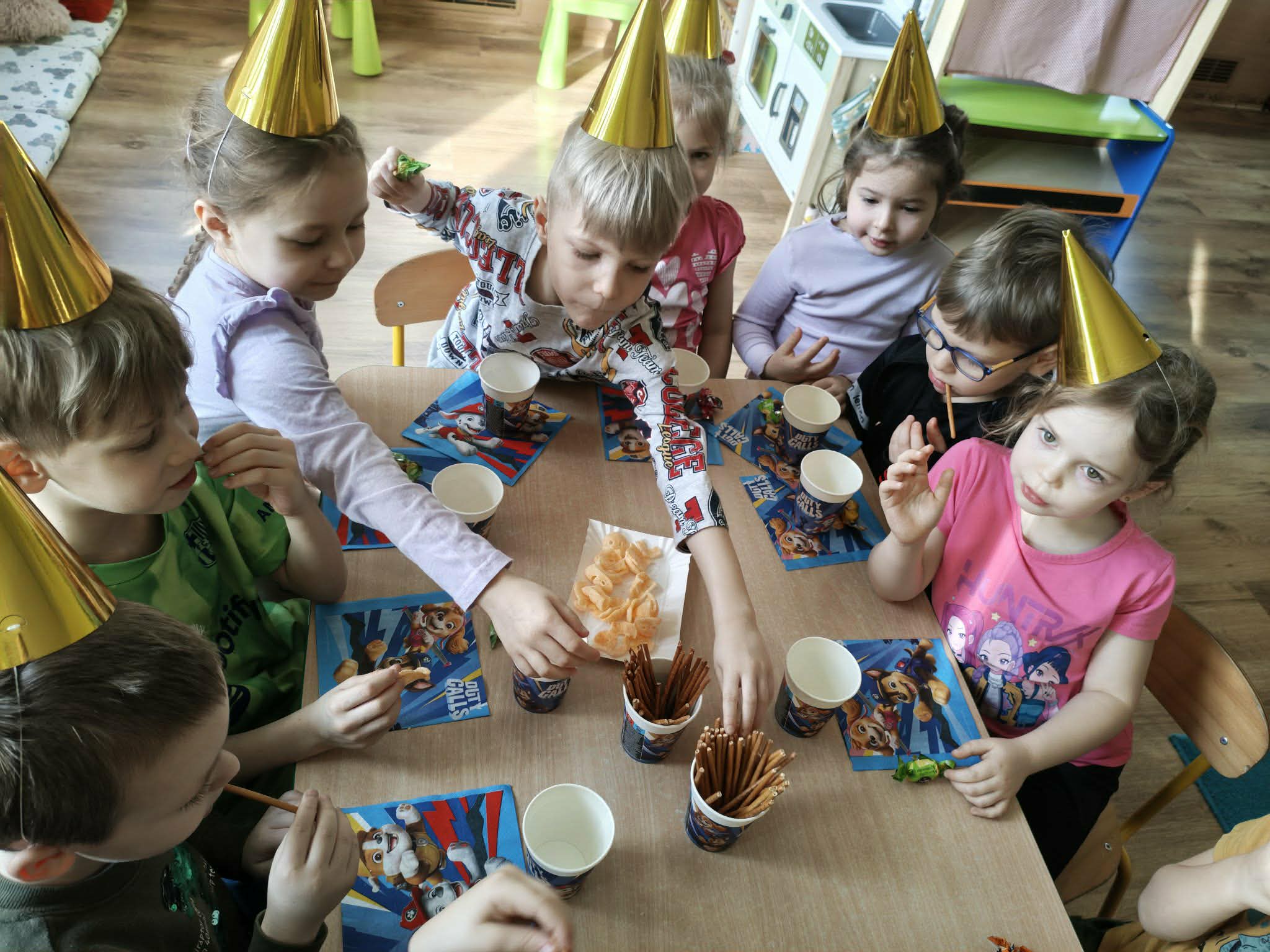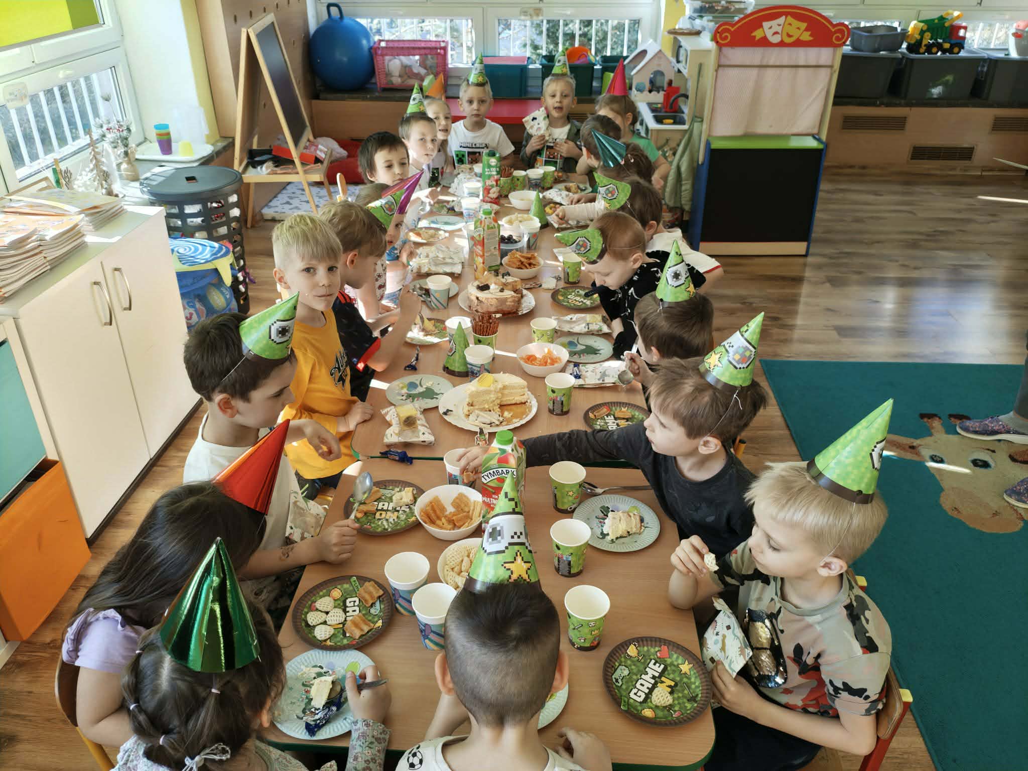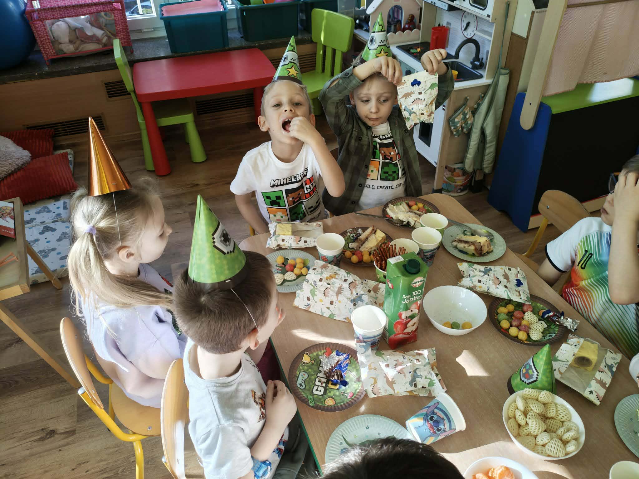 W naszym przedszkolu świętujemy urodziny każdego dziecka. To bardzo ważne wydarzenie pełne niespodzianek i niezapomnianych przeżyć. Dzień urodzin dla każdego dziecka jest dniem szczególnie ważnym. Jest to „Jego dzień”, jest wtedy najważniejszy, znajduje się w centrum uwagi, a inni zastanawiają się w jaki sposób mogą mu sprawić radość i przyjemność. Urodzinowe zabawy naszych Przedszkolaków są pełne niespodzianek, a także laurek i ciepłych życzeń, które powodują wielką radość na twarzach małych Jubilatów.